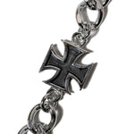 クロスモチーフを取り入れたGALLIS ADDICTIONのウォレットチェーン。パンツスタイルに装着することで、コーディネートのアクセントとして機能します。実用性とデザイン性を兼ね備えた、GALLIS ADDICTIONの定番感あるアイテム。