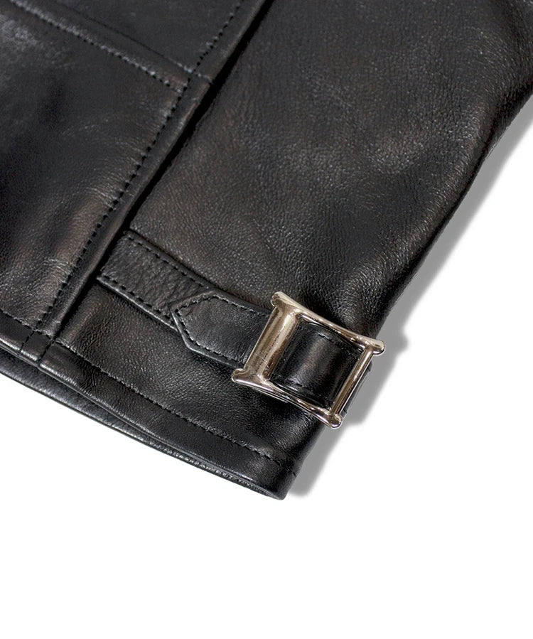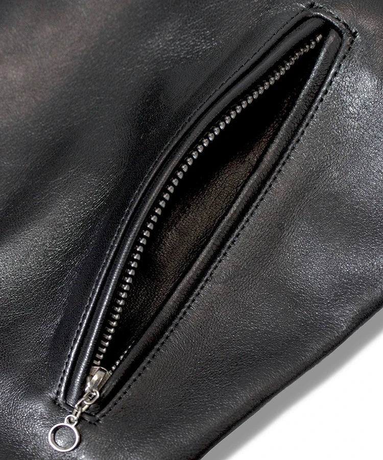 シープレザーのトップのみ薄くコーティングを施し、縫製糸もフィラメント糸を使用することで、経年変化での味をでやすくしています。着込めば着込むほどに柔らかく身体に馴染んでいき、風合いも増していくレザーの経年変化を楽しみながら長く愛用できる逸品です。