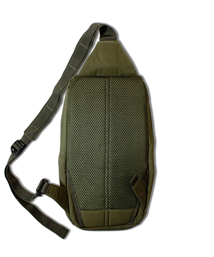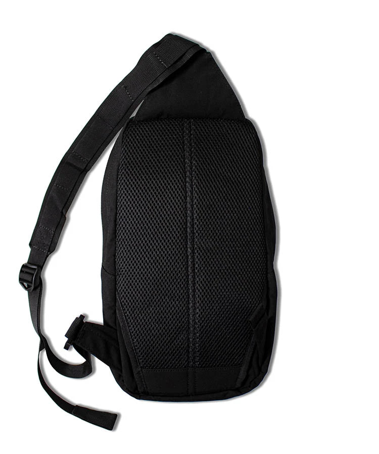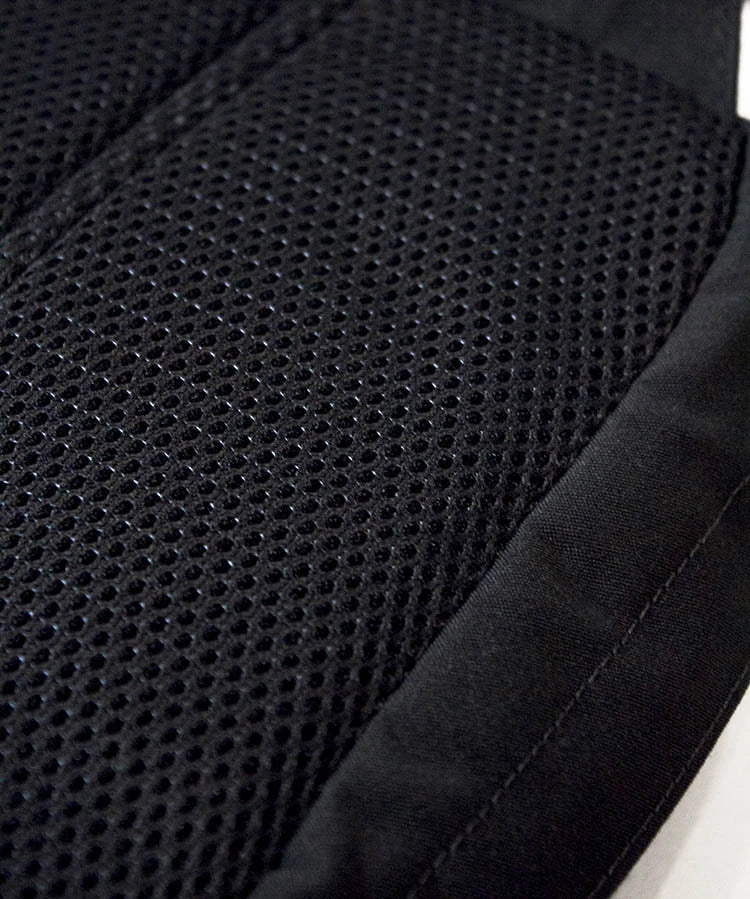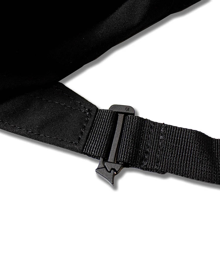 張り感のあるポリエステル素材を使い、裏面にはクッションメッシュを配した、左肩掛け、右肩掛けでストラップ位置も変えられる気の利いたアイテムです。