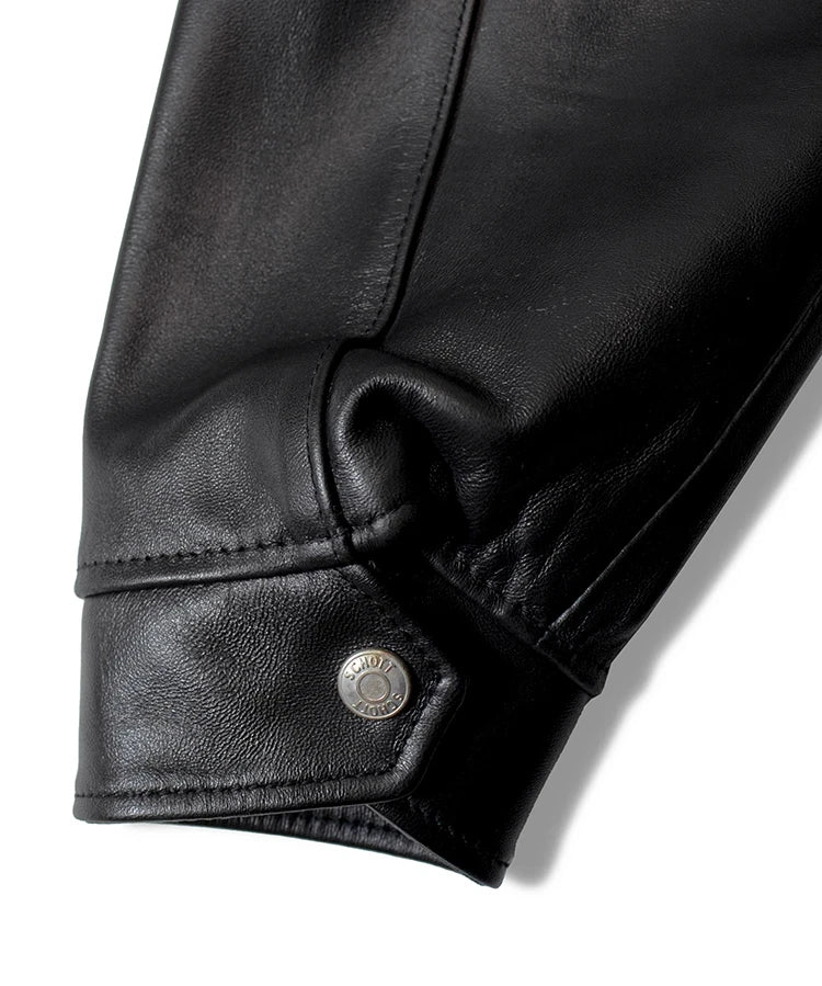 やや厚地のしっかりとしたシープレザーを使用。今や、Schottの顔とも言えるコーチジャケットをレザーでアップデート。シンプルでながら、袖を二枚袖仕様フロントと背中のハギを極力無くし、レザーを贅沢に使用したコーチジャケットに仕上げている。ゆったり羽織れるサイズ感で肩に沿って落ちるラグラン仕様なのでコーディネートもし易いのもポイントです。