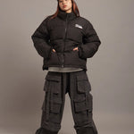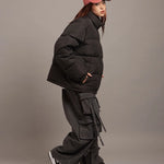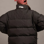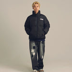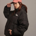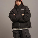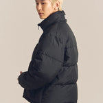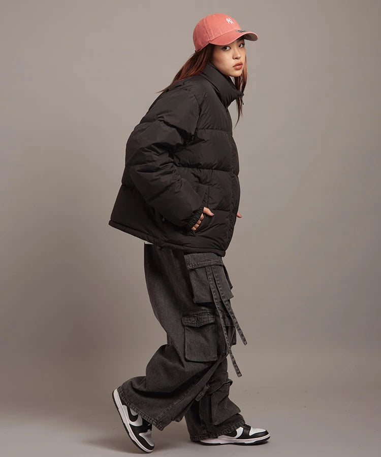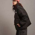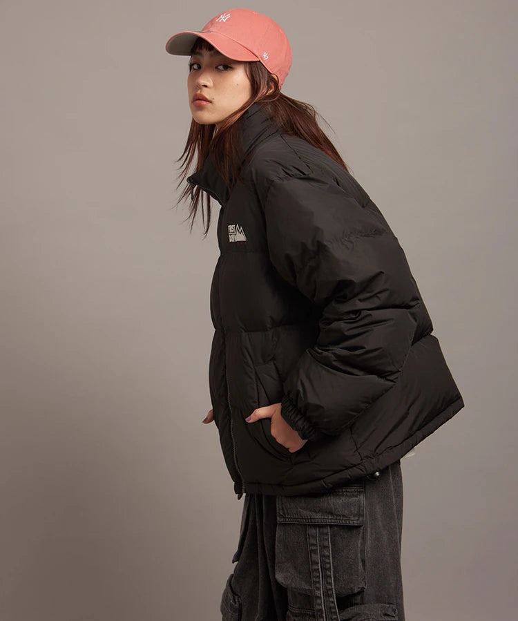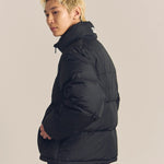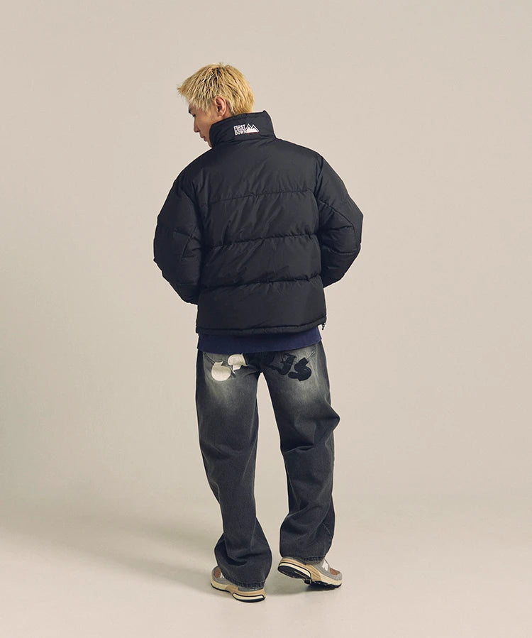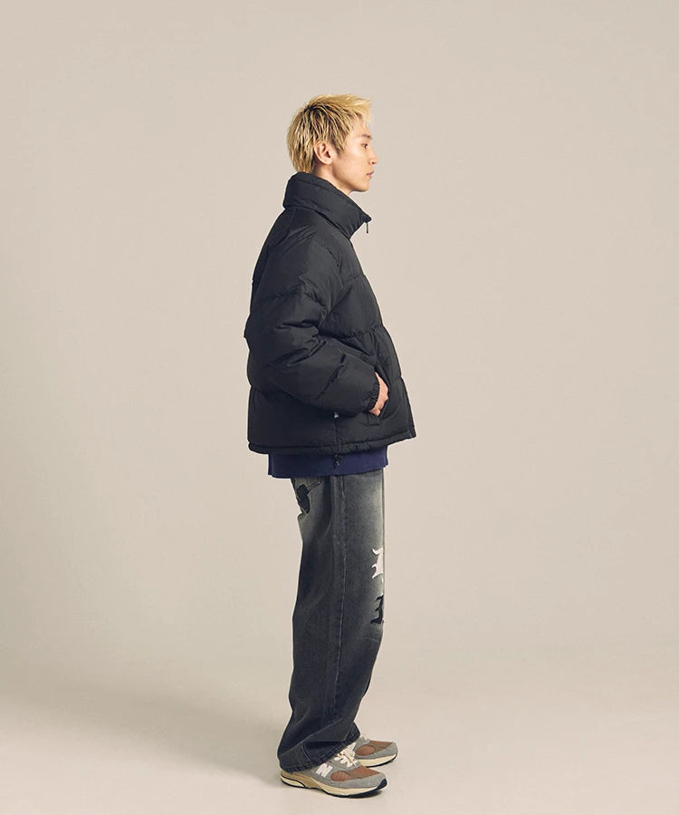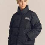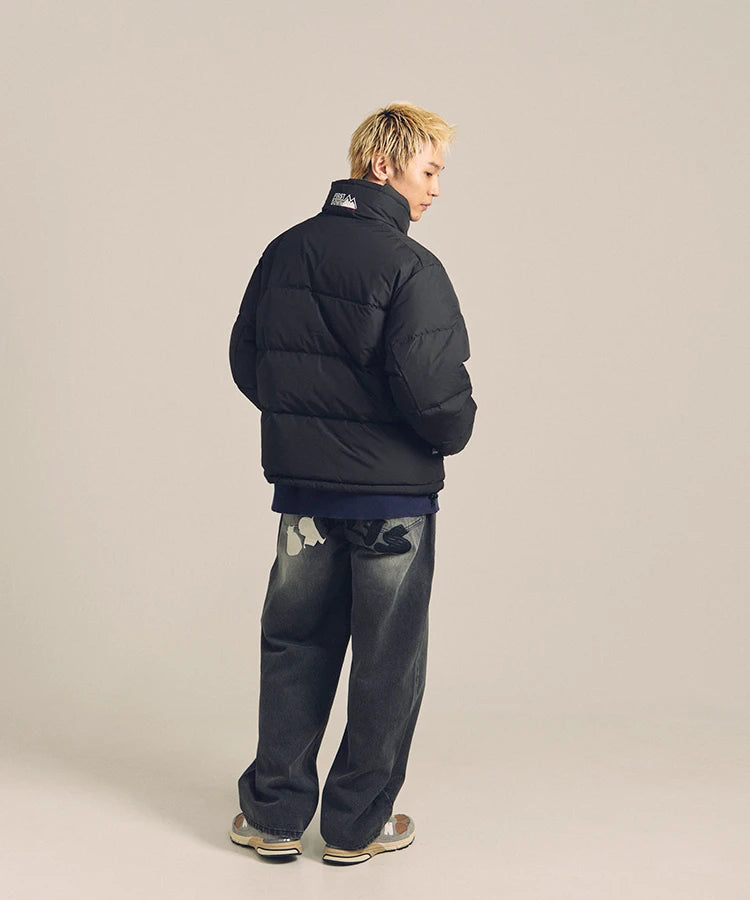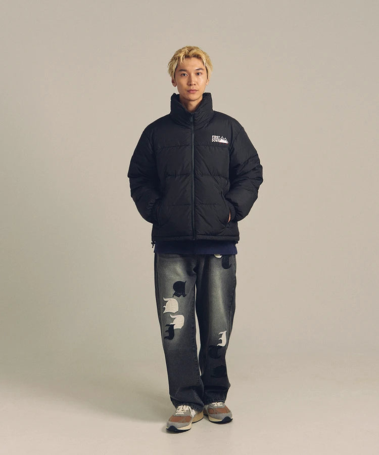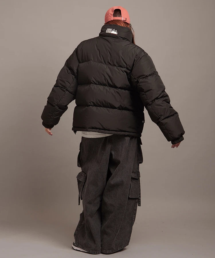 FIRSTDOWNを象徴するバブルダウンジャケット。切り替えたとボリュームのある衿高デザインが特徴。2WAYリバーシブル仕様。裏側のカラーはブラックになります。表地は優れた防水性、撥水性がありながらも、透湿性を兼ね備えた蒸れにくい『帝人MICROFT』素材を使用。高品質といわれる700フィルパワーのダウンを使用。中綿はダウン90%フェザー10%のホワイトダックダウンを使用。またシワになりにくい素材の為、お手入れも簡単。表地の下にはDupont社が開発したポリエチレン不織布を入れる事により、独特の風合い・ハリ感をもたせている。トレーナーやパーカーなどカジュアルアイテムに合わせやすく、ワイドデニムパンツやカーゴパンツとの相性も良い。オーバーサイズの着こなしで、ユニセックスでも着用可能。