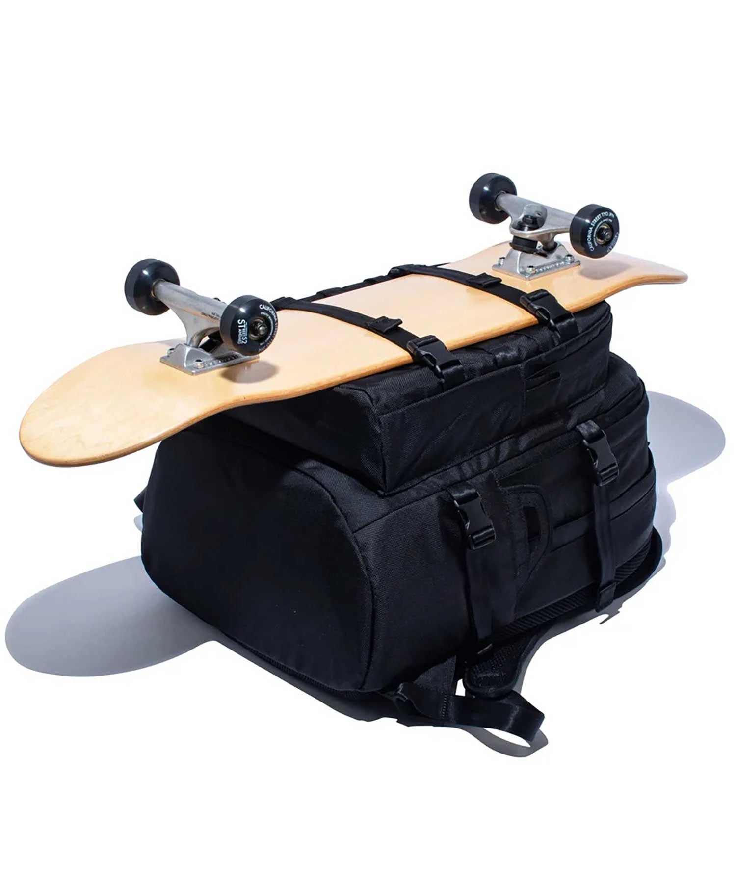 大容量ながらも高い実用性を兼ね備え、タウンユースはもちろん、アウトドアや旅行など幅広いシーンで活躍します。メイン収納部は3層構造で整理しやすく、細分化されたインナーポケットやPCを保護する専用スペースを備え、日常の持ち物からビジネスツールまでしっかり収納可能。さらに、ドリンクボトルを収めやすいサイドポケットや、外側のストラップを活用してスケートボードなどのギアも取り付けられる機能性も魅力です。