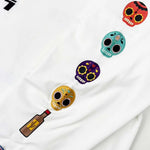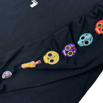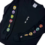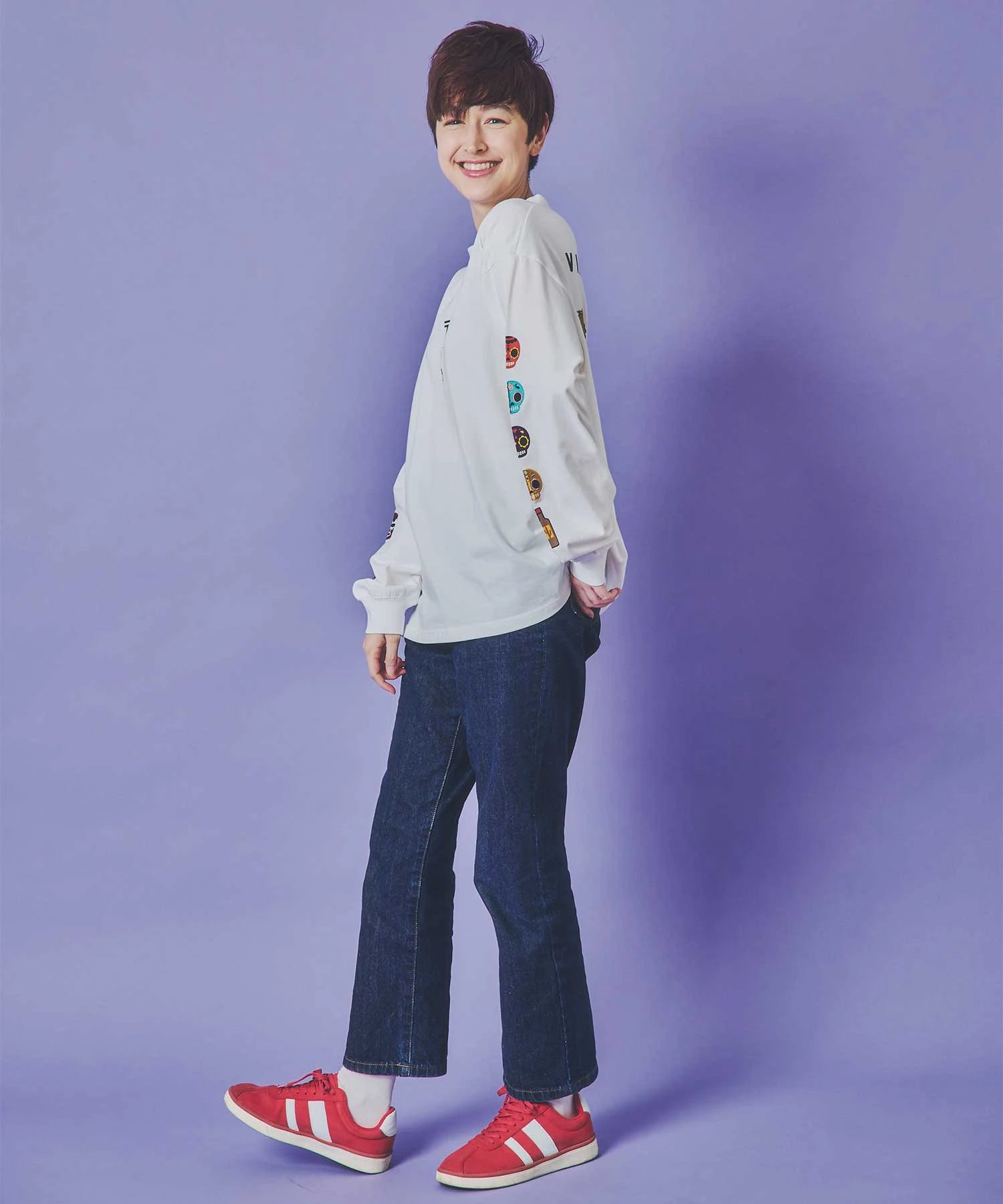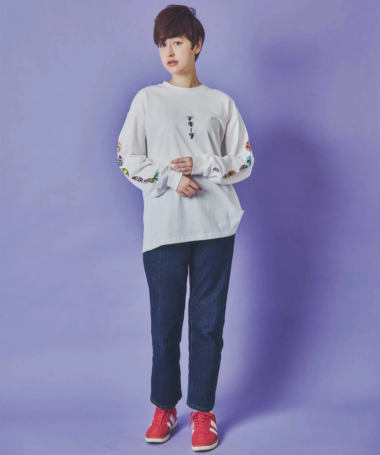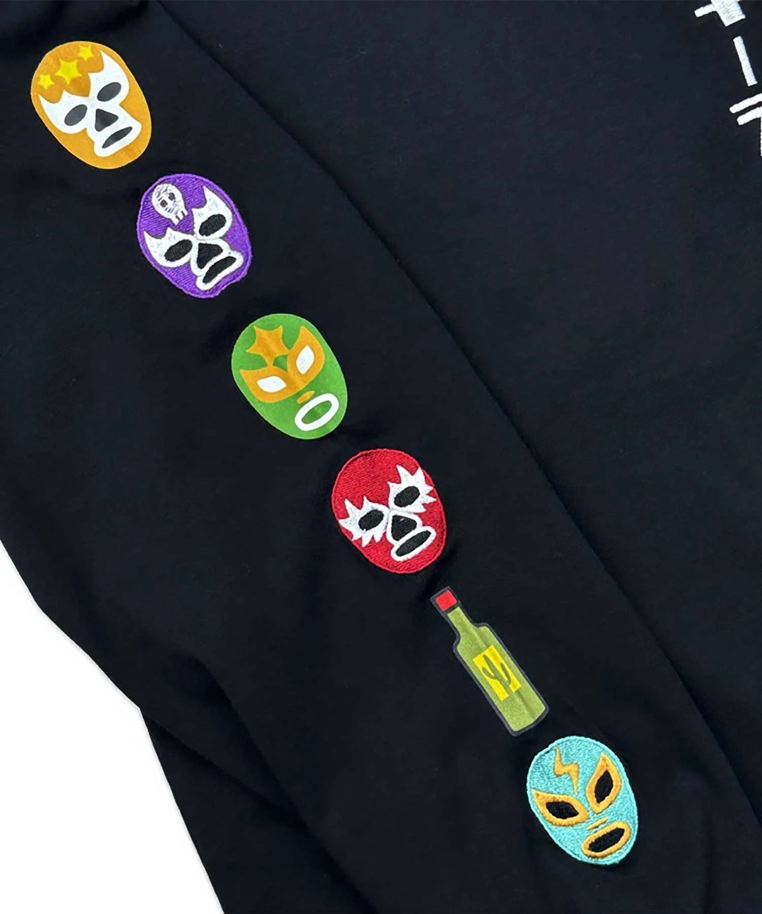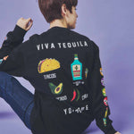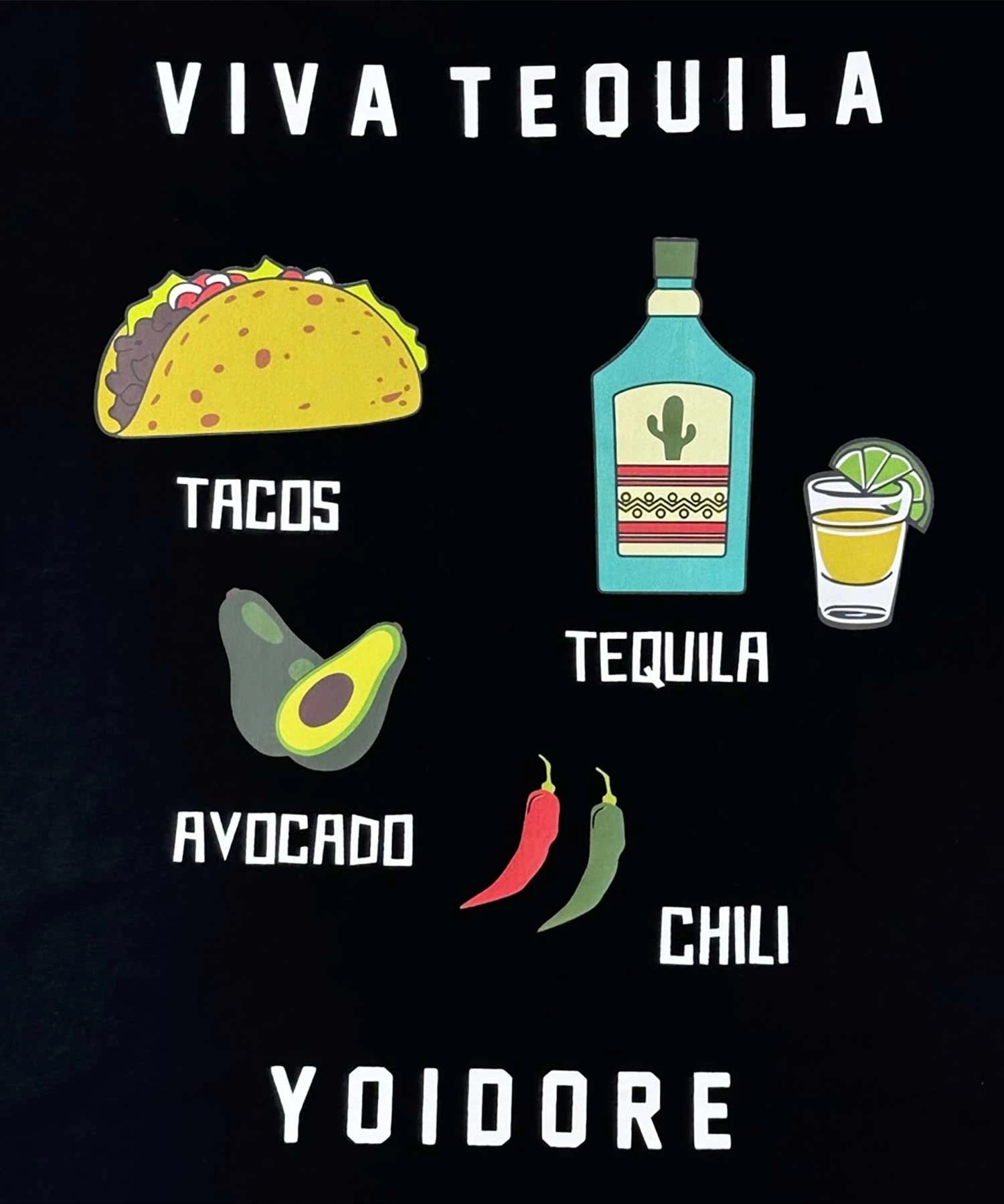 大好評のテキーラシリーズがロンTになって新登場!フロントは縦カタカナロゴでシンプルかつストレートにテキーラを表現!バックはテキーラと合わせて食べたいメキシカンフードたち。両袖にはシュガースカルとルチャリブレのマスクを刺繍ミックスであしらったポップで存在感抜群のロンTです。テキーラの母国にもリスペクトを捧げる、テキーラファンの必須アイテム!ややゆったりめのルーズなシルエットは適度なリラックス感があり、ラフな呑みシーンでのコーディネートに取り入れたいマストなアイテムです。ユニセックスで着用可能。