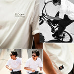 タフなアメリカンTシャツらしさを感じさせる「オープンエンド糸」を使用したコラボレーションTシャツ。繊維の中に空気を多く含むため吸湿性・速乾性に優れ、ザラっとした独特の風合いが特徴です。アメカジらしいラフな表情を楽しめる一枚に仕上がっています。デザインは、左胸にManastashロゴのリフレクタープリント、右裾にDickiesとのコラボピスネームを配置。さらに背中にはコラボレーションロゴを大胆にプリントし、山柄部分にリフレクタープリントを施すことで存在感を高めています。シルエットはスタンダードなリラックスフィットで、幅広いスタイリングにマッチ。日常使いからアクティブシーンまで、タフさとデザイン性を兼ね備えた一着です。