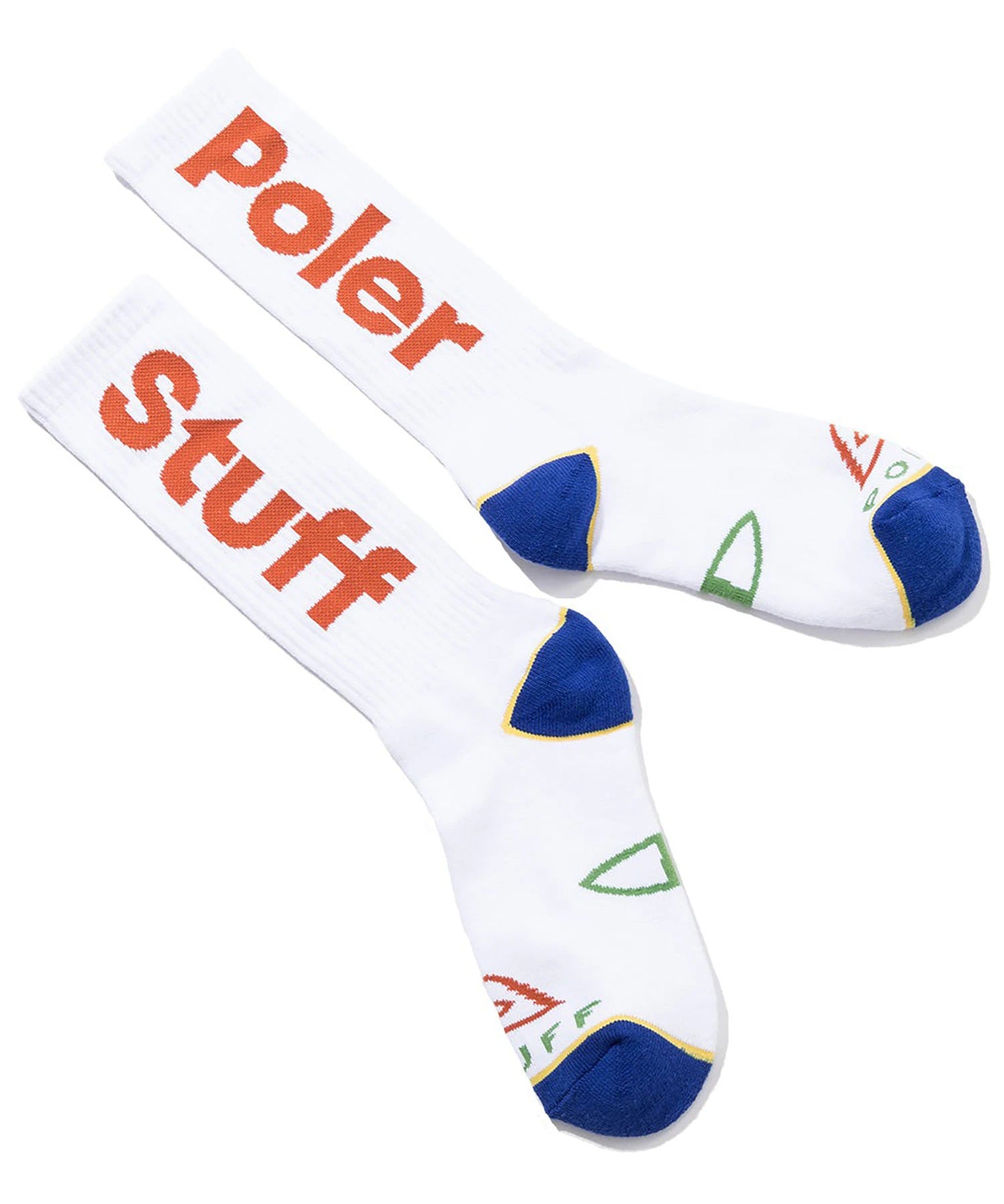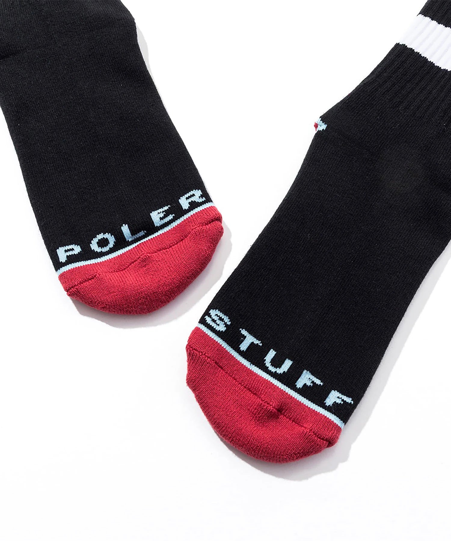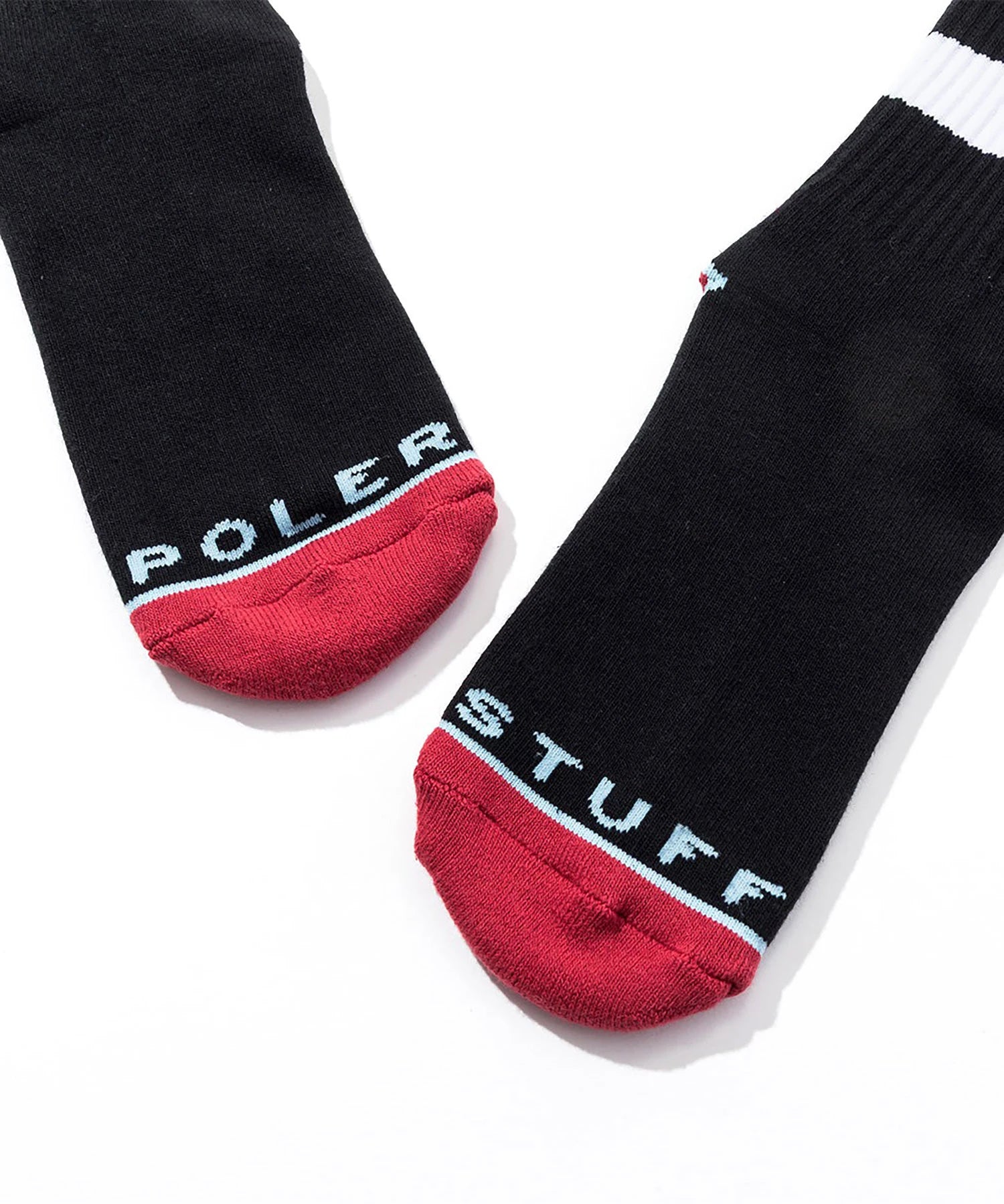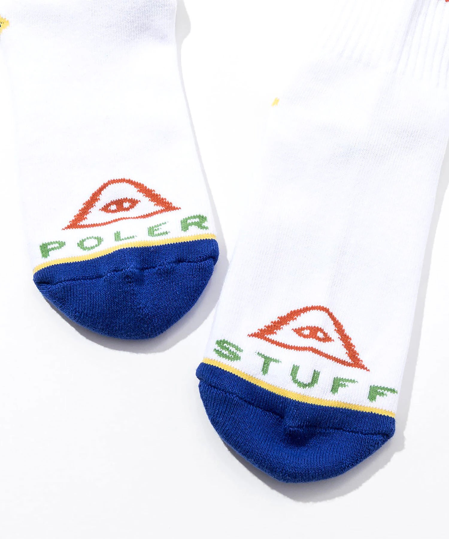 スケートカルチャーを感じさせる、ストリートライクなデザインが魅力のソックス。側面やつま先に施されたPOLERならではのグラフィックが、足元に個性と遊び心をプラスします。パンツの裾からちらりと覗かせるだけで、スタイリングのアクセントに。履き心地にもこだわった一足は、デイリーユースにもおすすめです。
