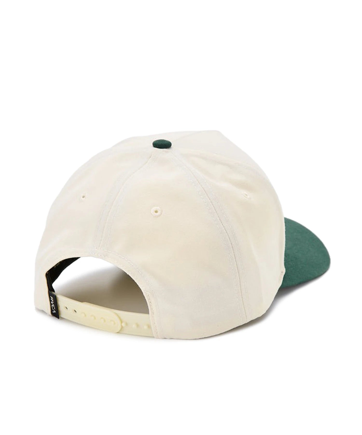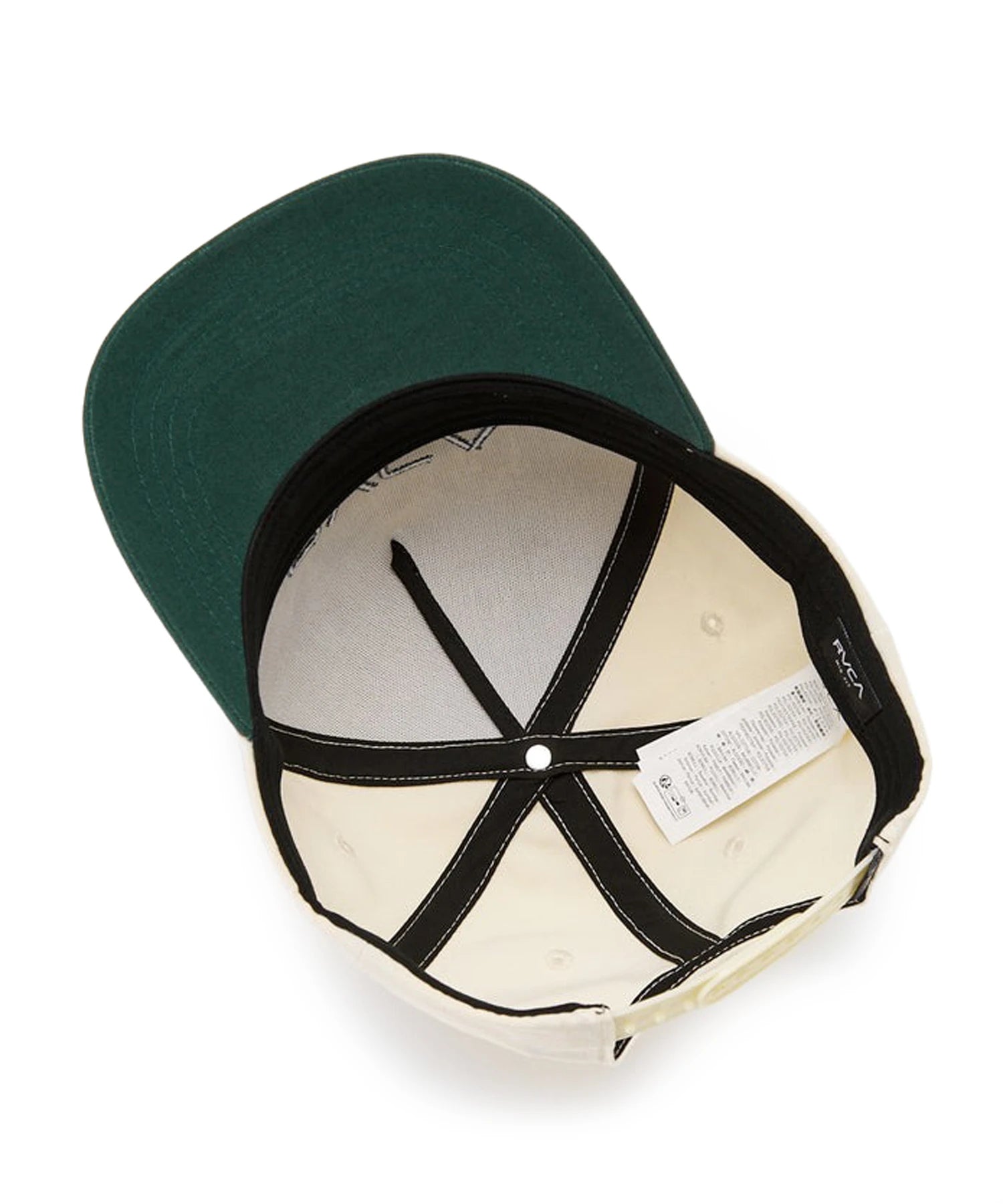 ・RVCAロゴ刺繍が映えるツートンデザイン・5パネル&ミドルフィットで快適なかぶり心地・スナップアジャスター付きでサイズ調整可能・ストリートからタウンユースまで活躍