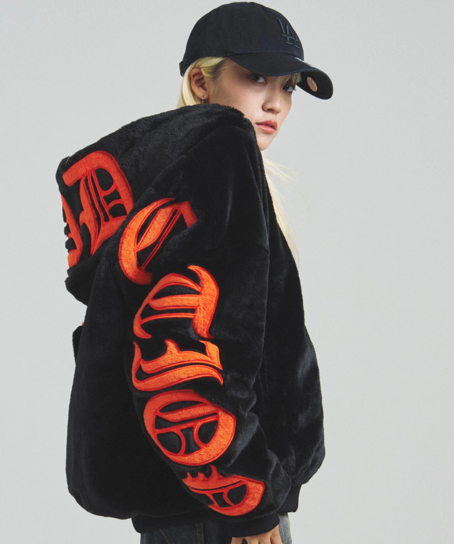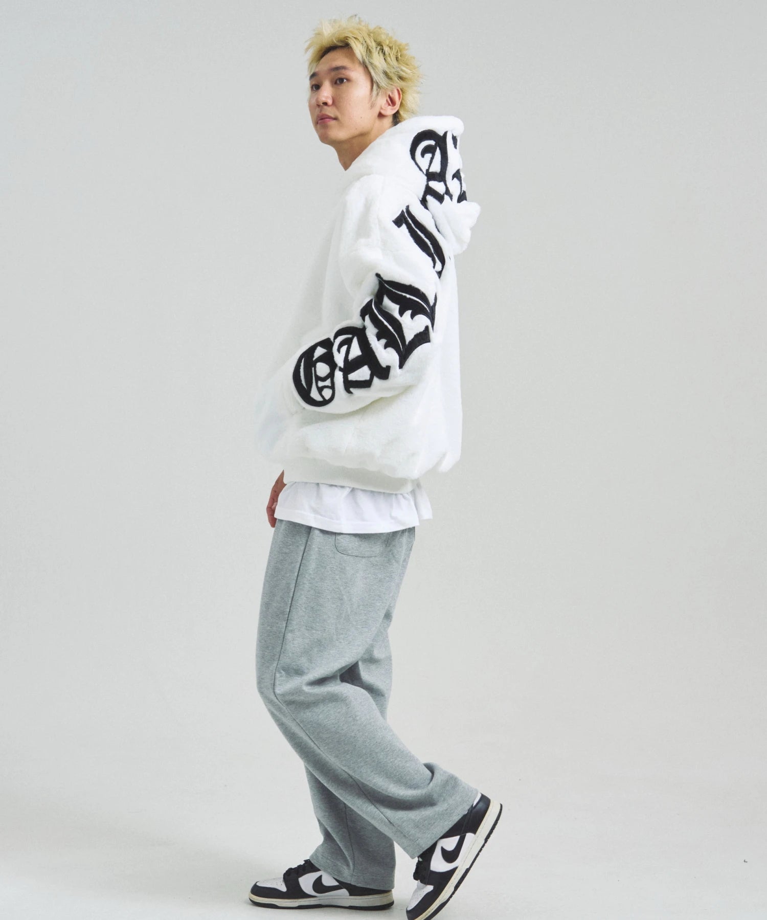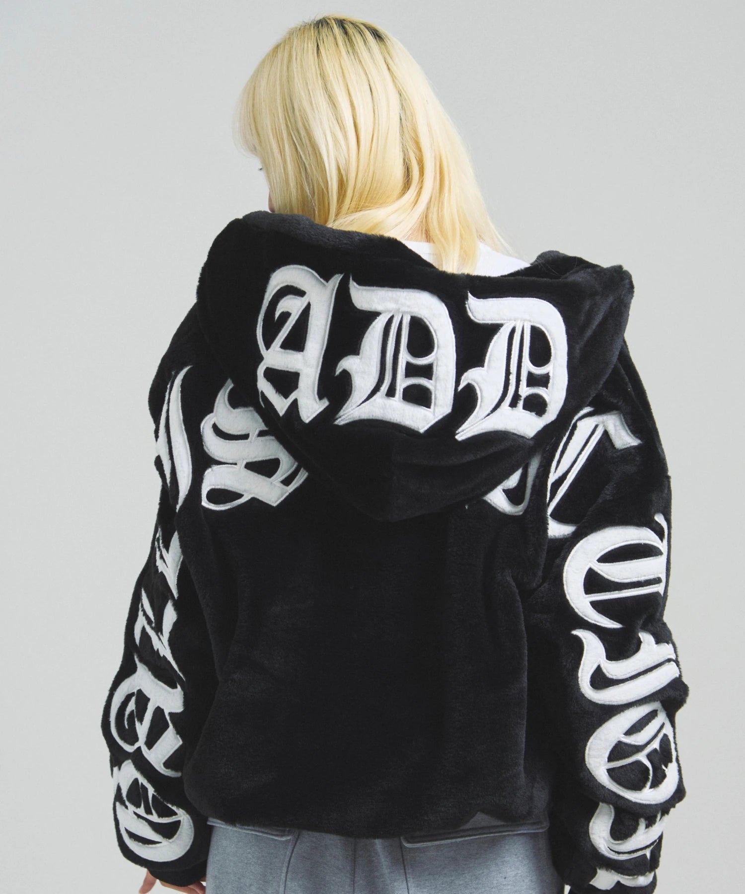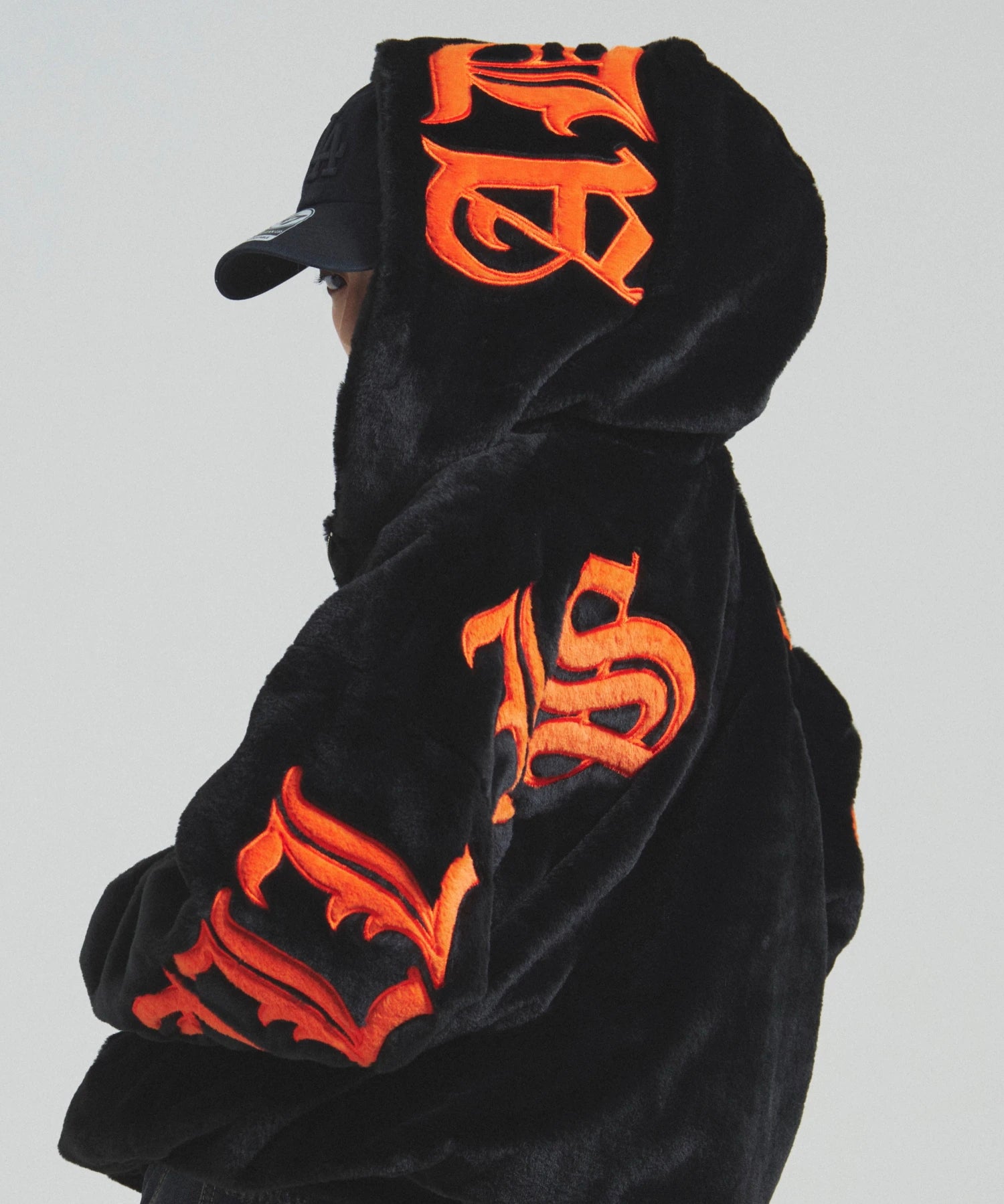 圧倒的な存在感を放つオールドイングリッシュロゴが印象的な、GALLIS ADDICTIONのファーブルゾン。毛足の長いフェイクファー素材を贅沢に使用し、ふんわりとした肌触りと高い保温性を両立。軽量で柔らかな着心地が魅力で、ストリートからデイリーまで幅広いスタイリングに対応します。フロントはシンプルなジップアップ仕様ながら、バックに大胆に施されたブランドロゴ刺繍が視線を惹きつけるデザイン。オーバーサイズのシルエットで、ユニセックスに着用可能。トレンド感のあるルーズなフォルムと、GALLIS ADDICTIONらしいエッジの効いたグラフィックが融合した一着は、羽織るだけでコーディネートにインパクトを与える主役級アイテムです。カラー展開はホワイト、ブラック、オレンジの3色。個性に合わせて選べるバリエーションも魅力です。