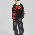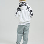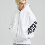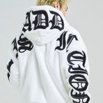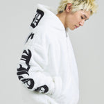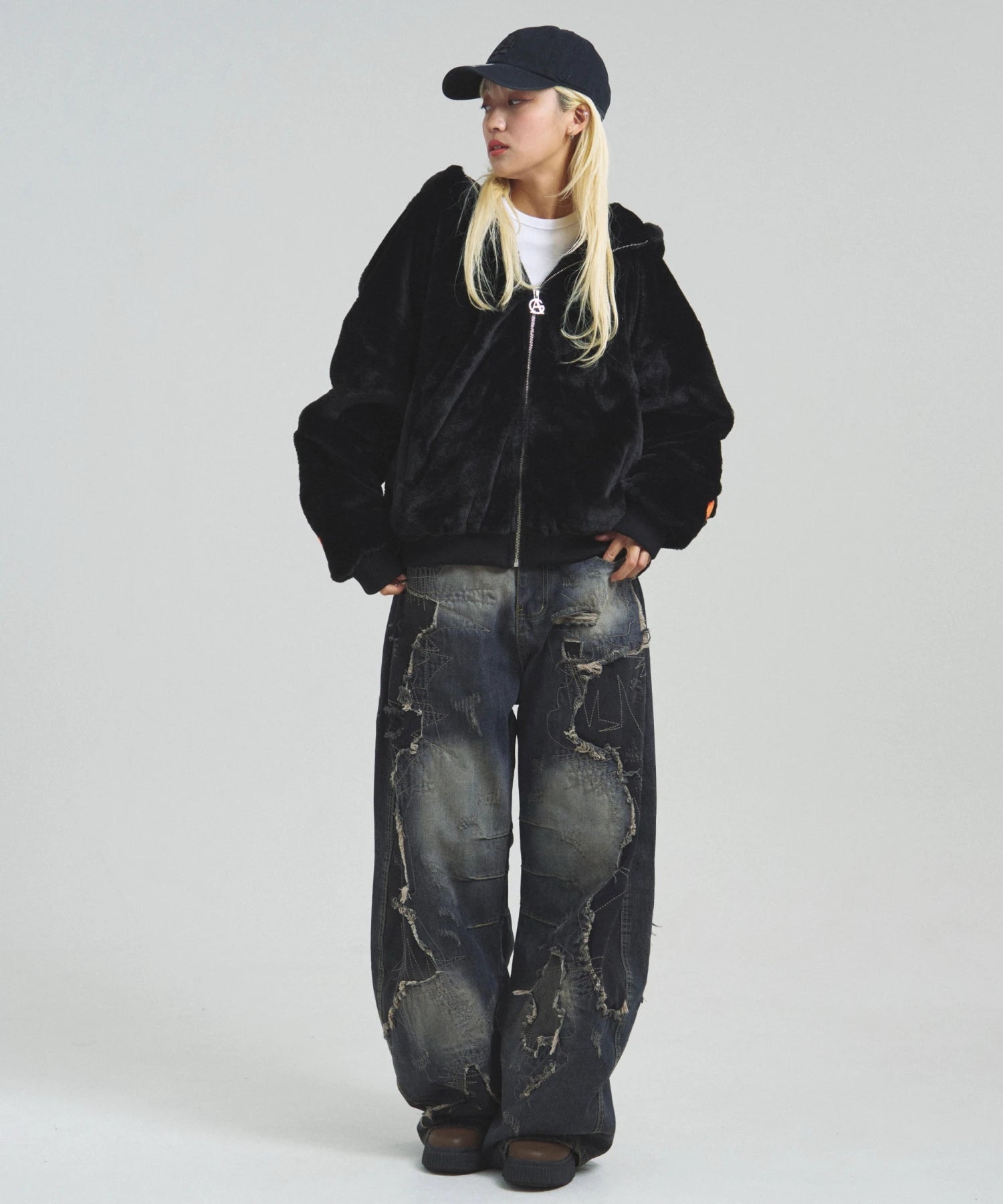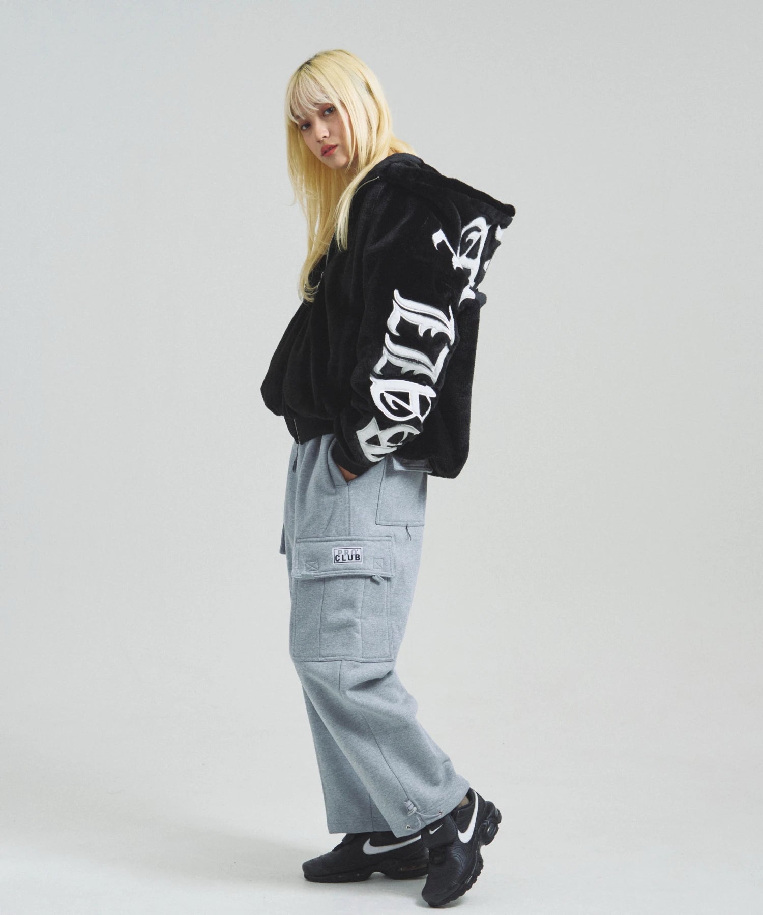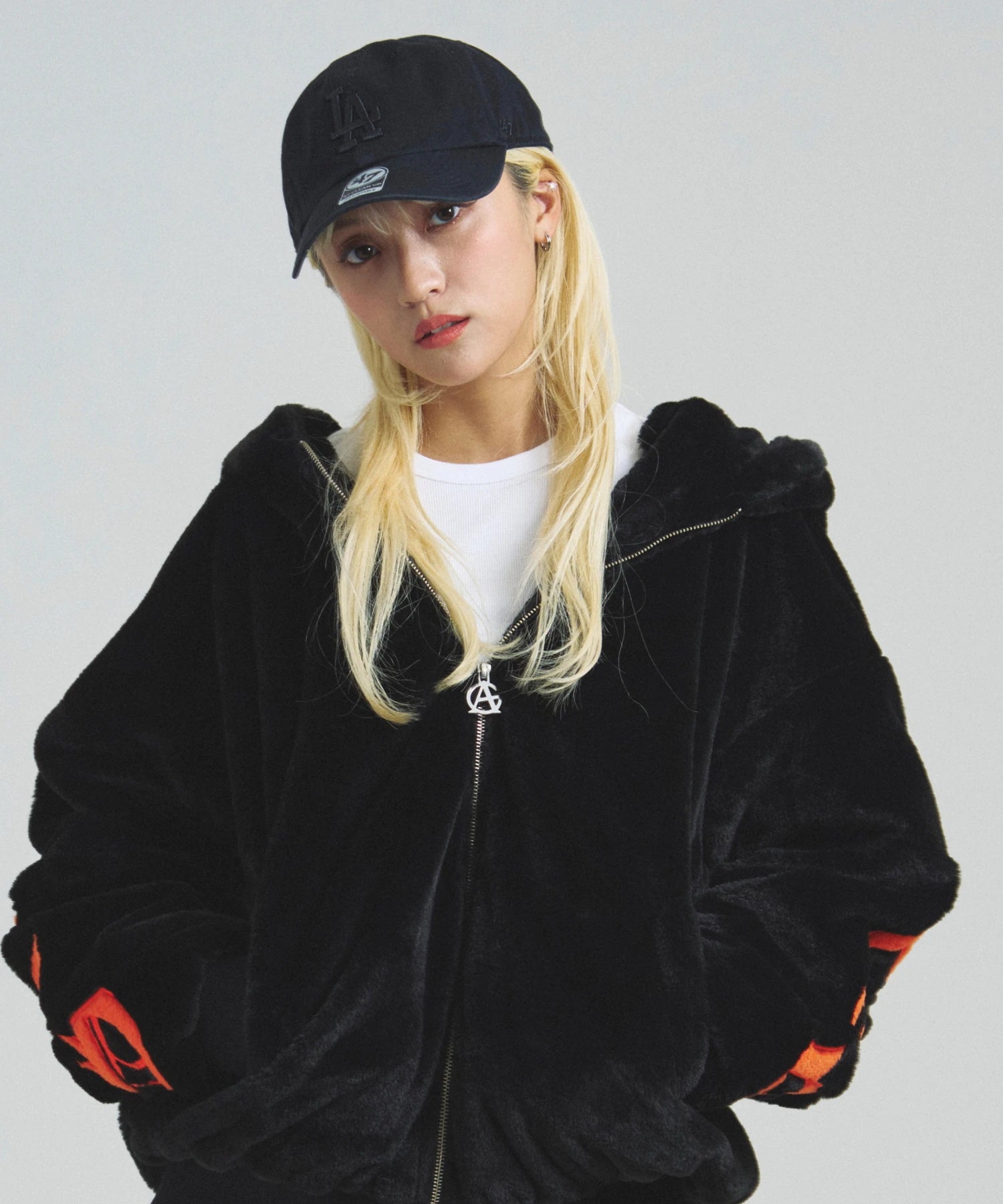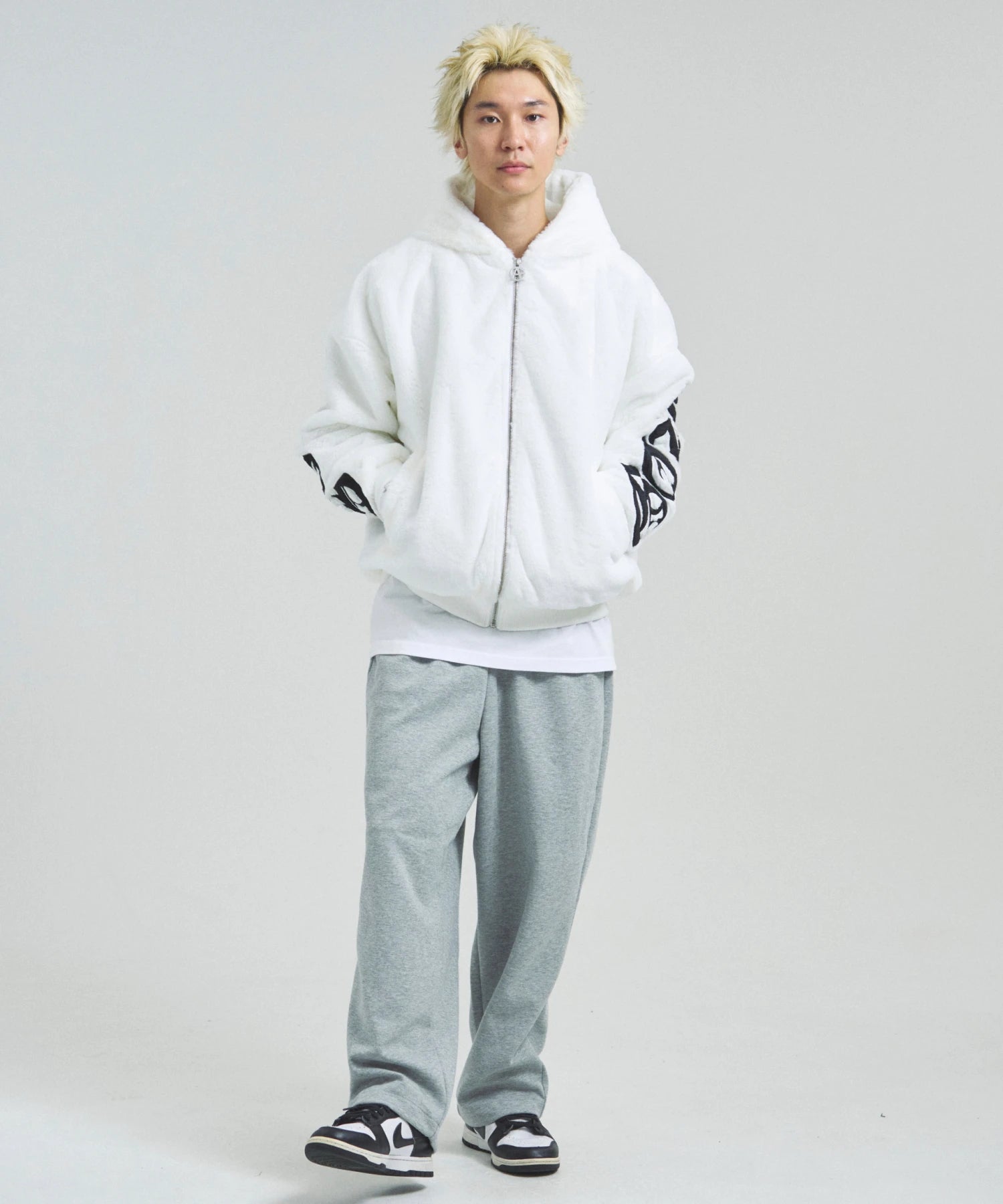 圧倒的な存在感を放つオールドイングリッシュロゴが印象的な、GALLIS ADDICTIONのファーブルゾン。毛足の長いフェイクファー素材を贅沢に使用し、ふんわりとした肌触りと高い保温性を両立。軽量で柔らかな着心地が魅力で、ストリートからデイリーまで幅広いスタイリングに対応します。フロントはシンプルなジップアップ仕様ながら、バックに大胆に施されたブランドロゴ刺繍が視線を惹きつけるデザイン。オーバーサイズのシルエットで、ユニセックスに着用可能。トレンド感のあるルーズなフォルムと、GALLIS ADDICTIONらしいエッジの効いたグラフィックが融合した一着は、羽織るだけでコーディネートにインパクトを与える主役級アイテムです。カラー展開はホワイト、ブラック、オレンジの3色。個性に合わせて選べるバリエーションも魅力です。