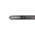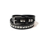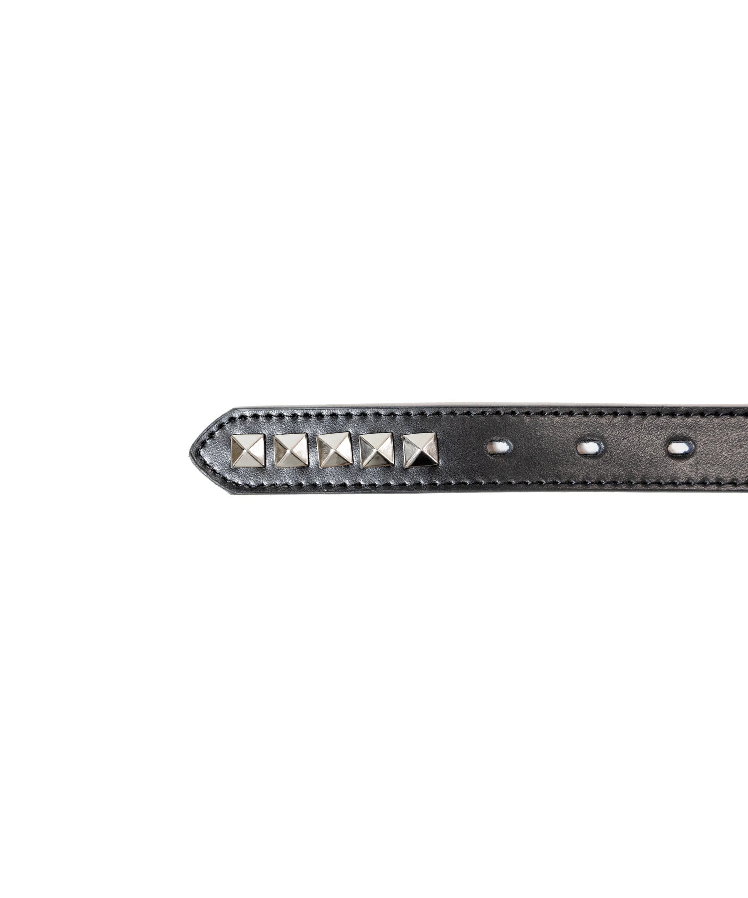幅25 mmのレザーベルトにピラミッド型スタッズを配したクールな一本。