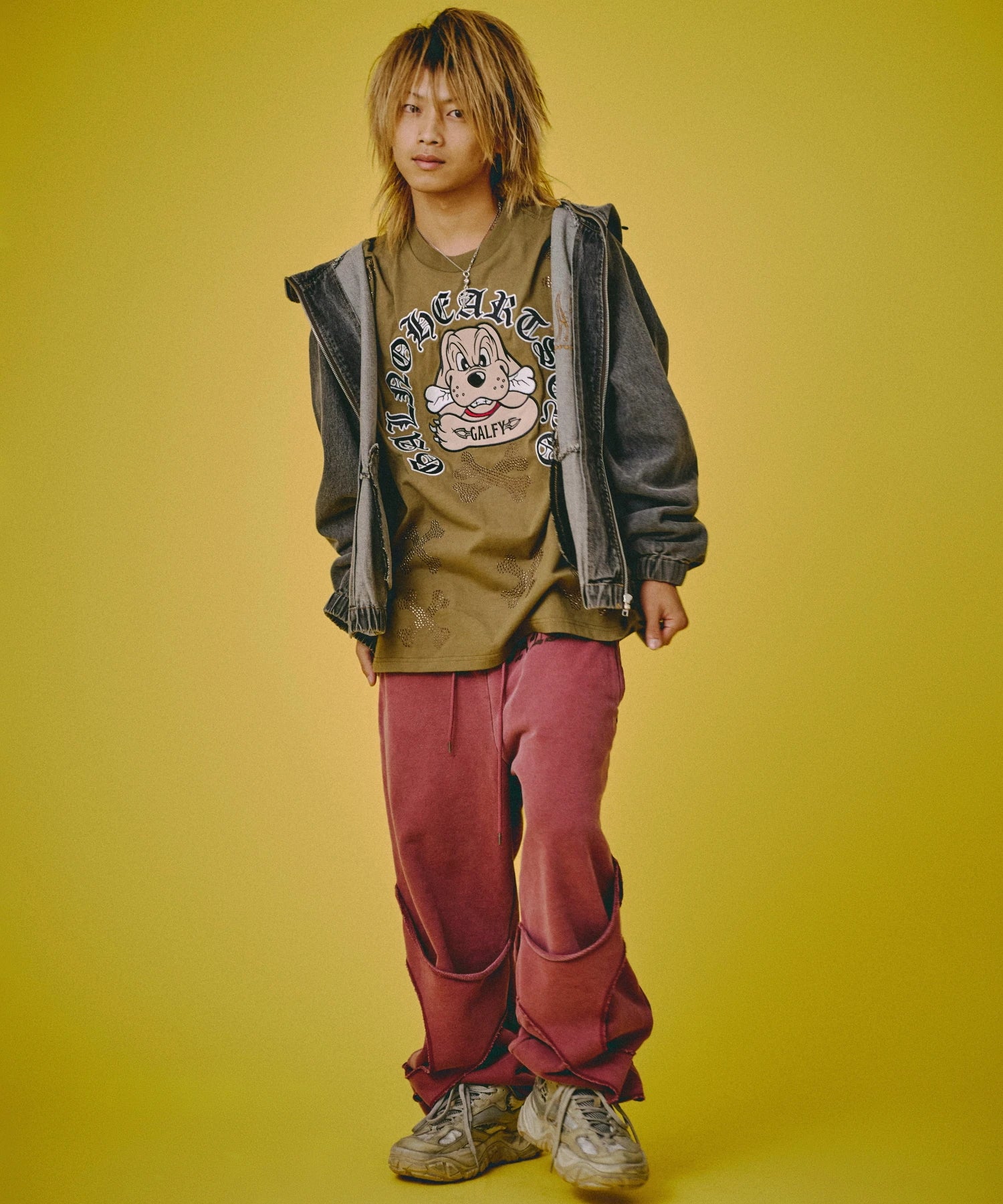90年代のストリートカルチャーをベースに当時の「バブル感」を継承しつつ現在のトレンドとのMIX感を重要視し、都会的かつアクティブな提案を展開していく超話題の唯一無二の炎上ブランド。