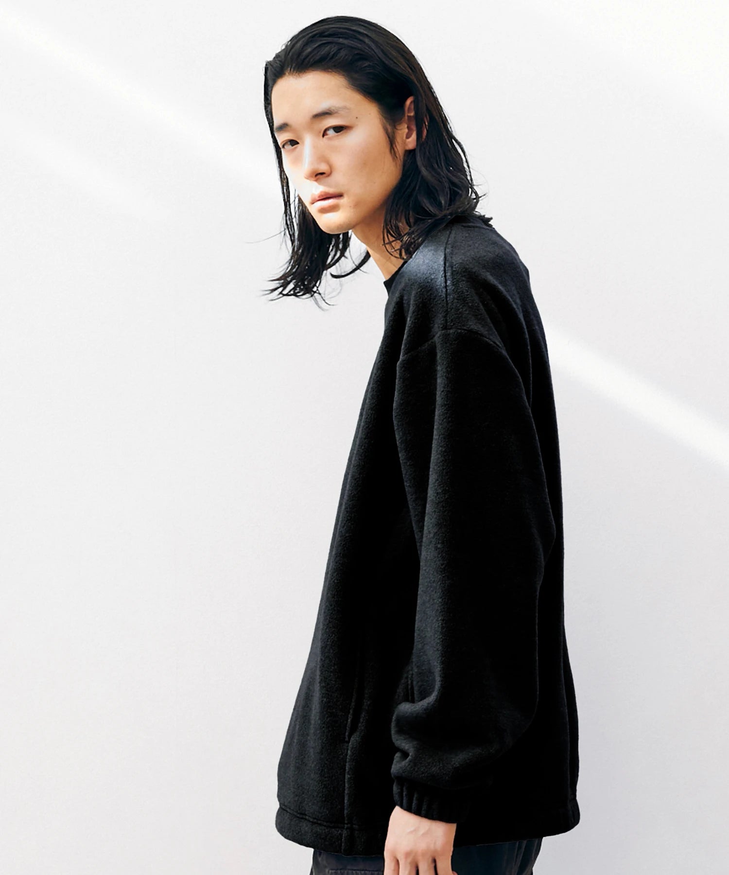 ポリエステル×レーヨンの軽くて滑らかな新しいオリジナルのフリース素材、パフリースを使用。