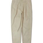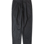 ウエストに施されたタックが立体的な腰まわりを生み出し、裾に向かって自然に絞られるテーパードラインが、すっきりとした洗練された印象を演出する。ZIP付きポケットを備え、スマートフォンや鍵などの収納にも配慮された実用性の高い仕様。バックにはブランドロゴパッチを配置し、さりげないアクセントをプラス。ハリのある上質素材を使用することで、品のある表情と耐久性を両立している。シャツやニットと合わせたクリーンなスタイルから、スウェットなどのラフな着こなしまで幅広く対応する、汎用性の高い一本。
