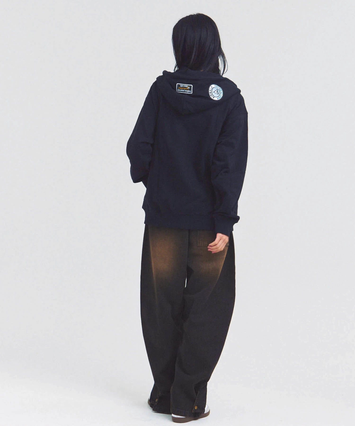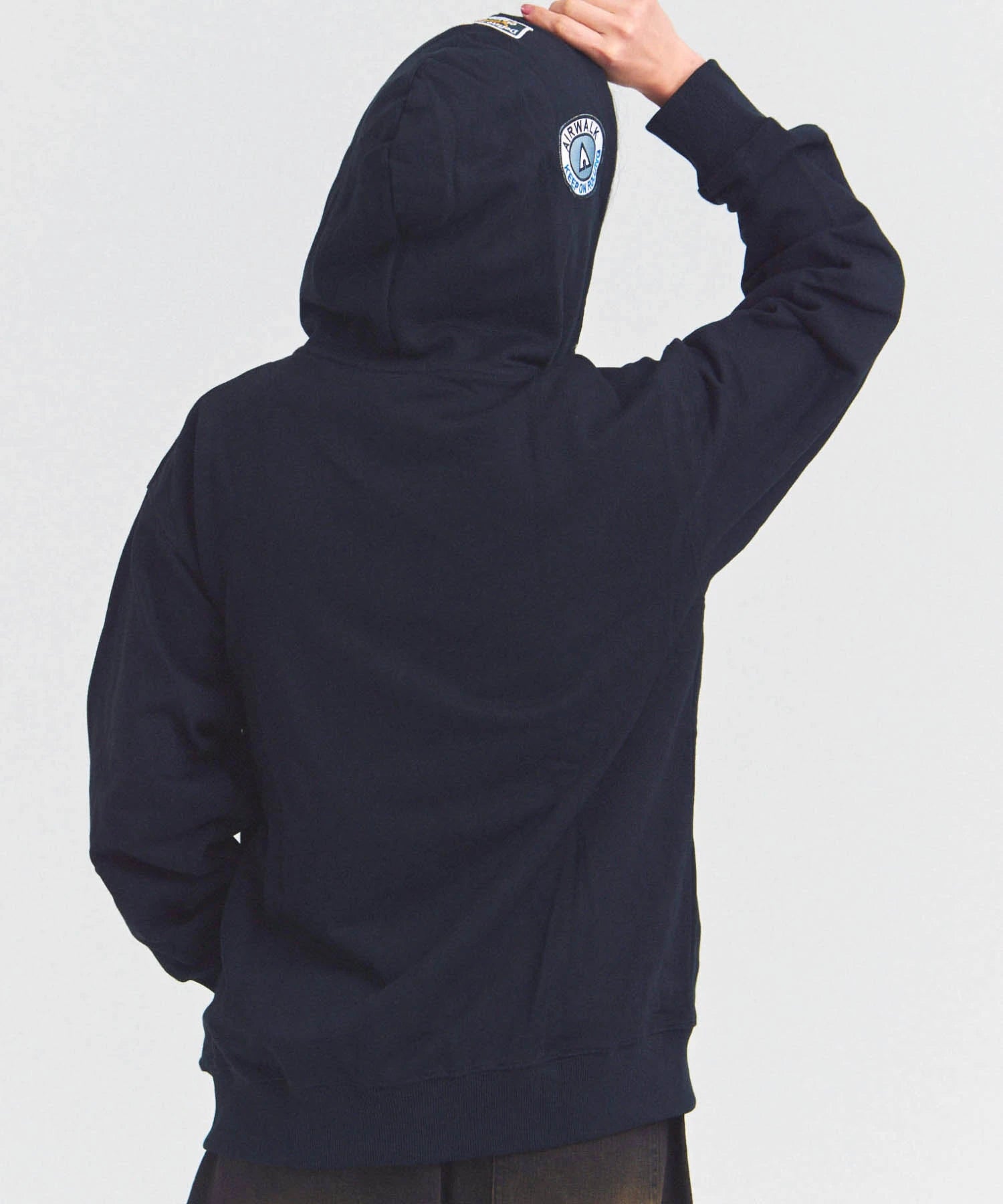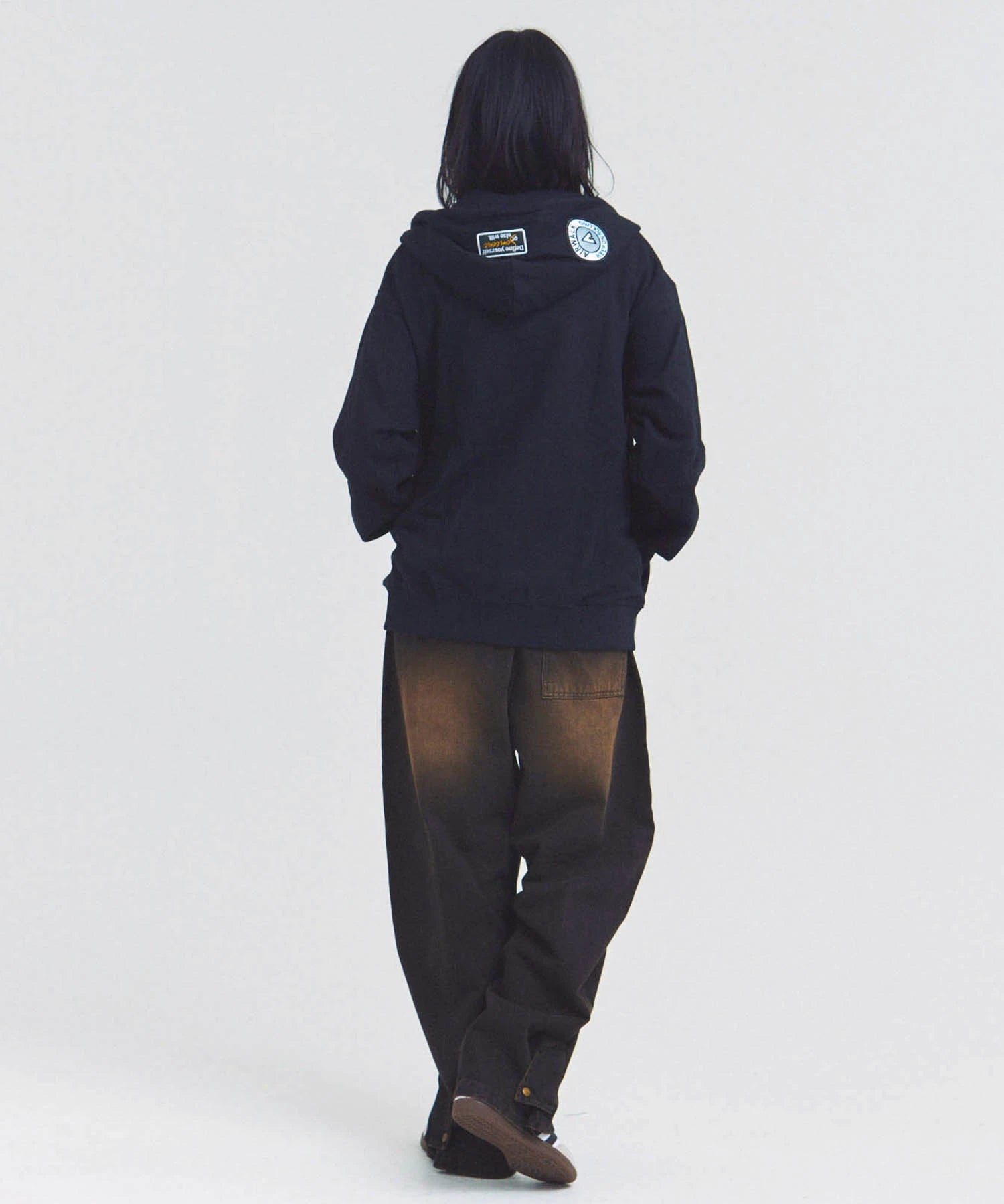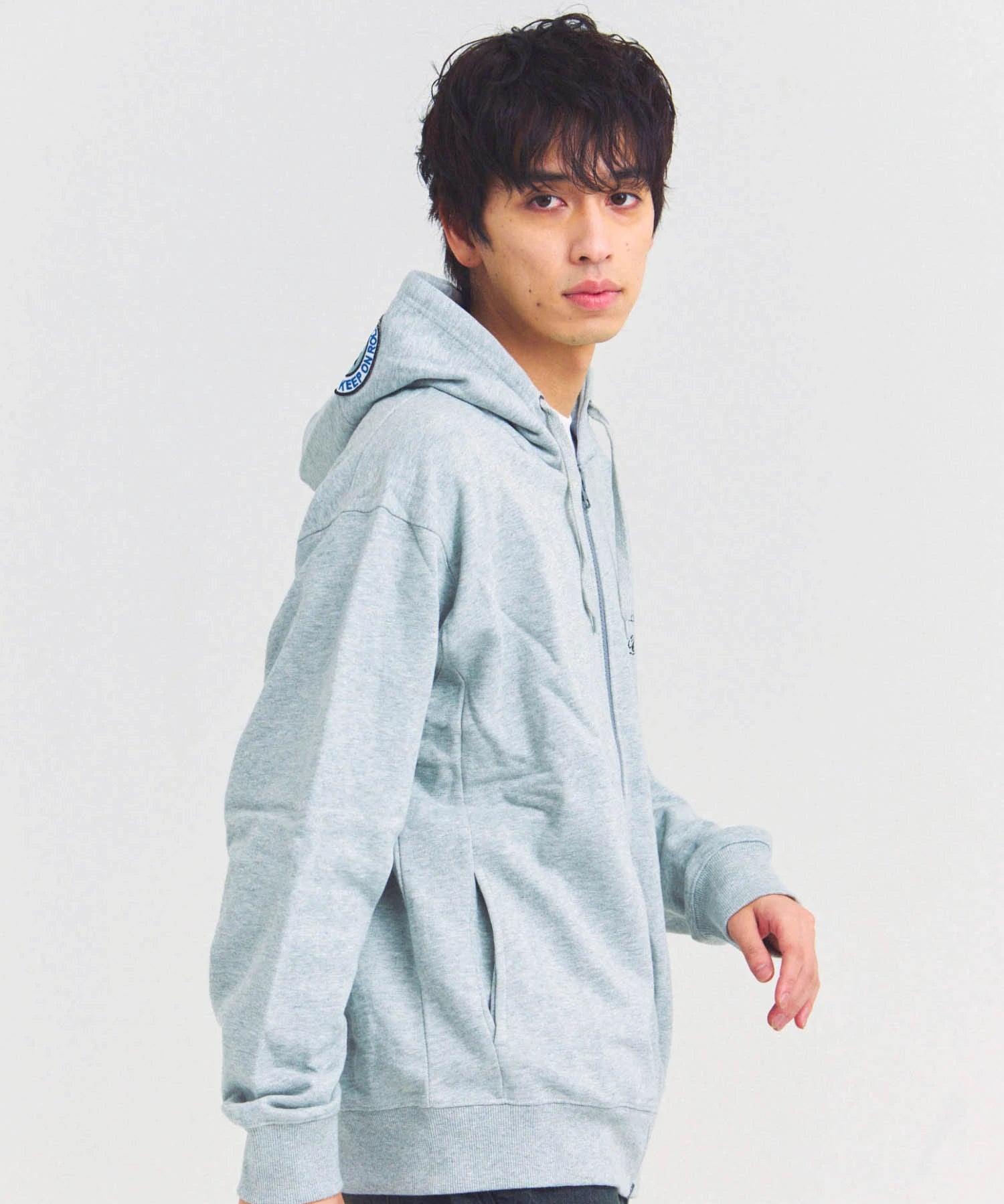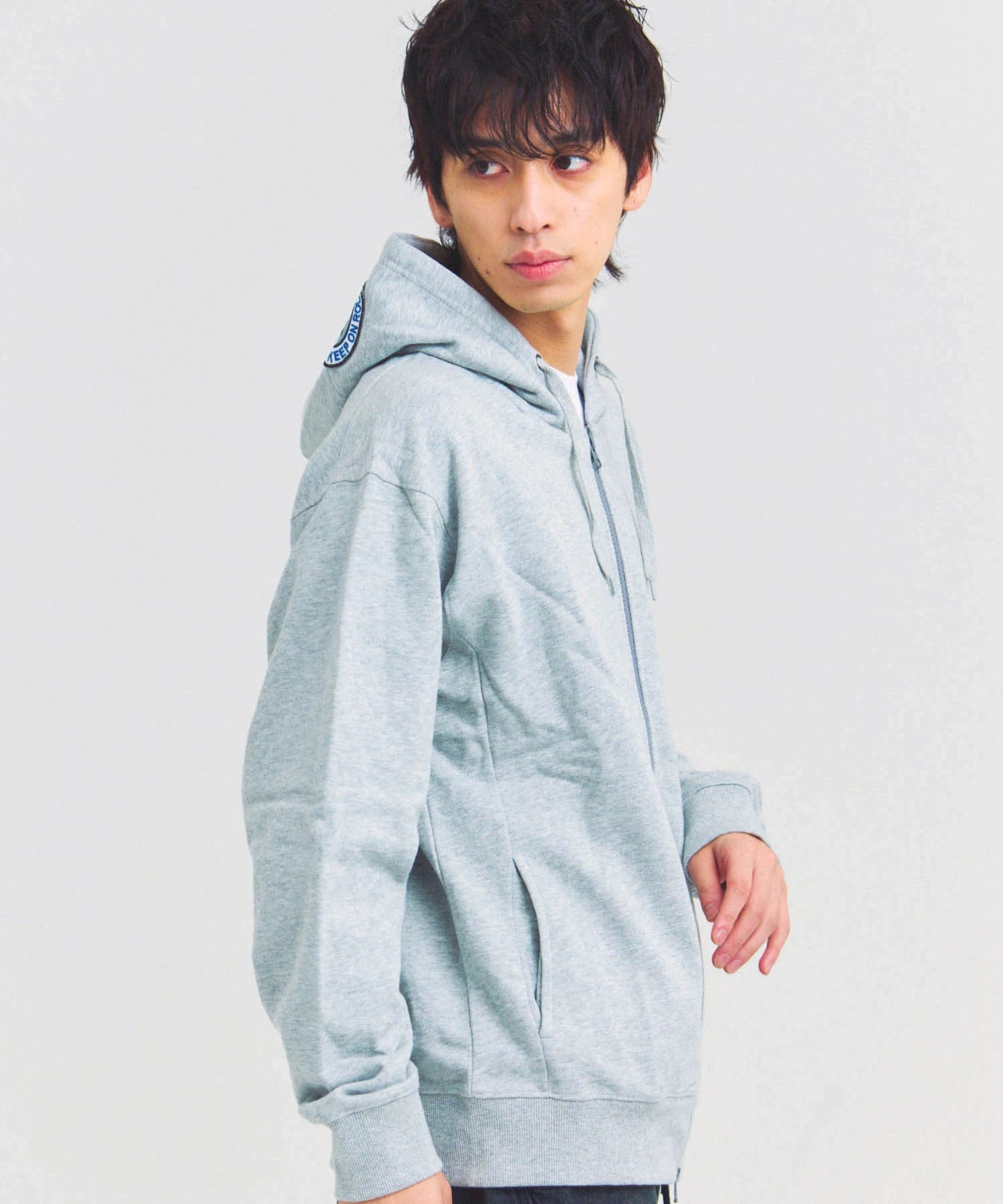 コットン100%の柔らかく肌触りの良い生地。季節を問わず使いやすい厚み。フロントにはジップを採用し、開閉が楽。気温やスタイルに応じて体温調節が可能。胸元には存在感のあるワッペン装飾を配置。デザイン性が高く、1枚でサマになる。ドロップショルダー+ゆったりめの身幅でリラックスしたシルエットなのでユニセックスで着用可能。重ね着やレイヤードにも最適。春・秋のライトアウターとしてだけでなく、冬にはインナーパーカーとしても活躍。