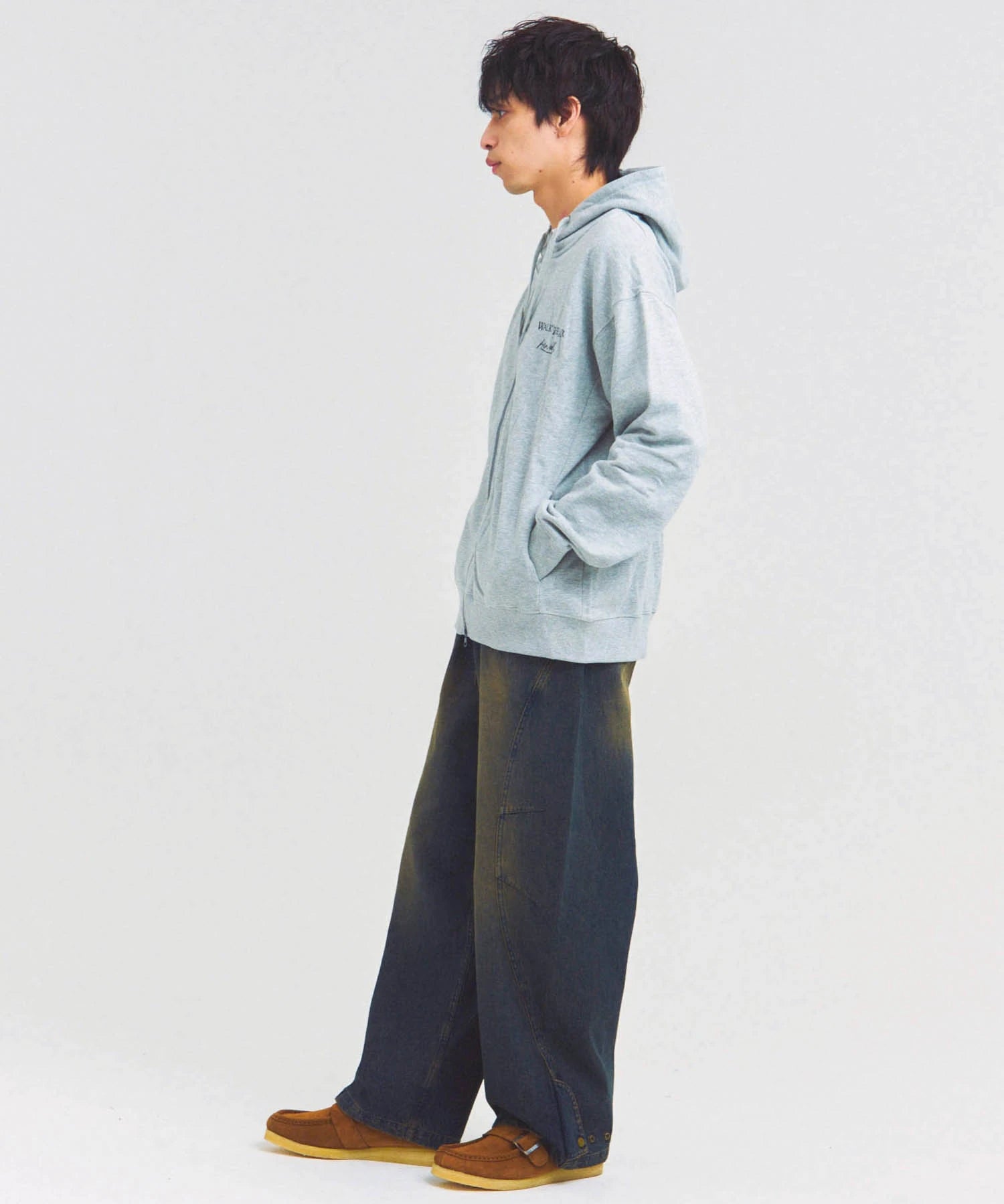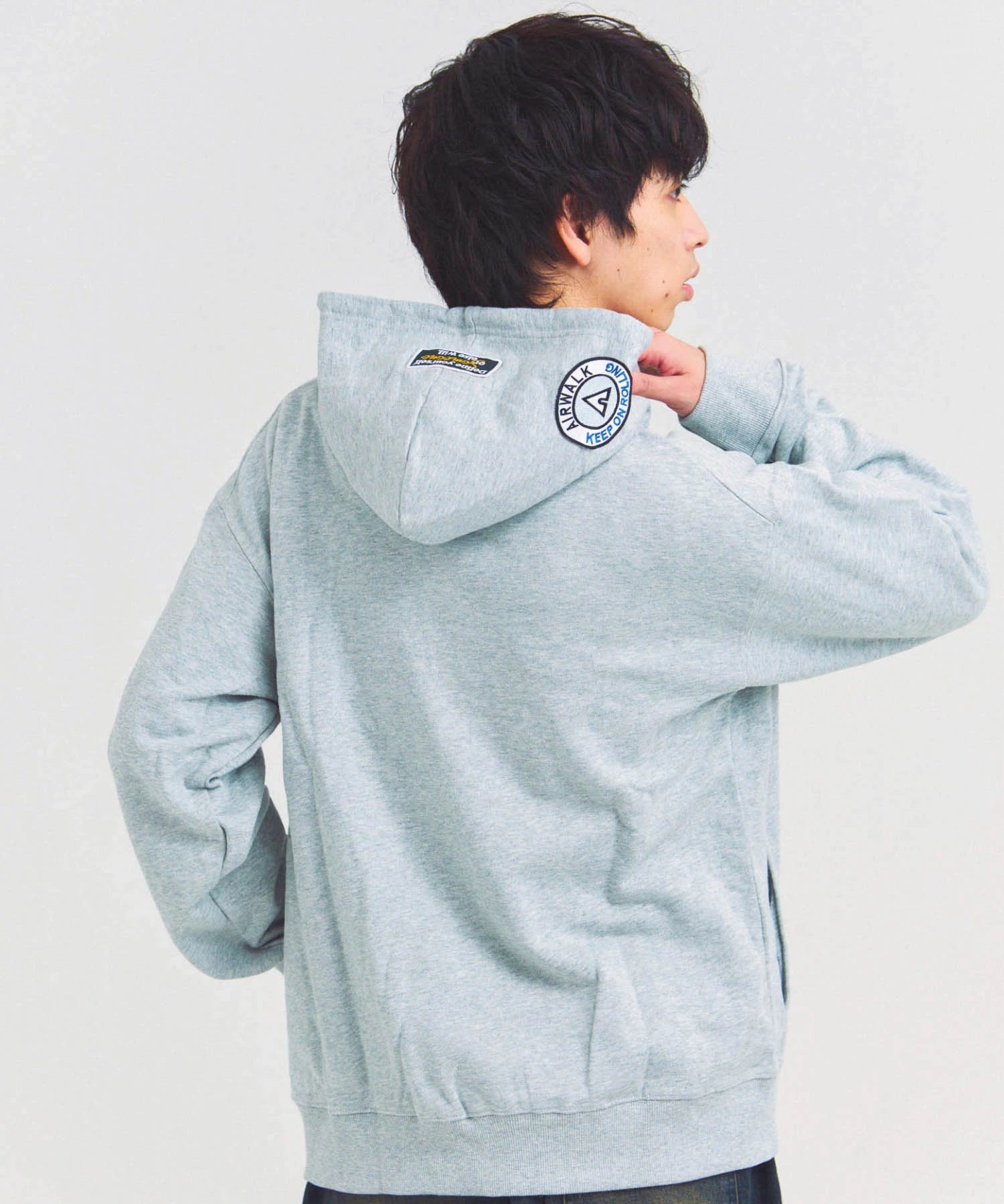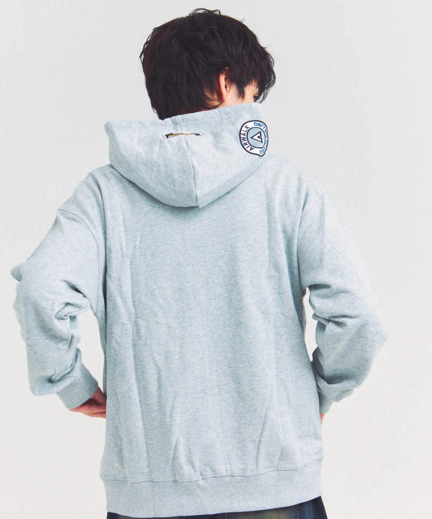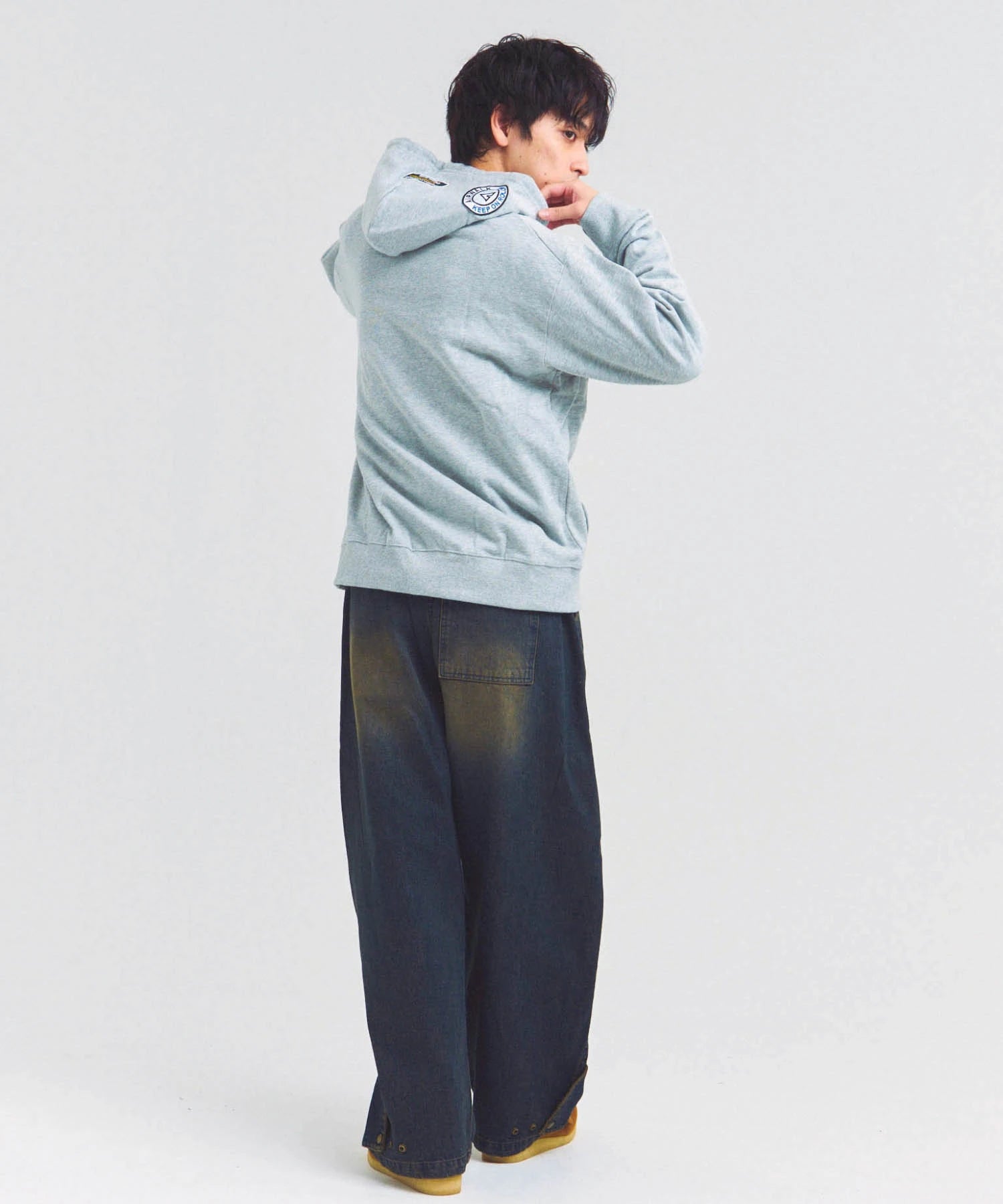 コットン100%の柔らかく肌触りの良い生地。季節を問わず使いやすい厚み。フロントにはジップを採用し、開閉が楽。気温やスタイルに応じて体温調節が可能。胸元には存在感のあるワッペン装飾を配置。デザイン性が高く、1枚でサマになる。ドロップショルダー+ゆったりめの身幅でリラックスしたシルエットなのでユニセックスで着用可能。重ね着やレイヤードにも最適。春・秋のライトアウターとしてだけでなく、冬にはインナーパーカーとしても活躍。