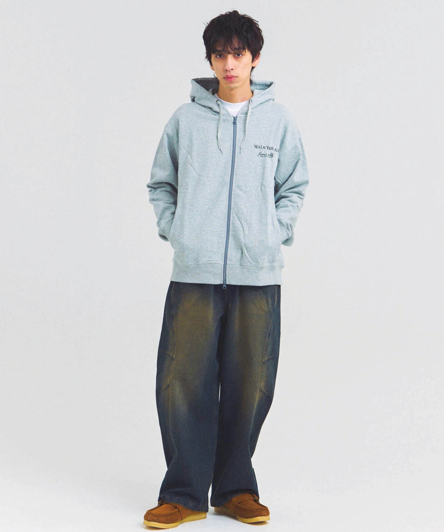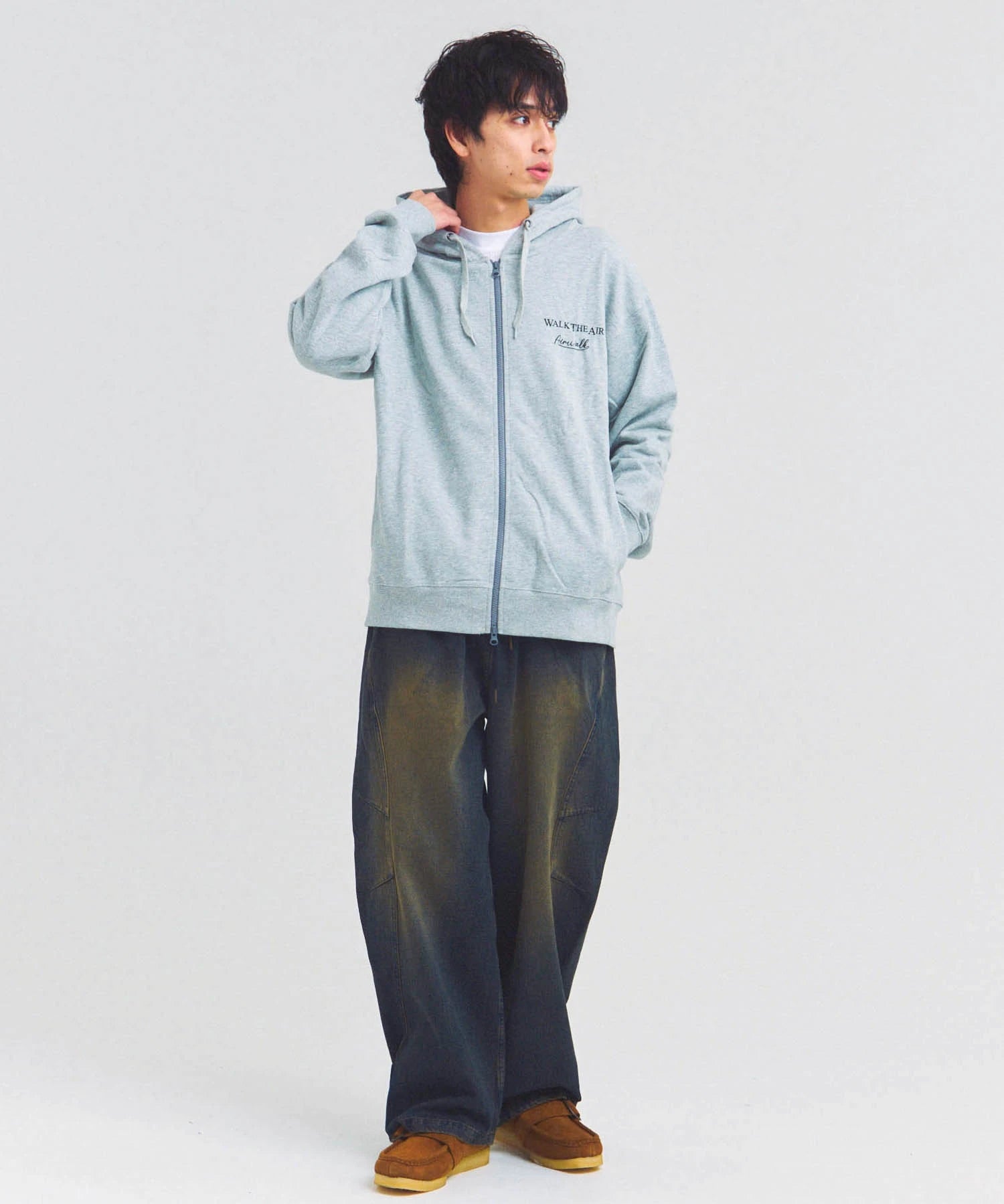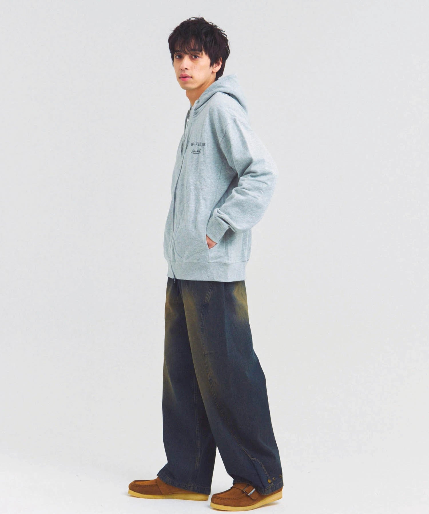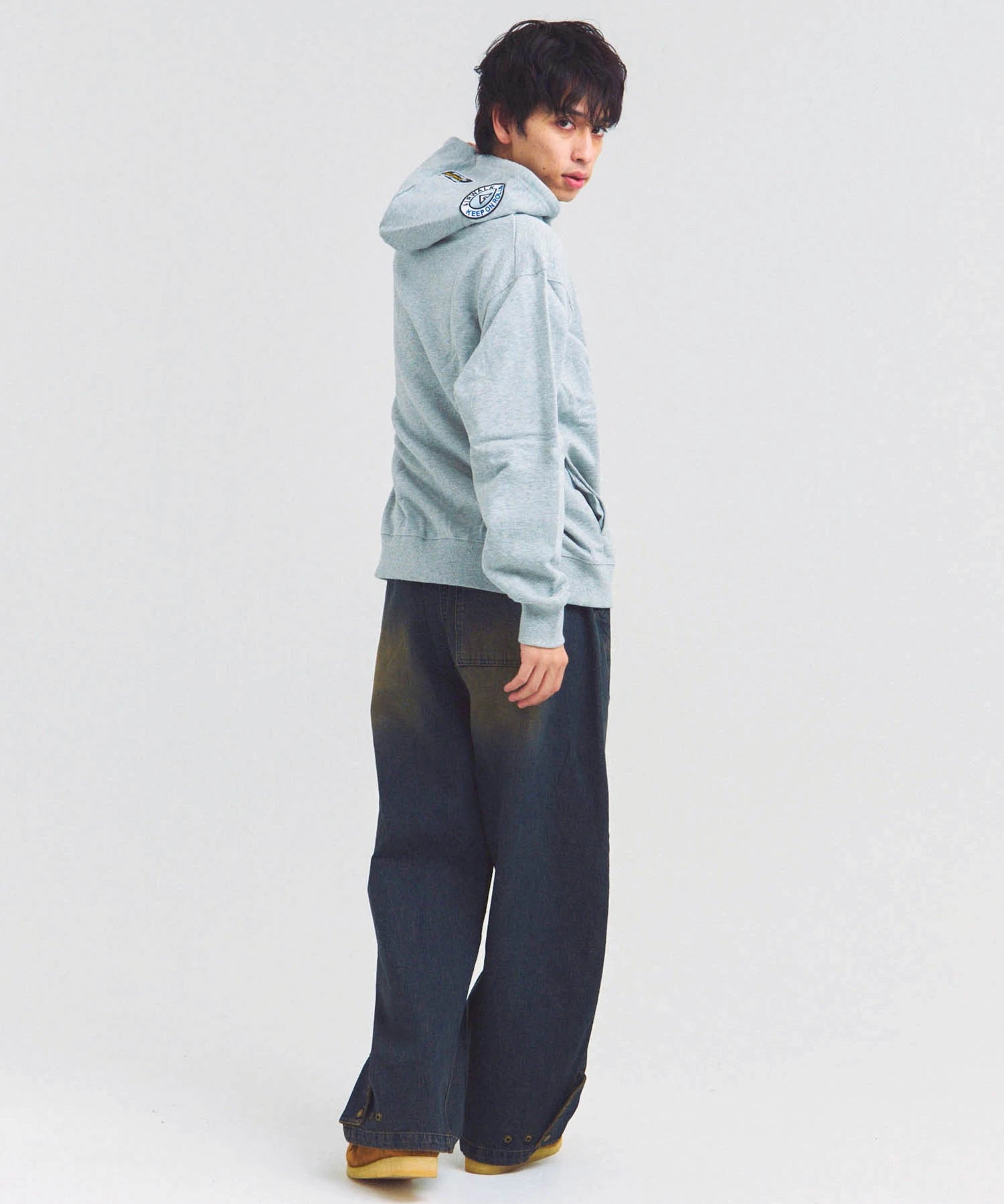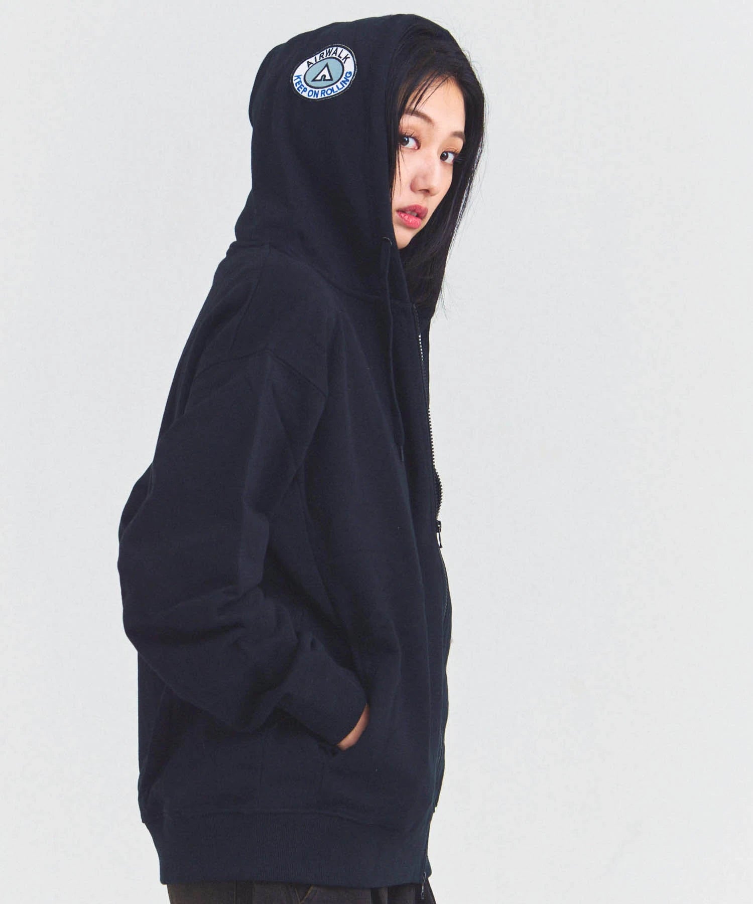 コットン100%の柔らかく肌触りの良い生地。季節を問わず使いやすい厚み。フロントにはジップを採用し、開閉が楽。気温やスタイルに応じて体温調節が可能。胸元には存在感のあるワッペン装飾を配置。デザイン性が高く、1枚でサマになる。ドロップショルダー+ゆったりめの身幅でリラックスしたシルエットなのでユニセックスで着用可能。重ね着やレイヤードにも最適。春・秋のライトアウターとしてだけでなく、冬にはインナーパーカーとしても活躍。