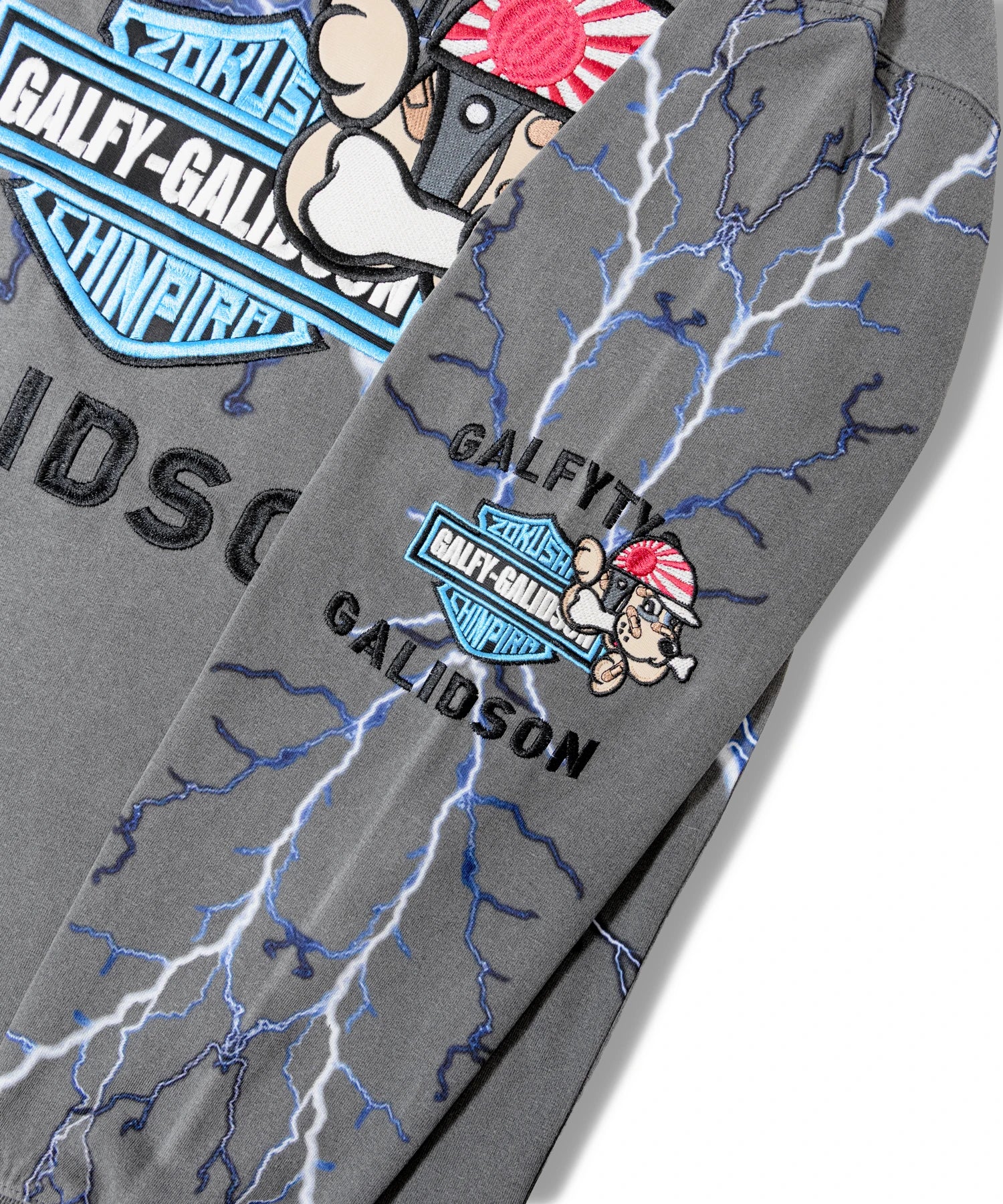 ストリートブランド「GALFY」と「GALLIS ADDICTION」によるコラボレーションシリーズから、圧倒的な存在感を放つ“バイク乗りロンTee”が登場。ブランドの象徴であるガルフィー犬をモチーフに、バイカースタイルをテーマにした迫力のあるグラフィックを落とし込んだデザイン。デザインパターンは2タイプ展開。
