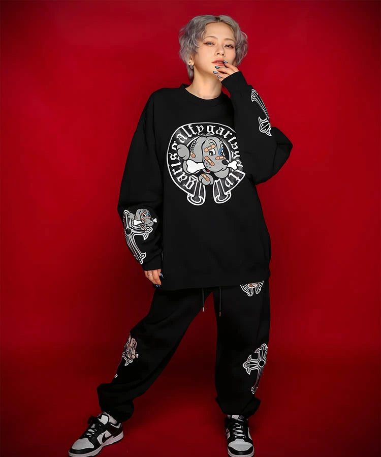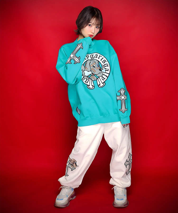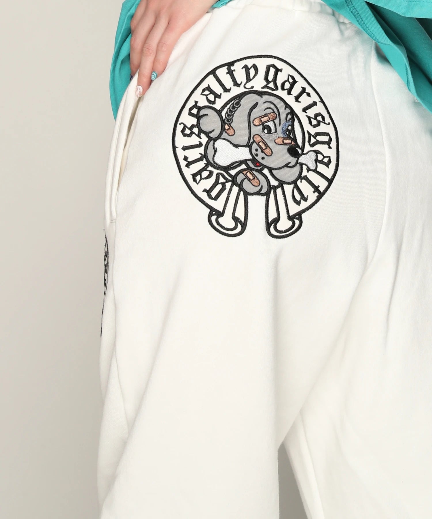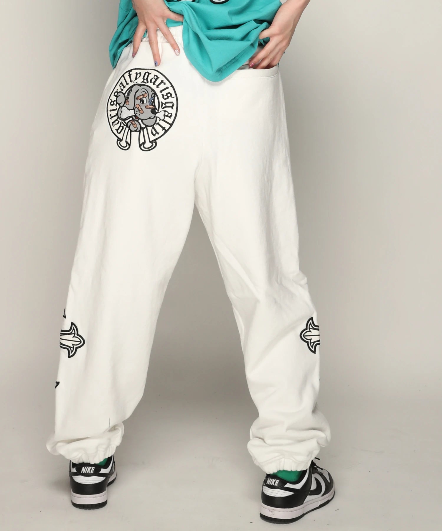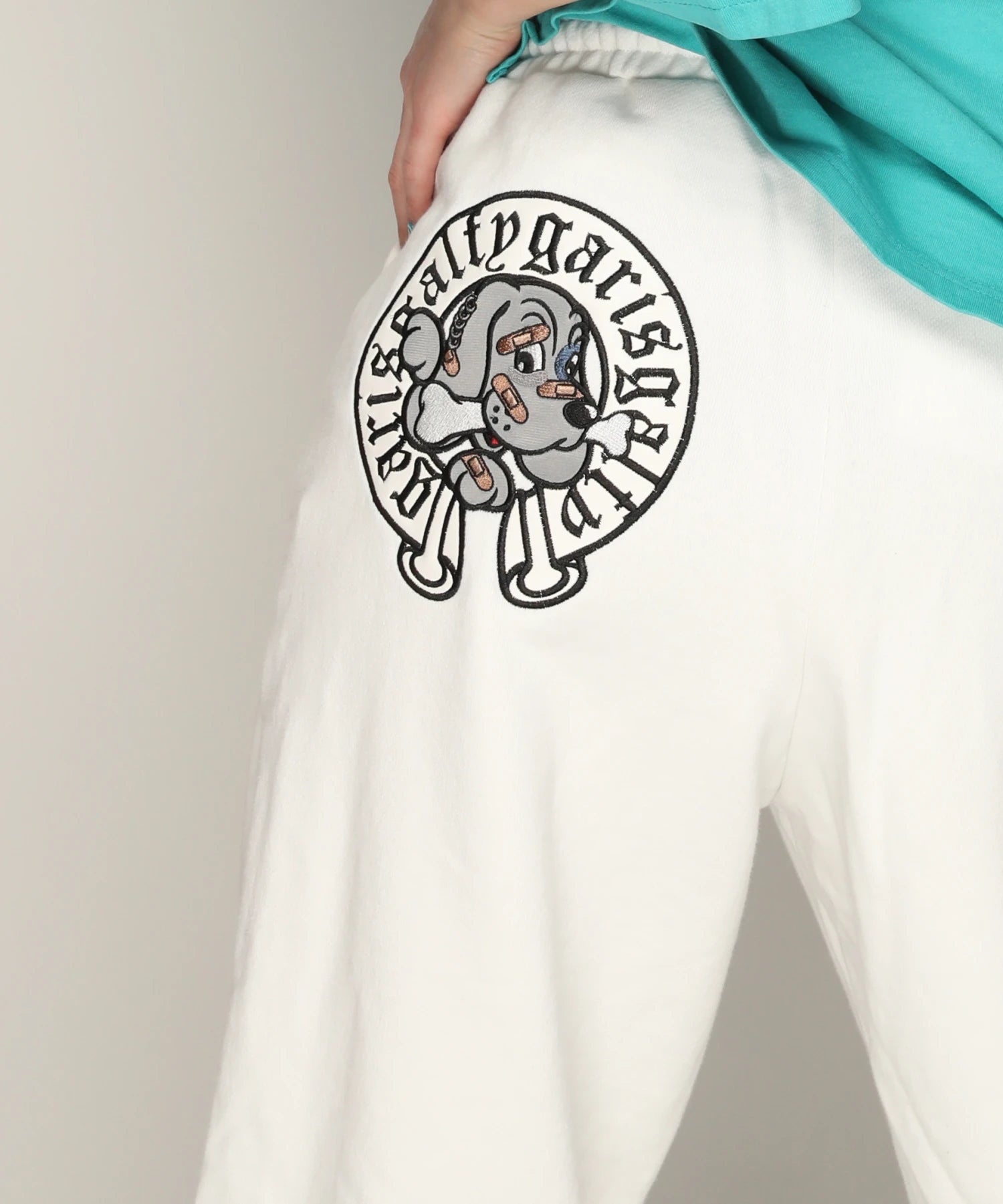 (※犬の色がグレー)絆創膏を貼った「負け犬 GALFY」がデザインされた別注アイテム。某ジュエリー・ブランドをオマージュしたデザインのスウェットパンツ。ユルっとしたワイドシルエットにデザインされたストリートライクなアイテム。メス犬(Sサイズ)は比較的タイトなレディースサイズ、中型犬/大型犬(L・XL)はゆったりとしたサイズ感でメンズライクなコーデが好きな女性にもオススメのユニセックスアイテム。前作で大好評だった「ガリノハーツZIPパーカー」とセットアップでの着用が可能。ホワイト・ブラック・・・犬の色がベージュホワイト2・ブラック2・・・犬の色がグレー↓セットアップ商品はこちら↓(ホワイト・ブラック)542475226009 GALFY×GA-ガリノハーツZIPパーカー(ホワイト2・ブラック2)542545226001 GALFY×GA-ガリノハーツクルースウェット【GALFY/ガルフィー】90年代のストリートカルチャーをベースに当時の「バブル感」を継承しつつ現在のトレンドとのMIX感を重要視し、都会的かつアクティブな提案を展開していく超話題の唯一無二の炎上ブランド。