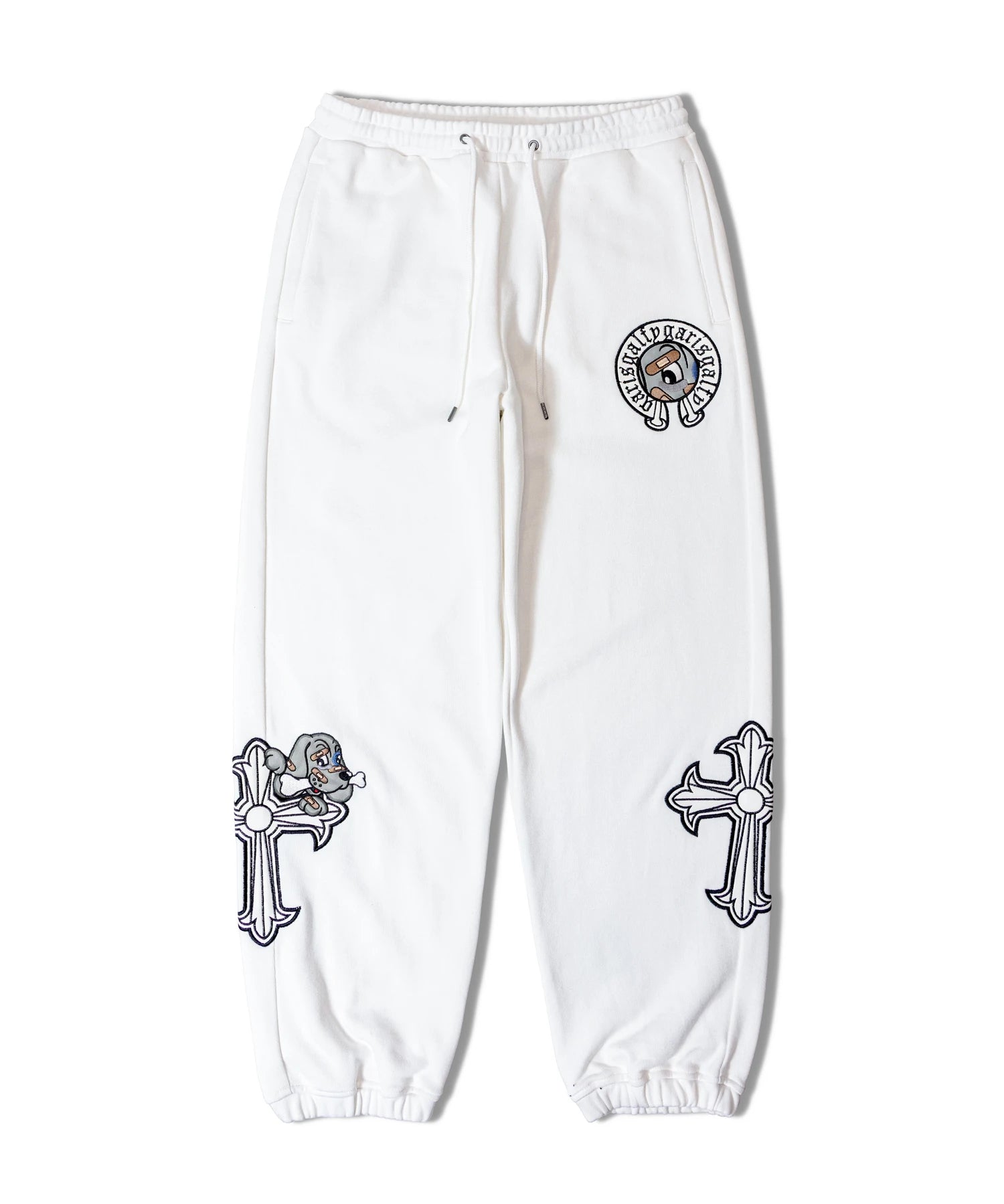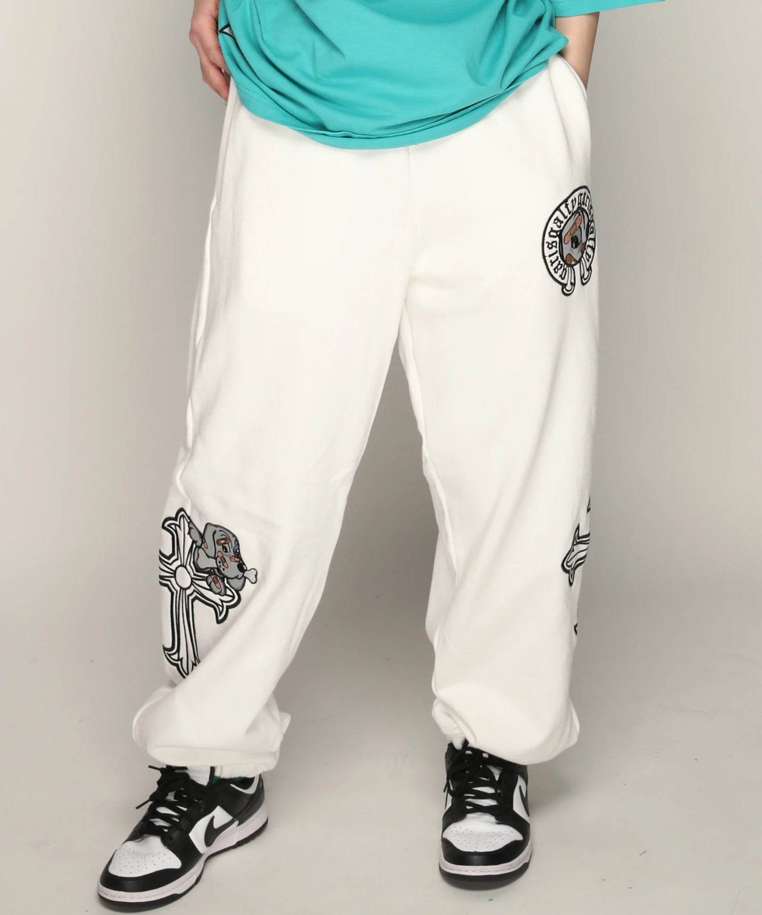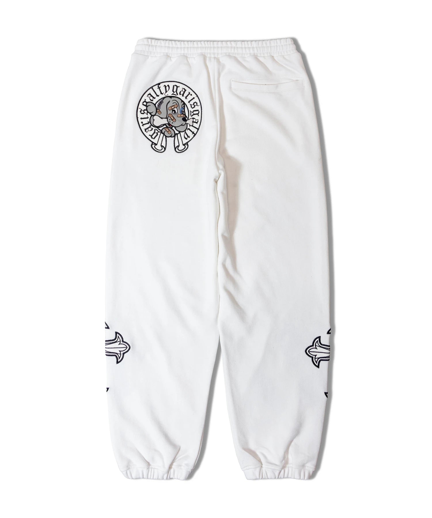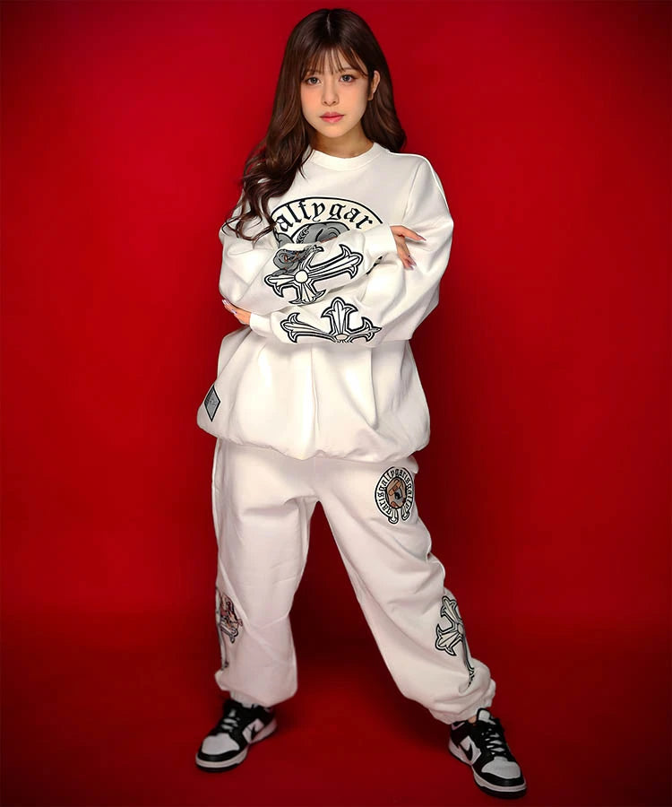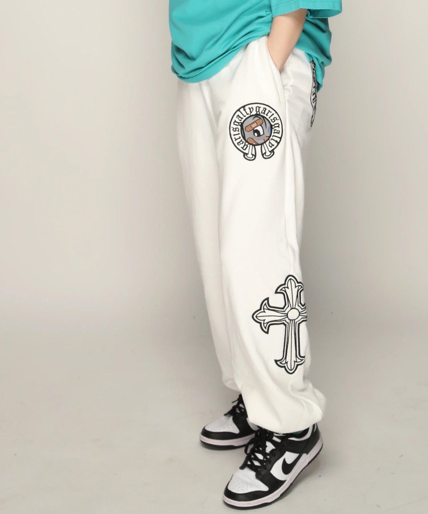 (※犬の色がグレー)絆創膏を貼った「負け犬 GALFY」がデザインされた別注アイテム。某ジュエリー・ブランドをオマージュしたデザインのスウェットパンツ。ユルっとしたワイドシルエットにデザインされたストリートライクなアイテム。メス犬(Sサイズ)は比較的タイトなレディースサイズ、中型犬/大型犬(L・XL)はゆったりとしたサイズ感でメンズライクなコーデが好きな女性にもオススメのユニセックスアイテム。前作で大好評だった「ガリノハーツZIPパーカー」とセットアップでの着用が可能。ホワイト・ブラック・・・犬の色がベージュホワイト2・ブラック2・・・犬の色がグレー↓セットアップ商品はこちら↓(ホワイト・ブラック)542475226009 GALFY×GA-ガリノハーツZIPパーカー(ホワイト2・ブラック2)542545226001 GALFY×GA-ガリノハーツクルースウェット【GALFY/ガルフィー】90年代のストリートカルチャーをベースに当時の「バブル感」を継承しつつ現在のトレンドとのMIX感を重要視し、都会的かつアクティブな提案を展開していく超話題の唯一無二の炎上ブランド。