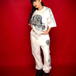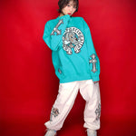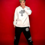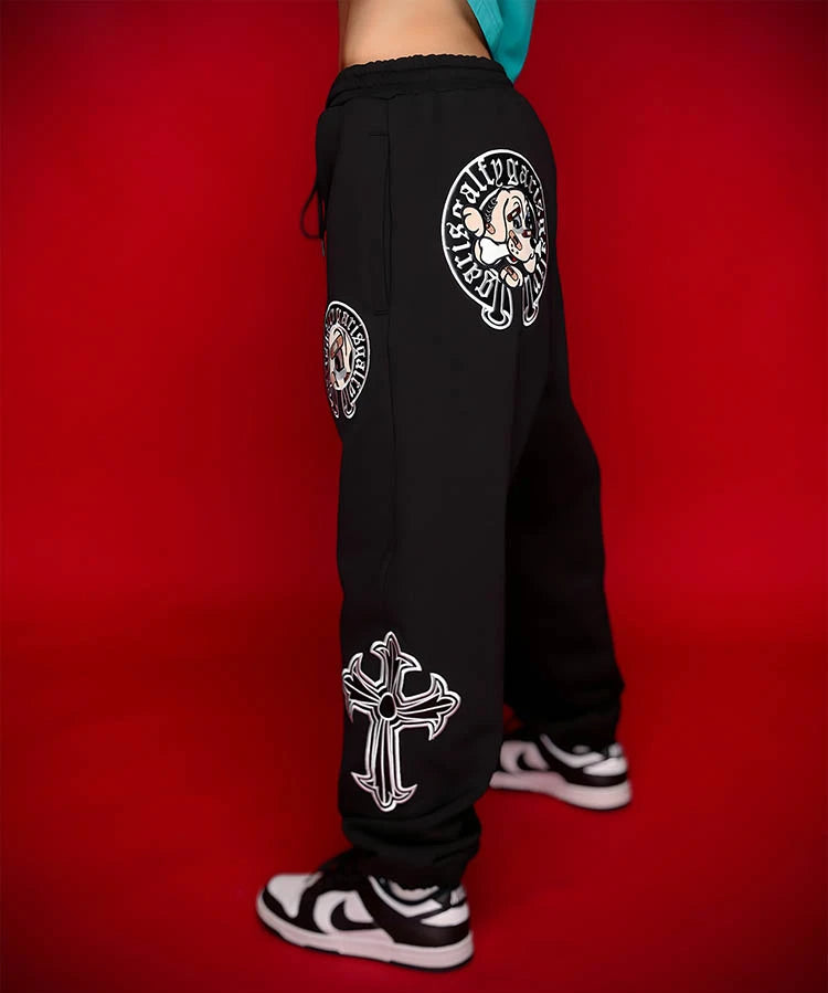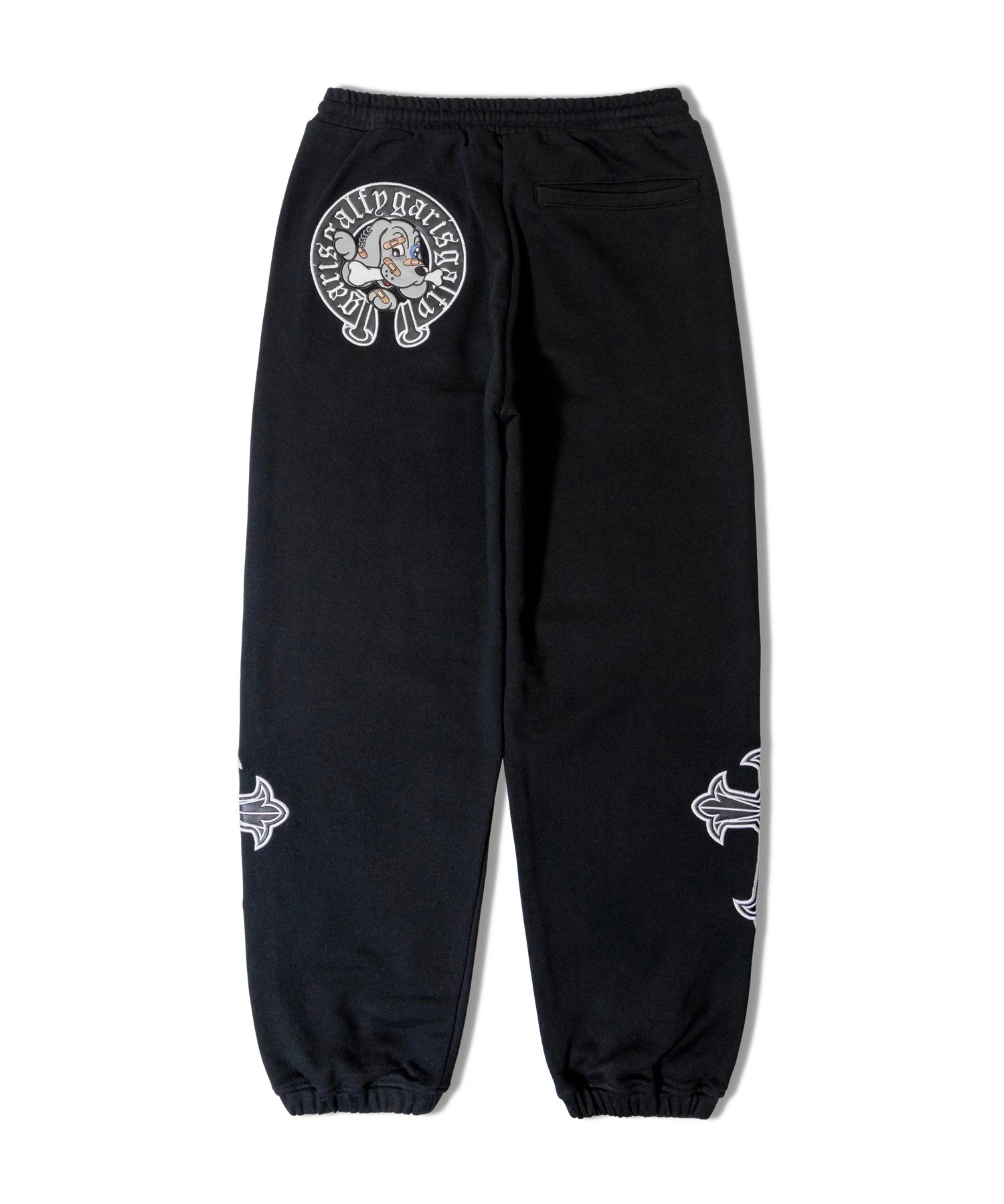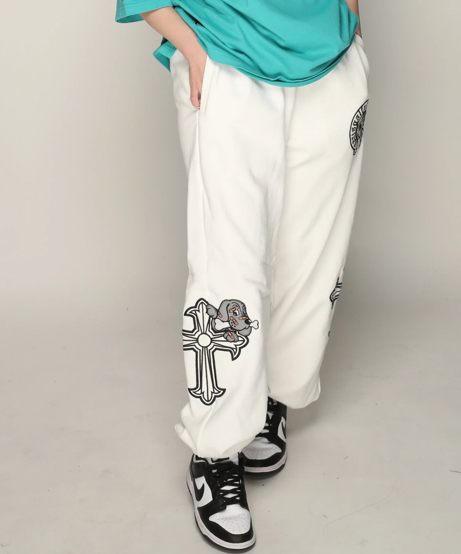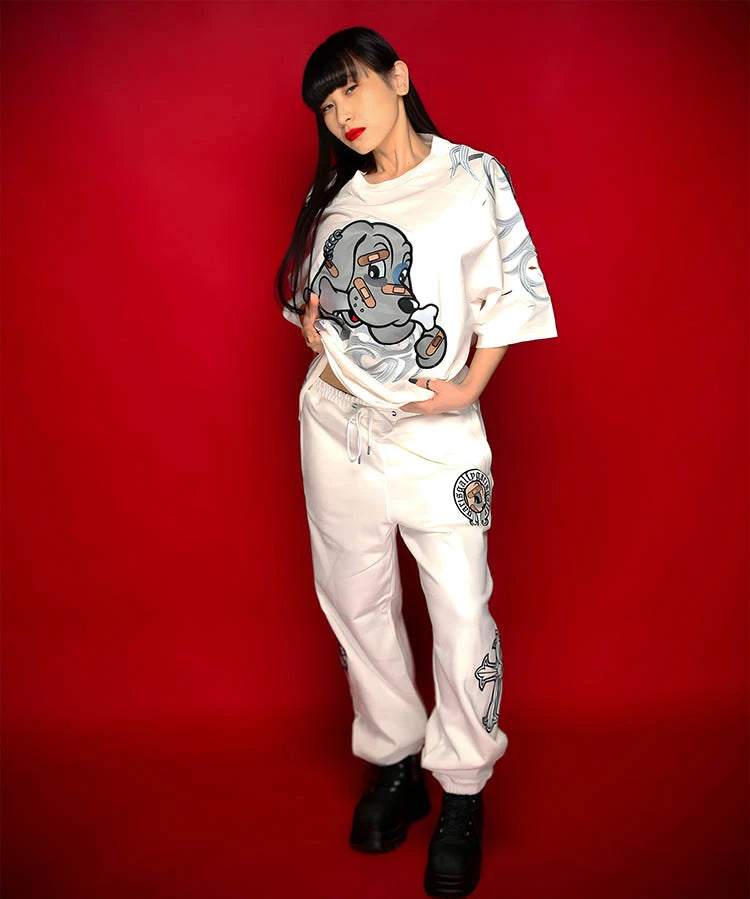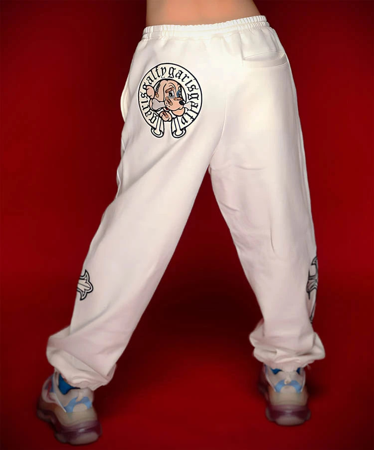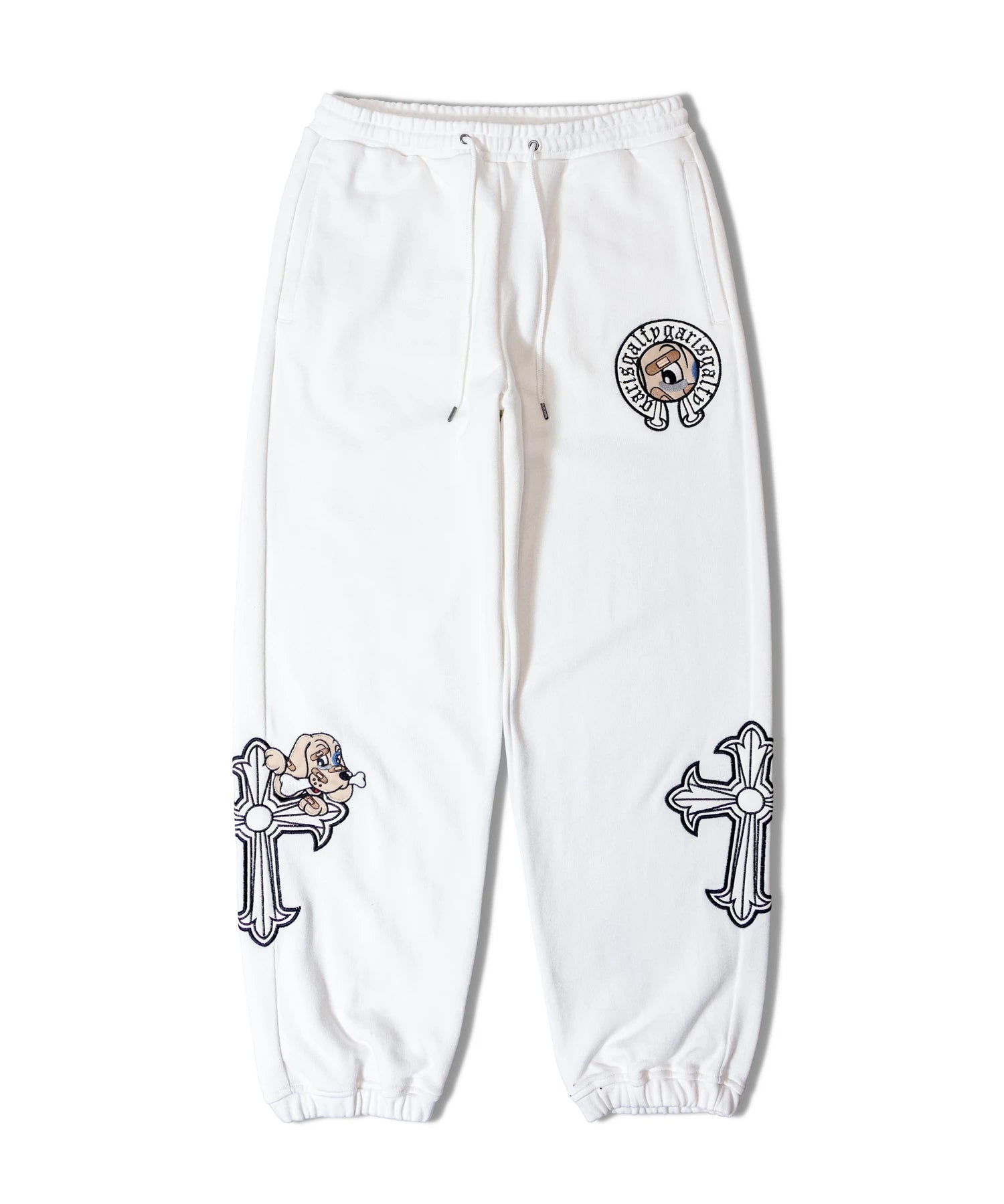 (※犬の色がグレー)絆創膏を貼った「負け犬 GALFY」がデザインされた別注アイテム。某ジュエリー・ブランドをオマージュしたデザインのスウェットパンツ。ユルっとしたワイドシルエットにデザインされたストリートライクなアイテム。メス犬(Sサイズ)は比較的タイトなレディースサイズ、中型犬/大型犬(L・XL)はゆったりとしたサイズ感でメンズライクなコーデが好きな女性にもオススメのユニセックスアイテム。前作で大好評だった「ガリノハーツZIPパーカー」とセットアップでの着用が可能。ホワイト・ブラック・・・犬の色がベージュホワイト2・ブラック2・・・犬の色がグレー↓セットアップ商品はこちら↓(ホワイト・ブラック)542475226009 GALFY×GA-ガリノハーツZIPパーカー(ホワイト2・ブラック2)542545226001 GALFY×GA-ガリノハーツクルースウェット【GALFY/ガルフィー】90年代のストリートカルチャーをベースに当時の「バブル感」を継承しつつ現在のトレンドとのMIX感を重要視し、都会的かつアクティブな提案を展開していく超話題の唯一無二の炎上ブランド。