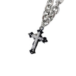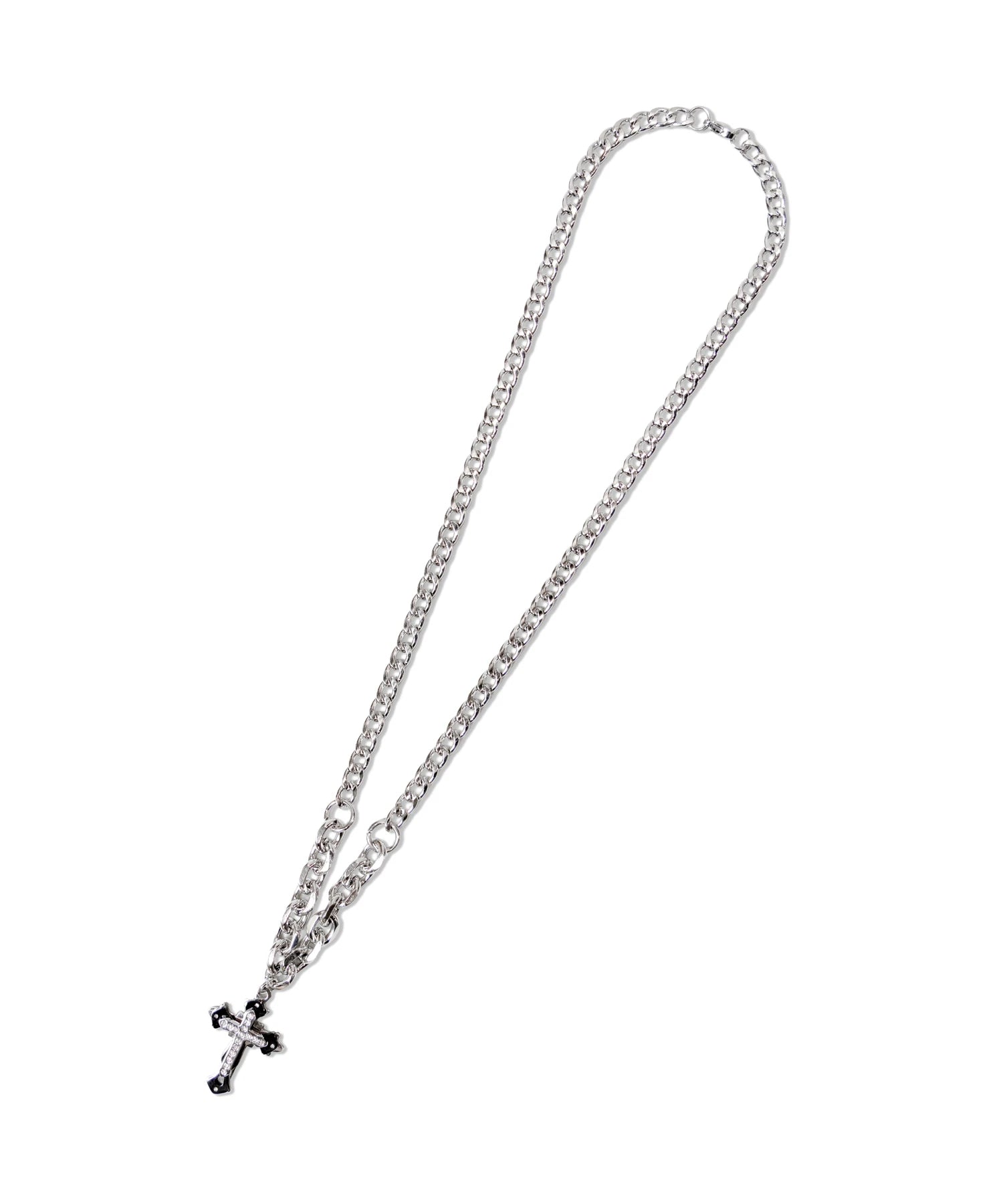 厚みのあるチェーンと立体的なクロスモチーフが融合した存在感のあるネックレス。重厚感がありながらも洗練された印象で、1本でスタイルを引き締めます。Tシャツやシャツの上に重ねるだけでコーディネートが完成。男性にも女性にも人気のユニセックスデザインで、ペアアクセとしてもおすすめです。