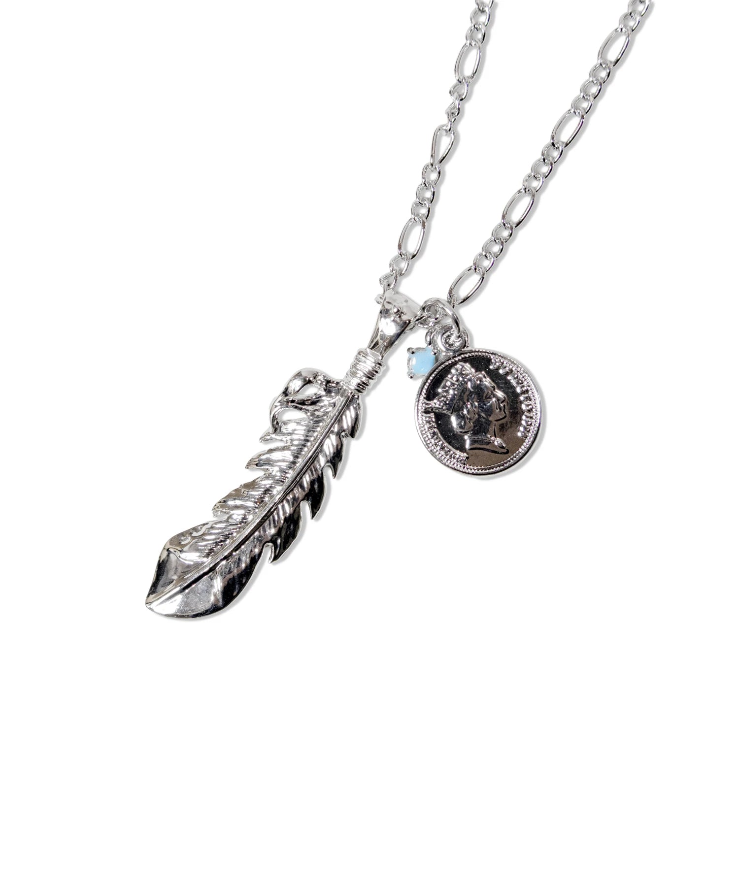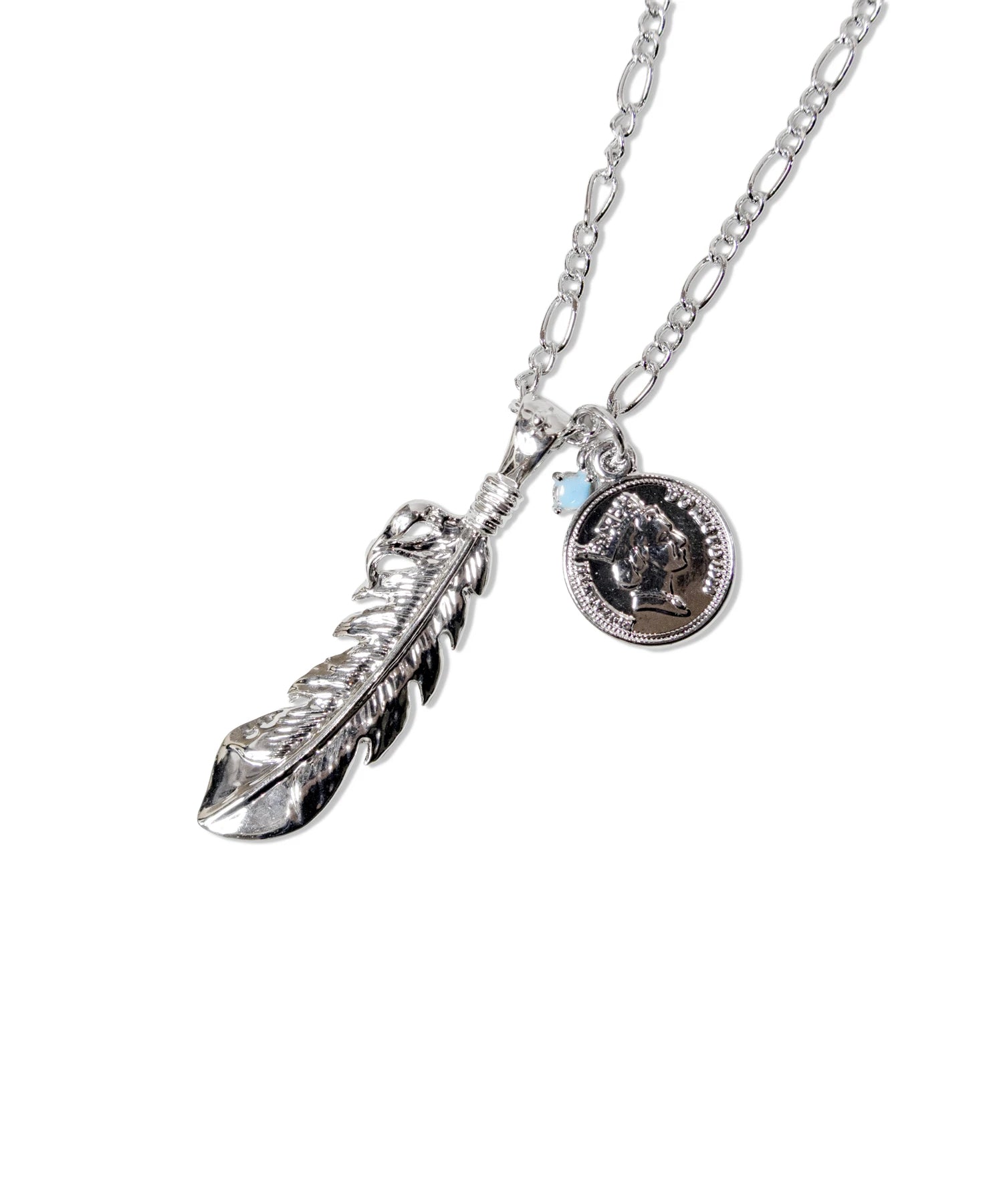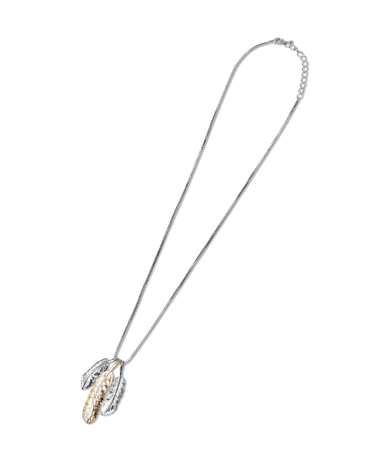 フェザーモチーフの繊細な彫刻が美しいネックレス。どんなスタイルにも自然に馴染むデザインで、ひとつ着けるだけで洗練された印象に。メンズ・レディース問わず人気の高いデザインで、季節を問わず活躍します。お揃いで身に着けても映える、ギフトにも最適なアクセサリーです。