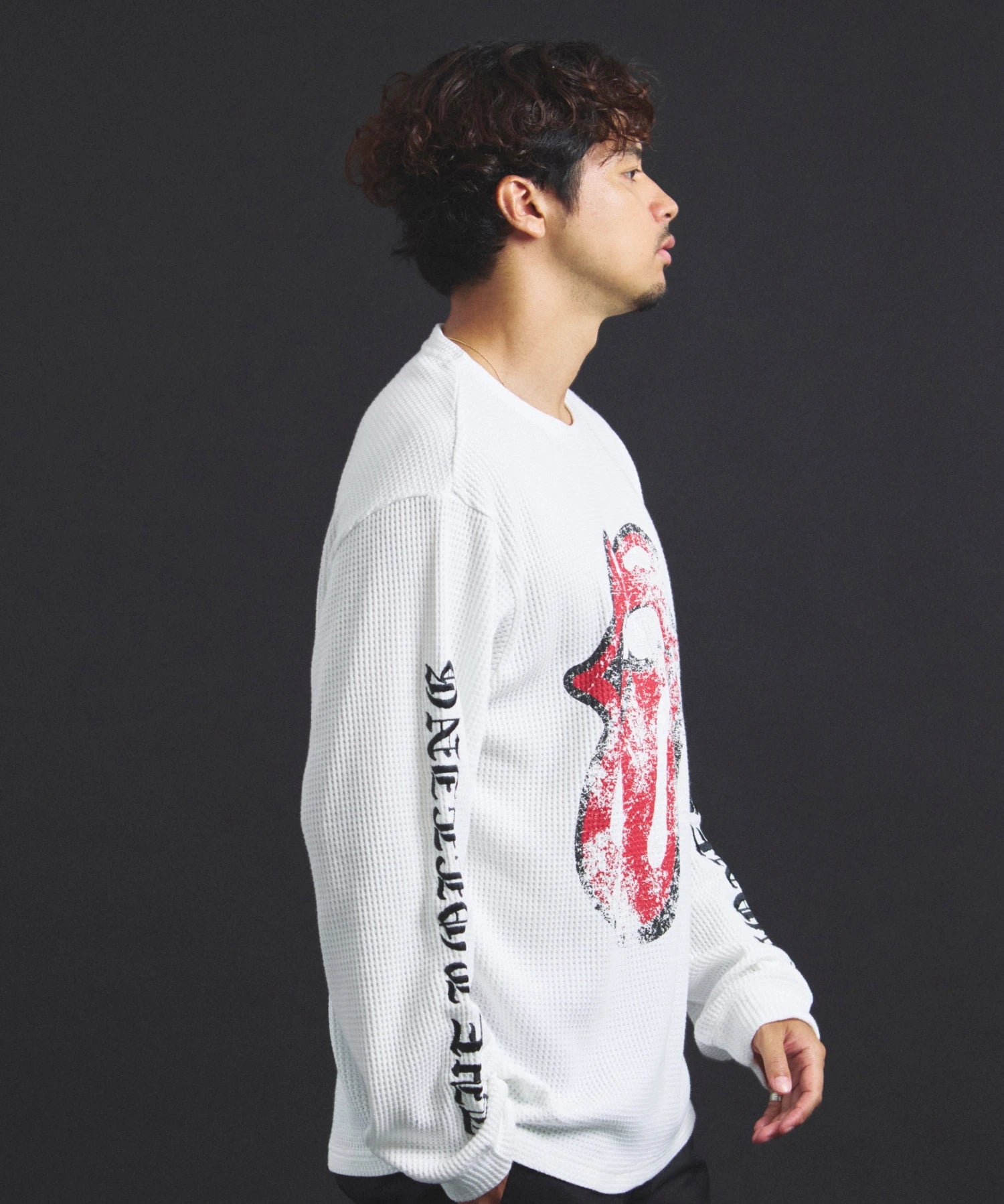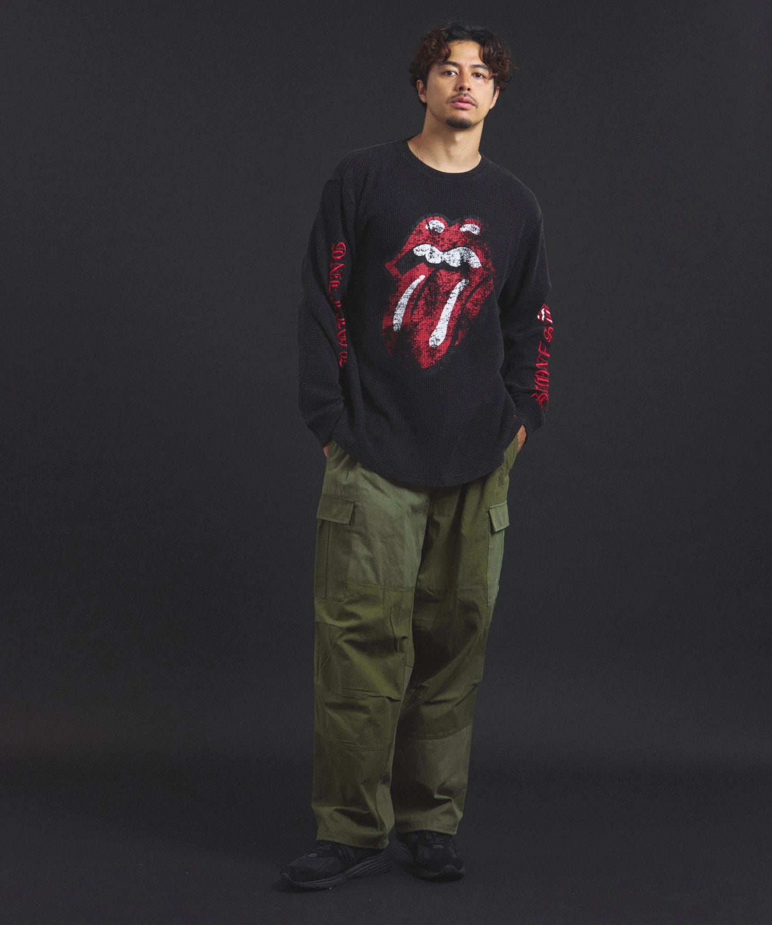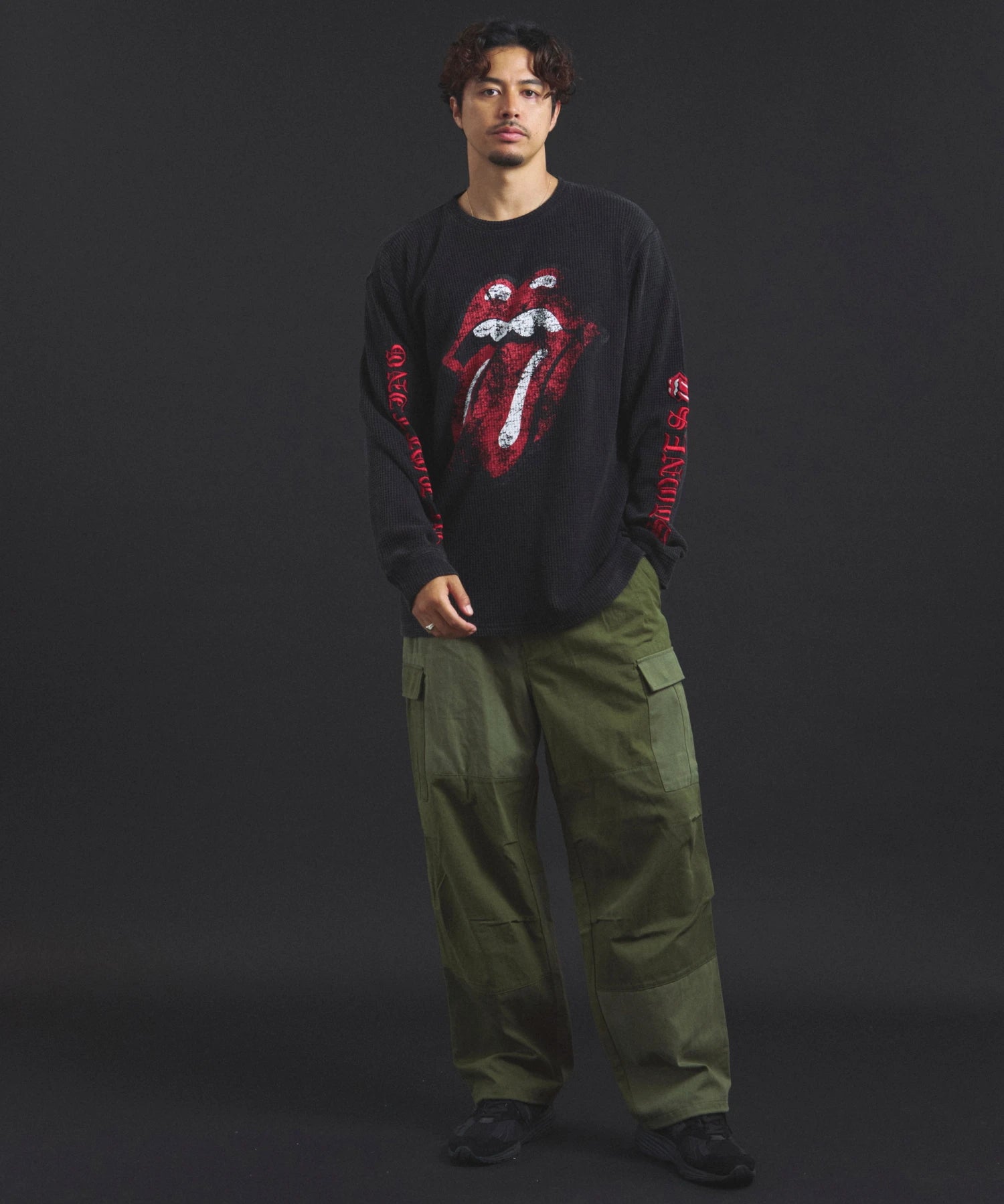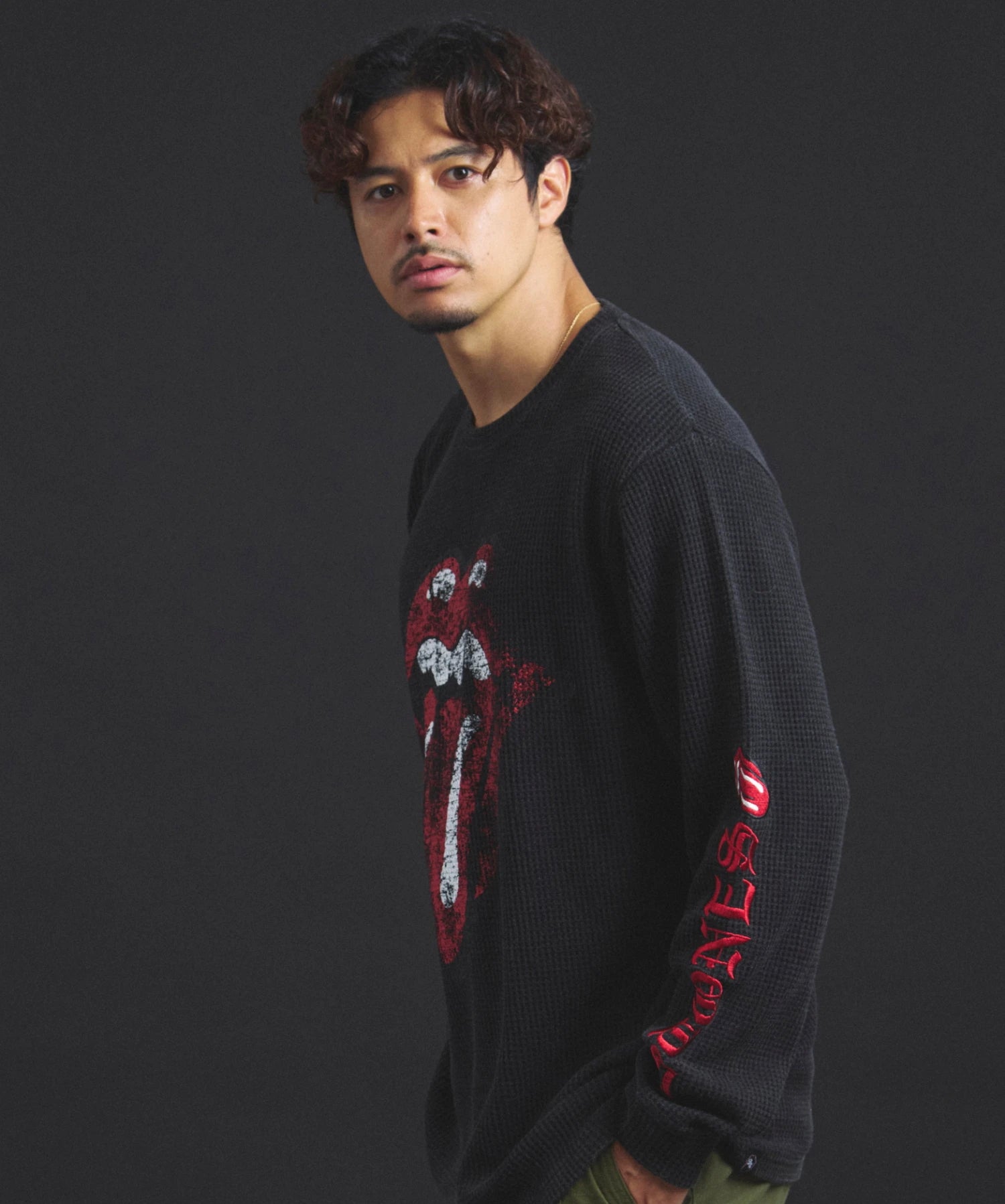 ロックを象徴する「The Rolling Stones」とJACKROSEのコラボレーションから登場した、Lips & Tongue サーマルL/S TEE。フロントにはアイコニックな“Lips & Tongue”ロゴをプリントし、存在感のあるデザインに仕上げています。
