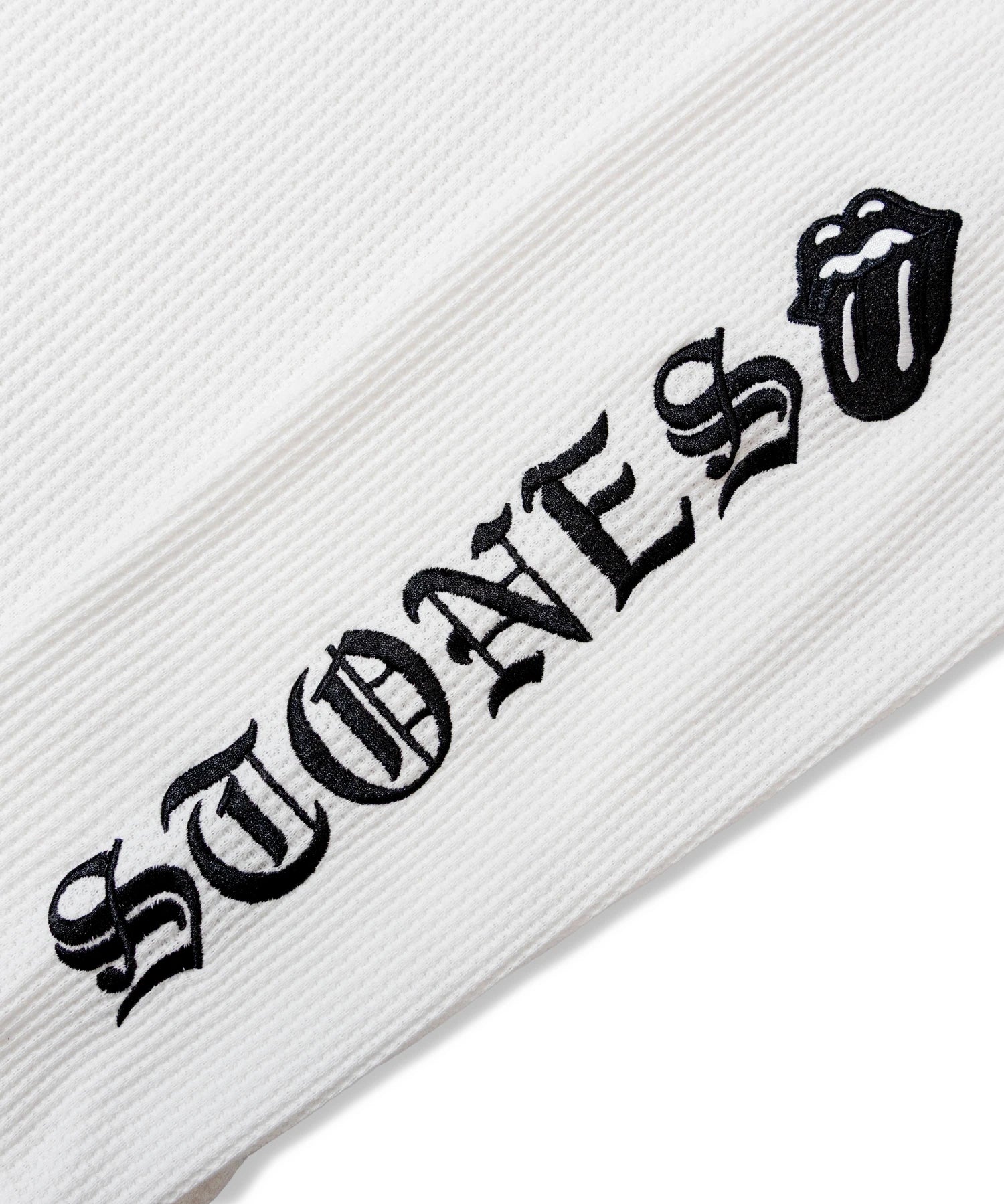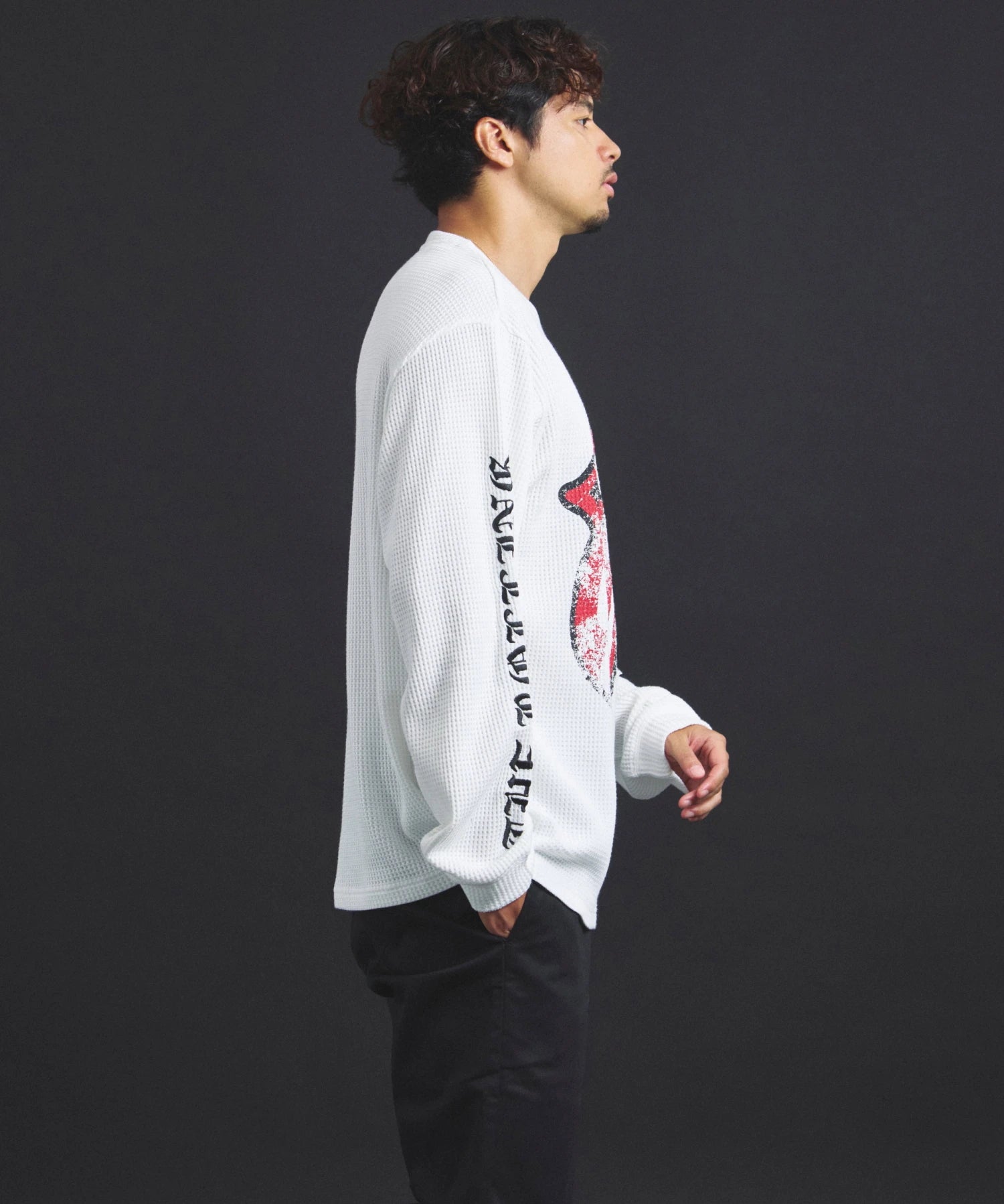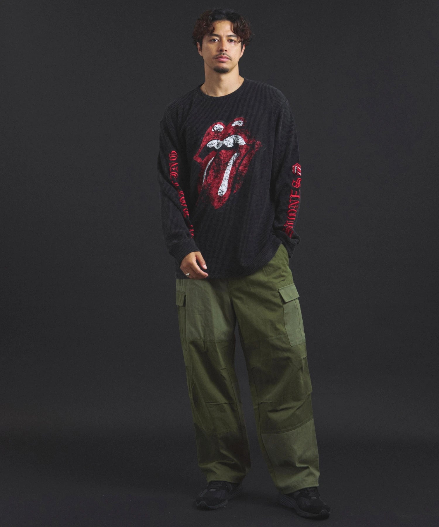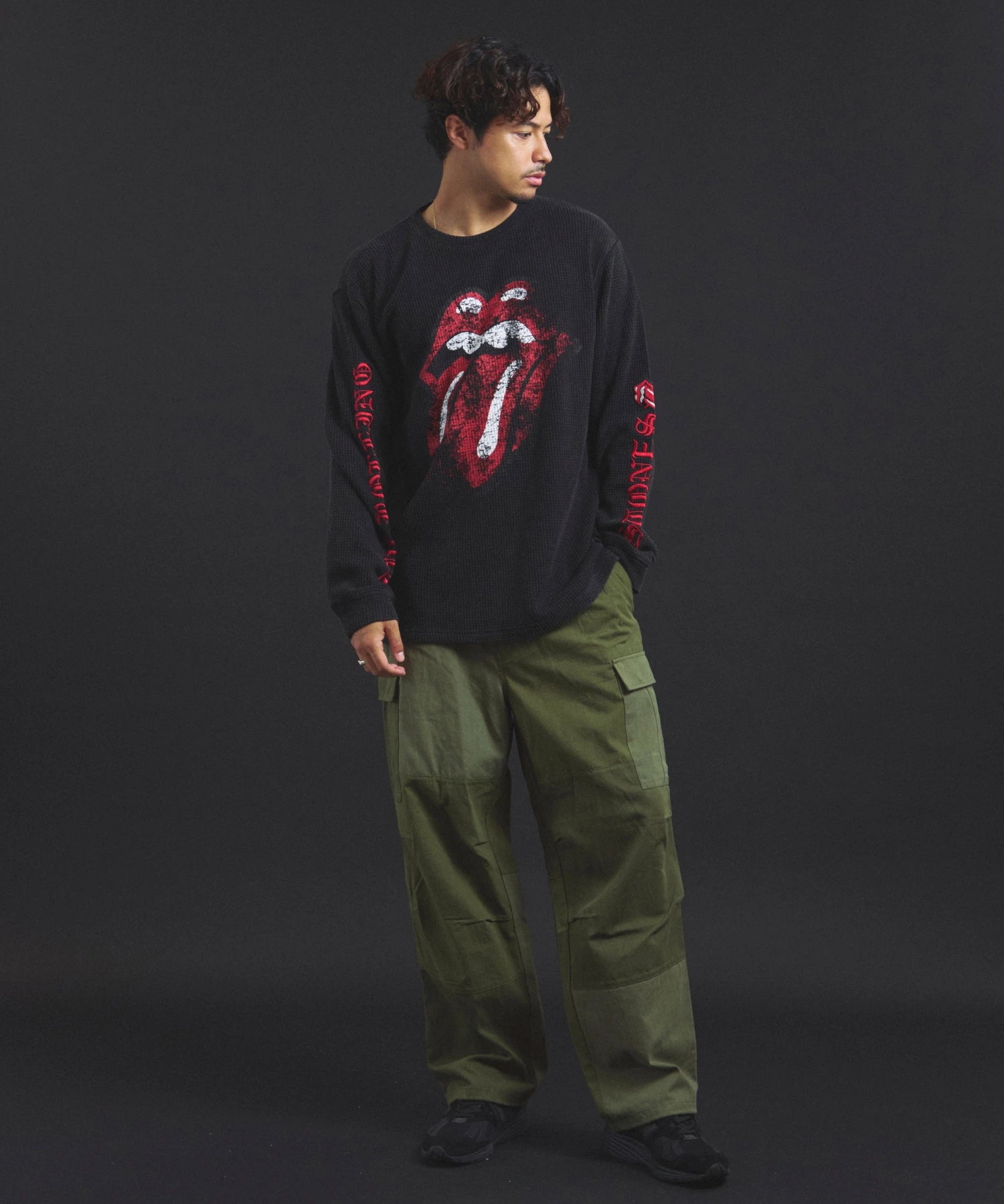 ロックを象徴する「The Rolling Stones」とJACKROSEのコラボレーションから登場した、Lips & Tongue サーマルL/S TEE。フロントにはアイコニックな“Lips & Tongue”ロゴをプリントし、存在感のあるデザインに仕上げています。