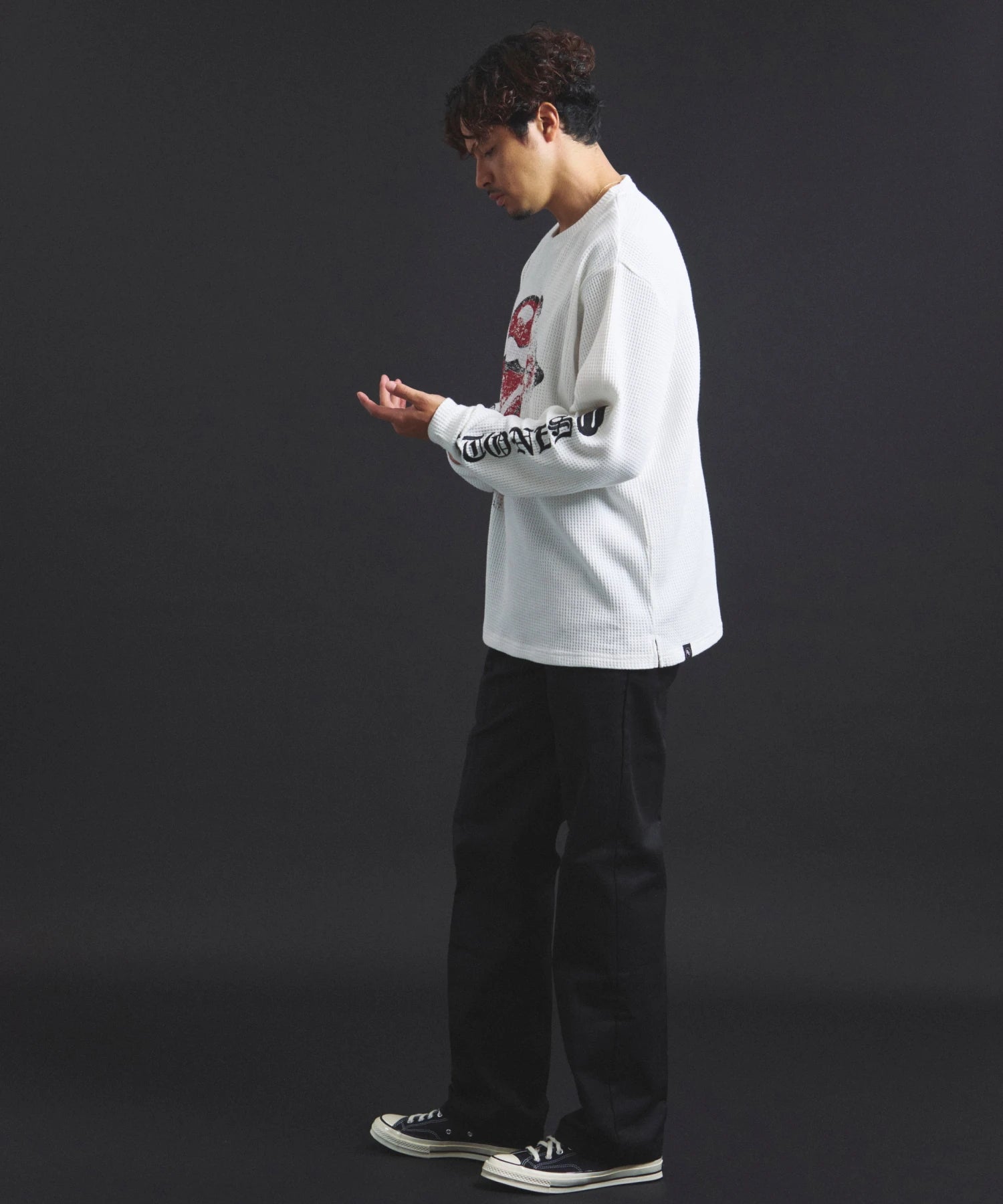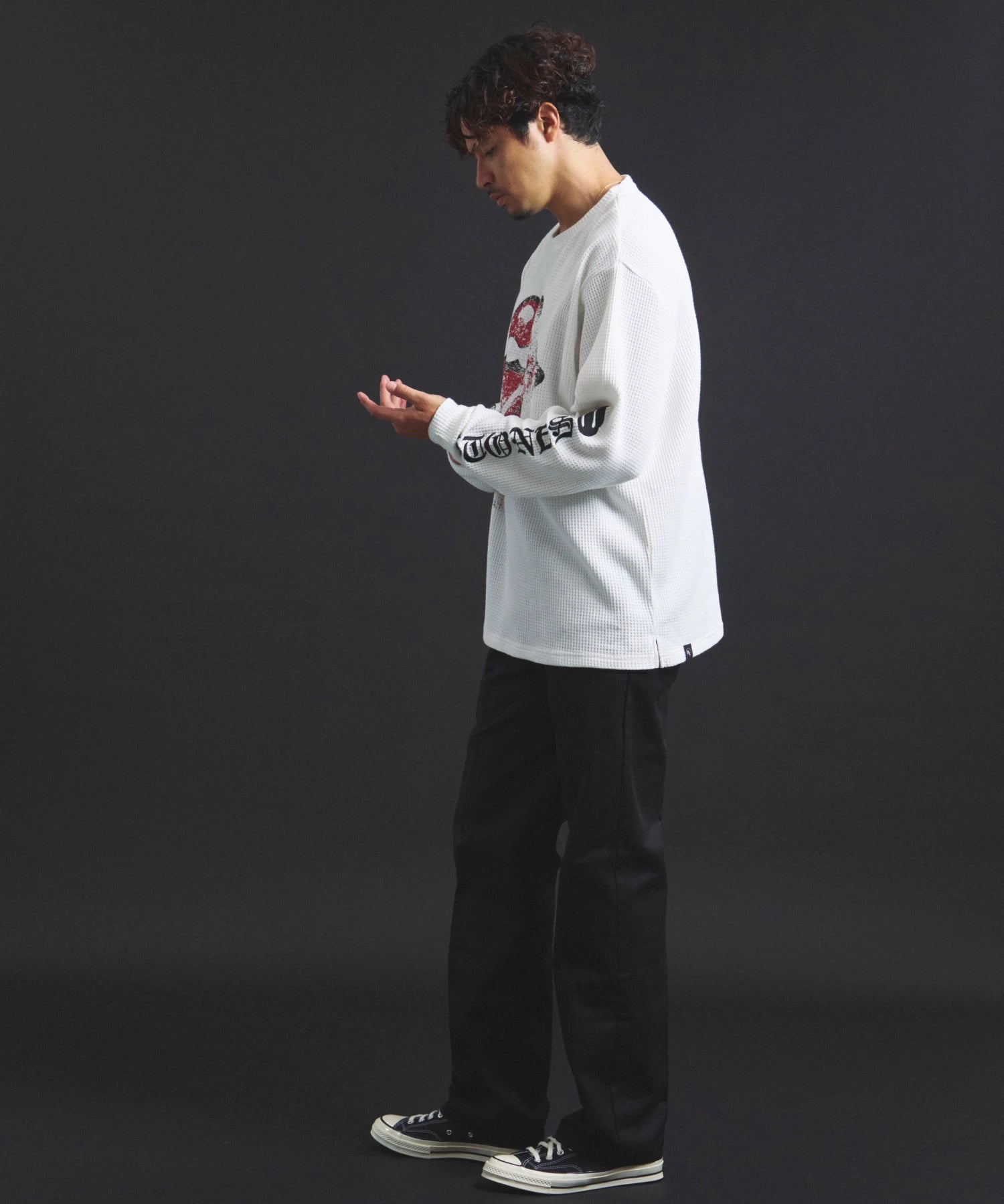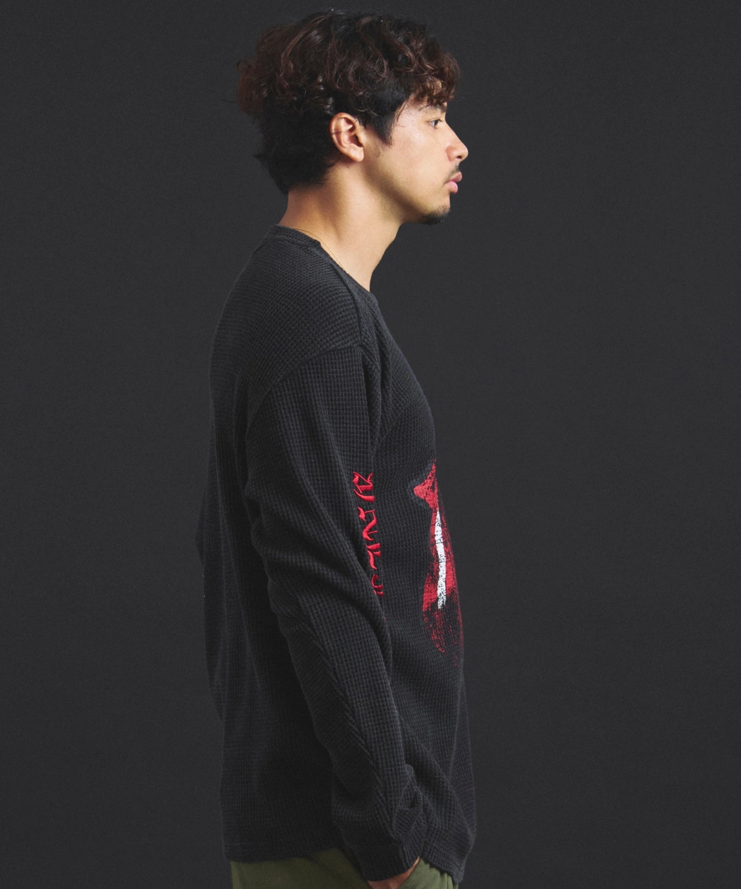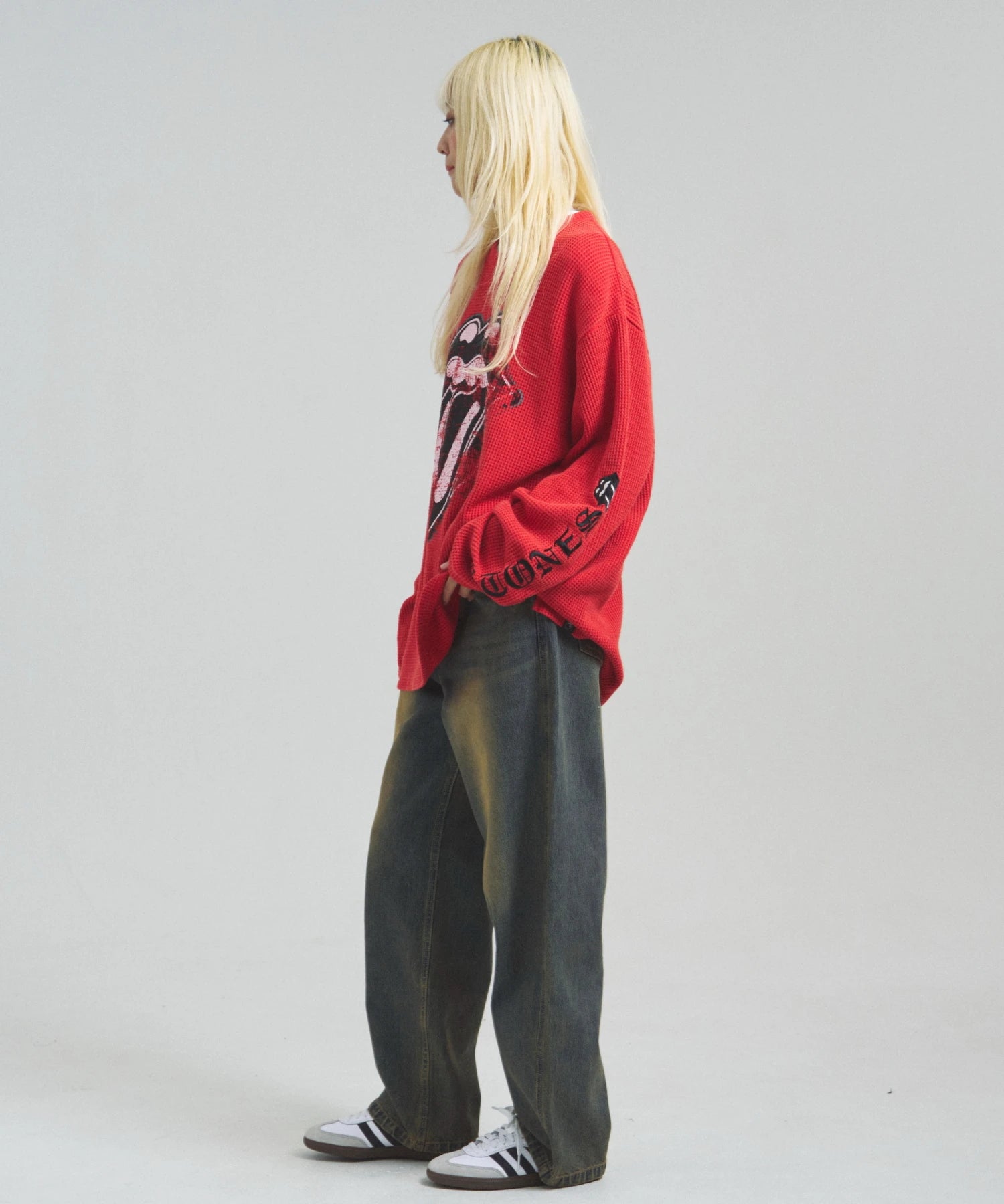 ロックを象徴する「The Rolling Stones」とJACKROSEのコラボレーションから登場した、Lips & Tongue サーマルL/S TEE。フロントにはアイコニックな“Lips & Tongue”ロゴをプリントし、存在感のあるデザインに仕上げています。