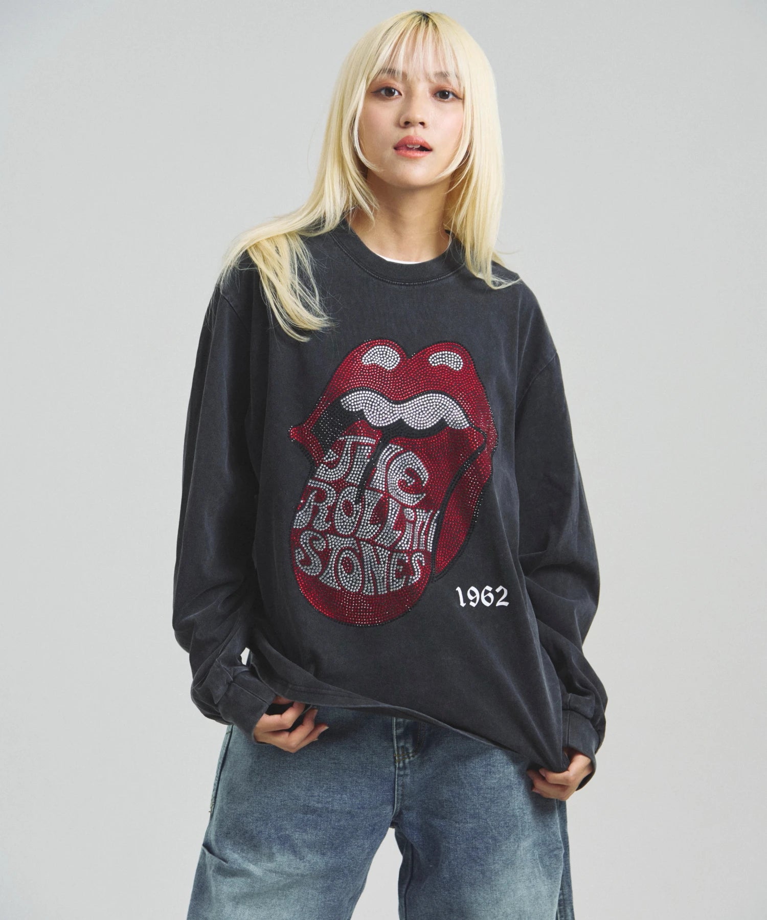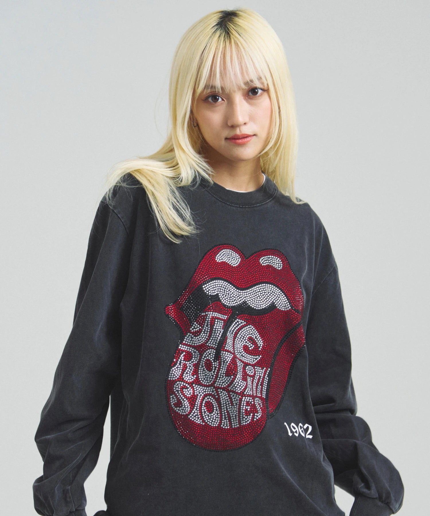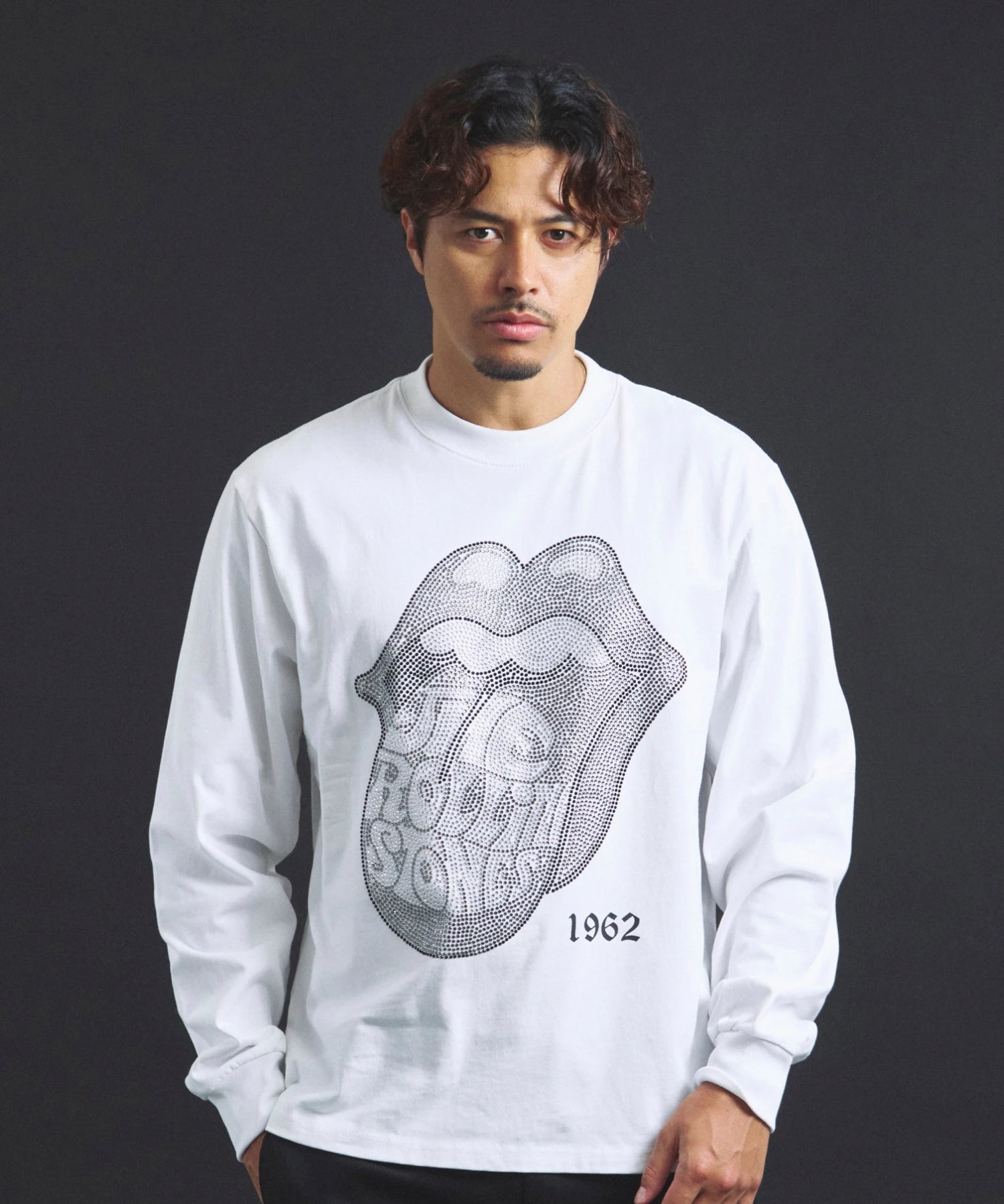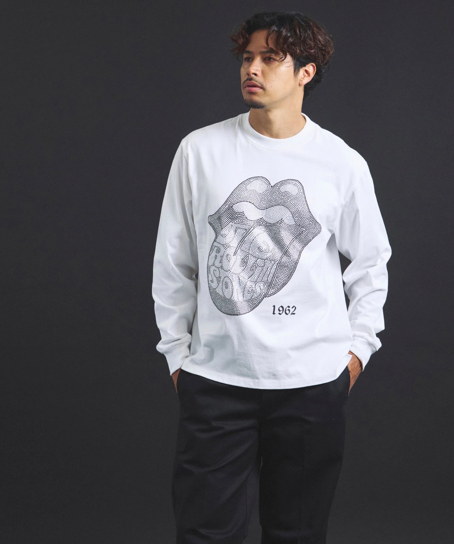 その他1・その他2[ラインストーン]フロントの「Lips & Tongue(リップス&タン)」ロゴを、きらめくラインストーンで表現。袖にはバンドのデビュー年「1962」のロゴをプリントし、ロックなムードを強調。