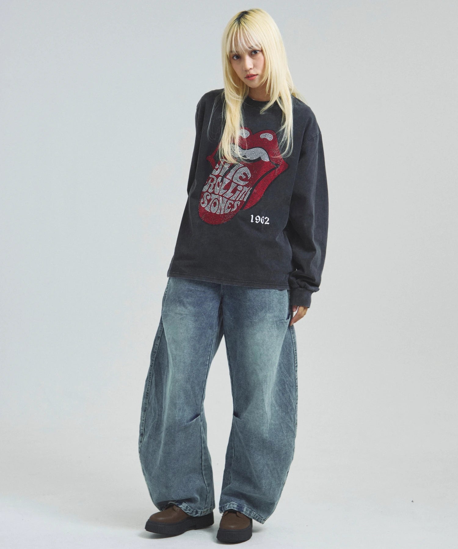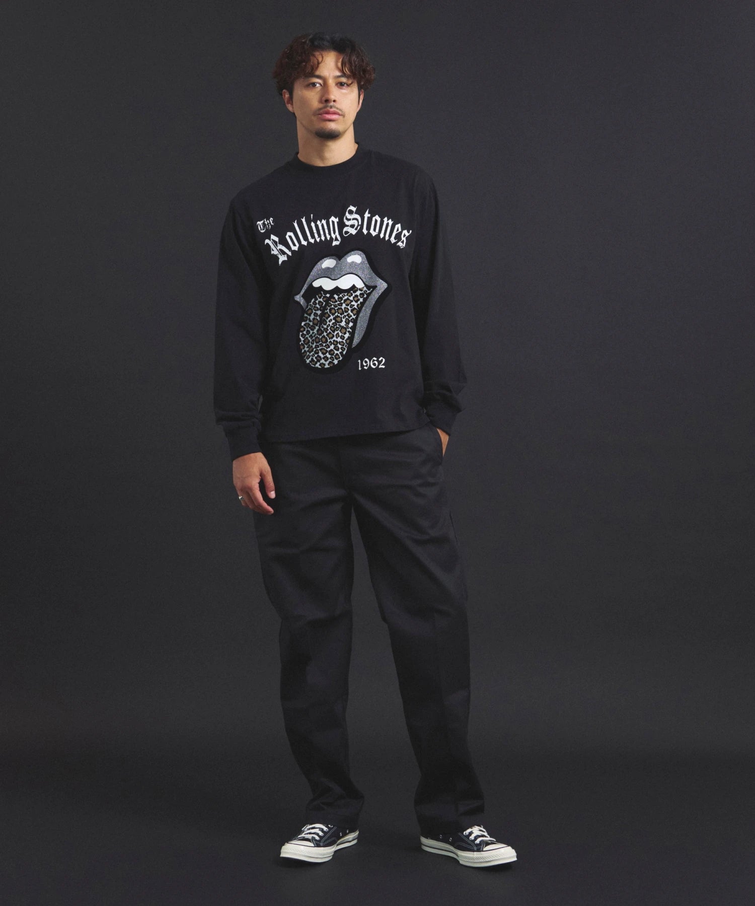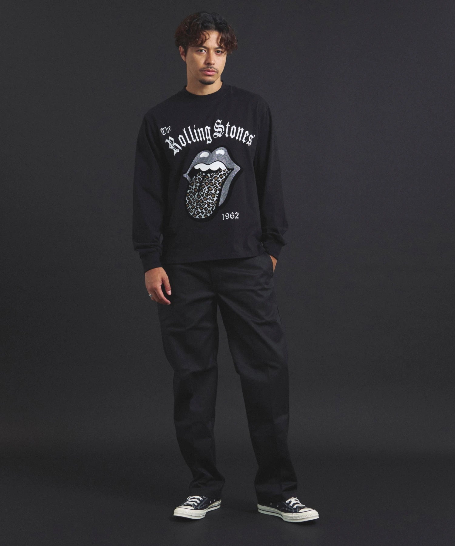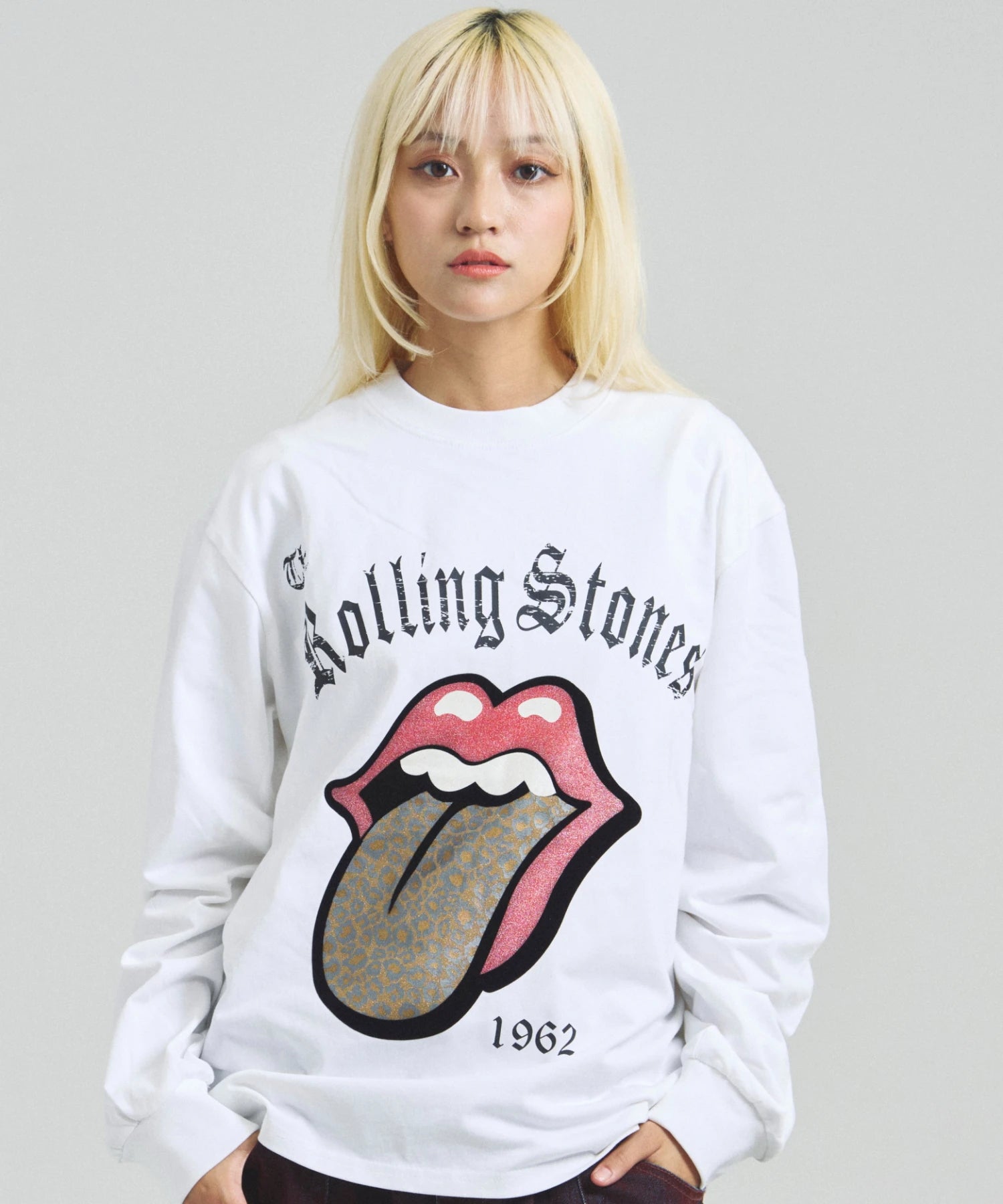 その他1・その他2[ラインストーン]フロントの「Lips & Tongue(リップス&タン)」ロゴを、きらめくラインストーンで表現。袖にはバンドのデビュー年「1962」のロゴをプリントし、ロックなムードを強調。