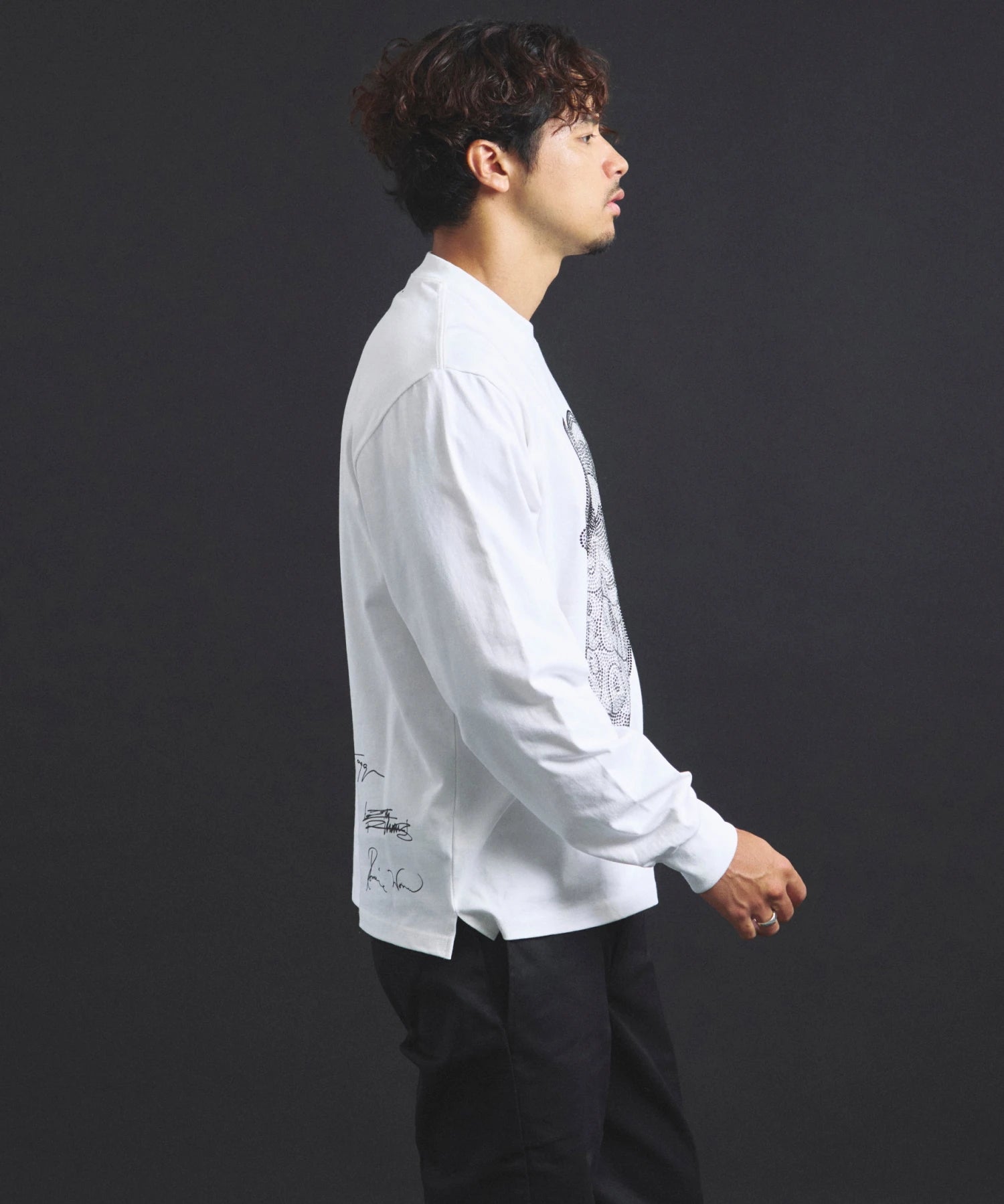 伝説のロックバンド「ローリング・ストーンズ」とJACKROSEのコラボレーションアイテム。フロントにはバンドの象徴「Lips&Tongue(リップス&タン)」のロゴを大胆に配置し、バックにはサインプリントを配置したクールなデザイン。