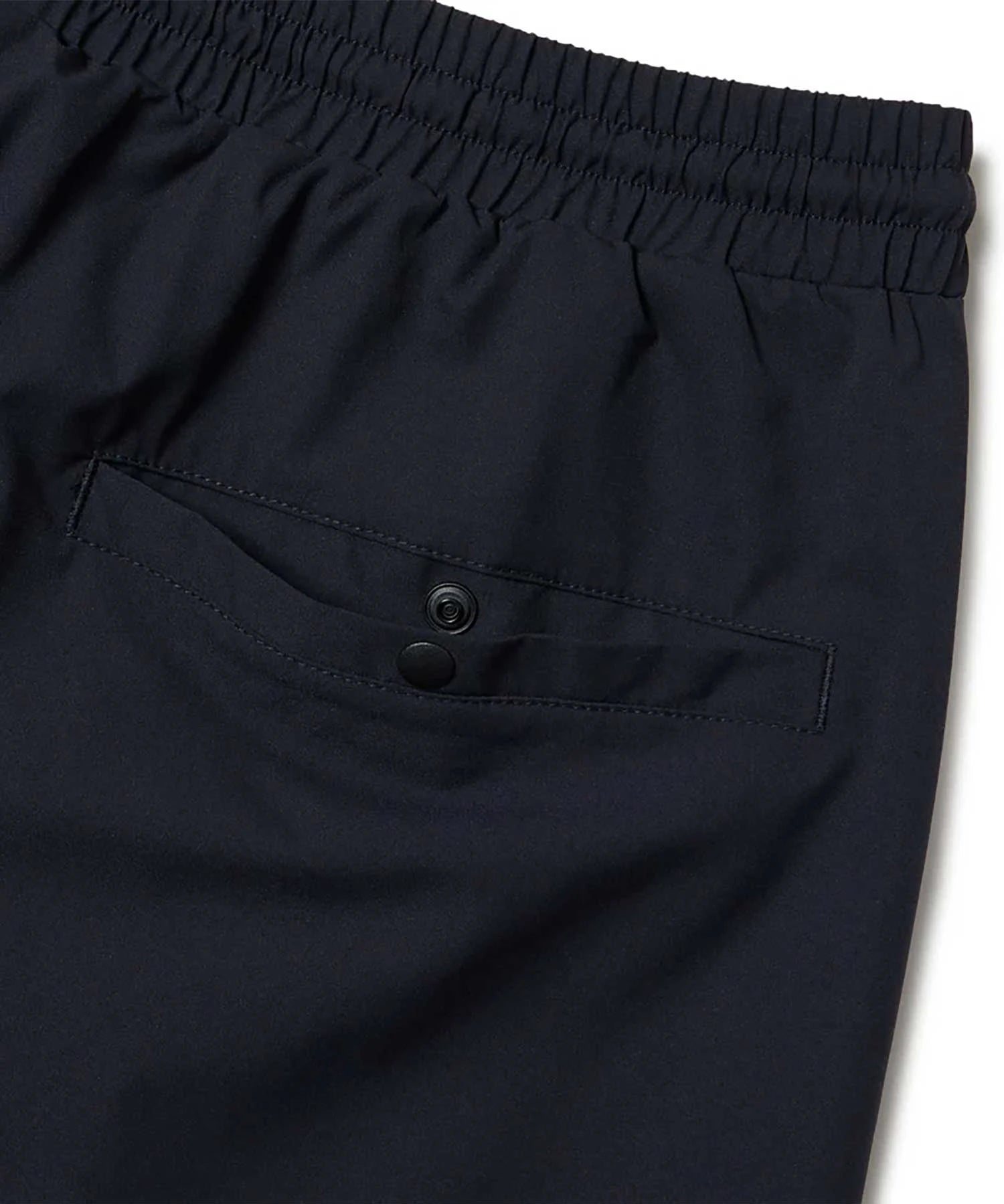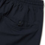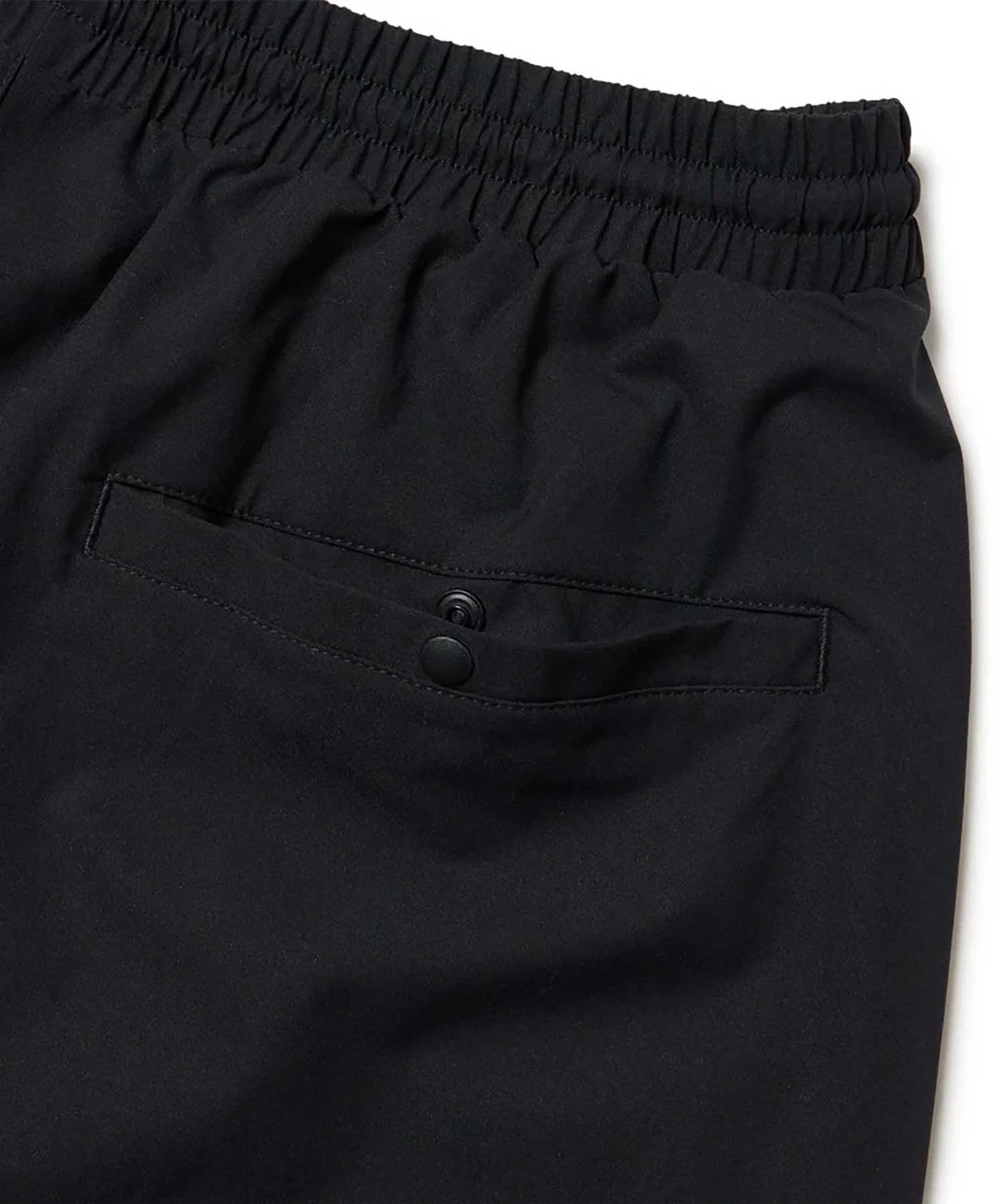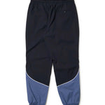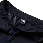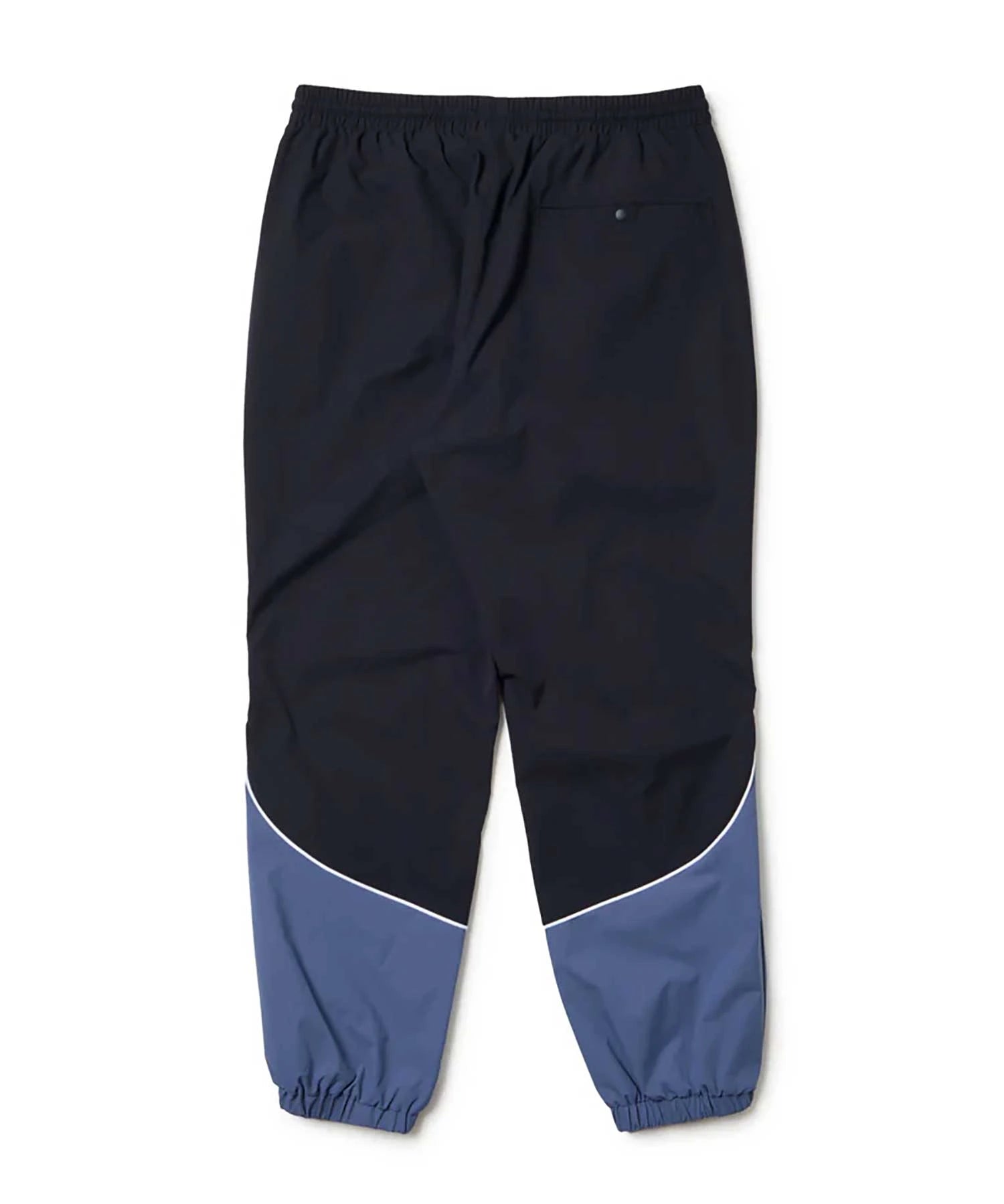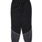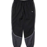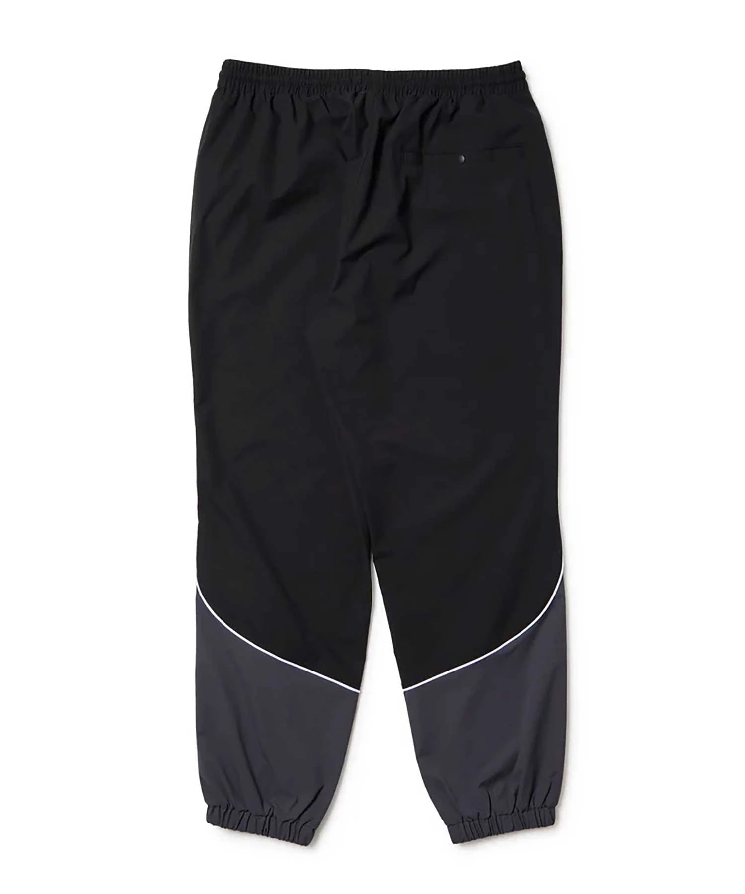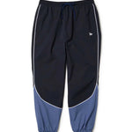 ゆとりのあるサイズ感のオーバーサイズシルエットで裾口はシャーリング仕様。ストレッチの効いたポリエステル素材で動きやすく軽やかな仕上がり。同系色の配色とパイピングデザインがスタイリッシュな印象。左腿にフラッグロゴをレイアウト。