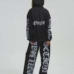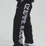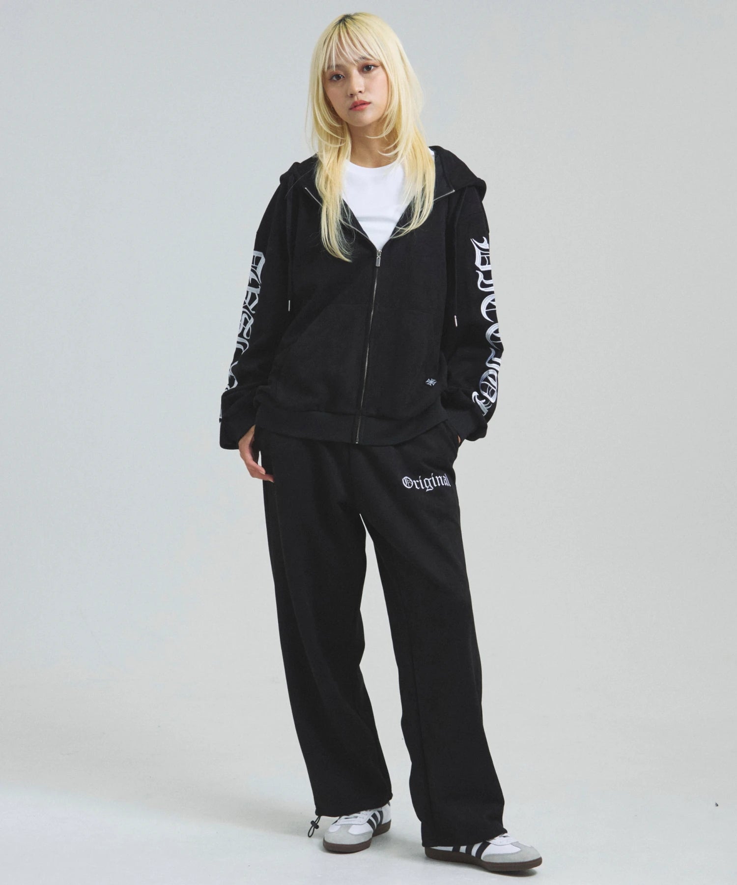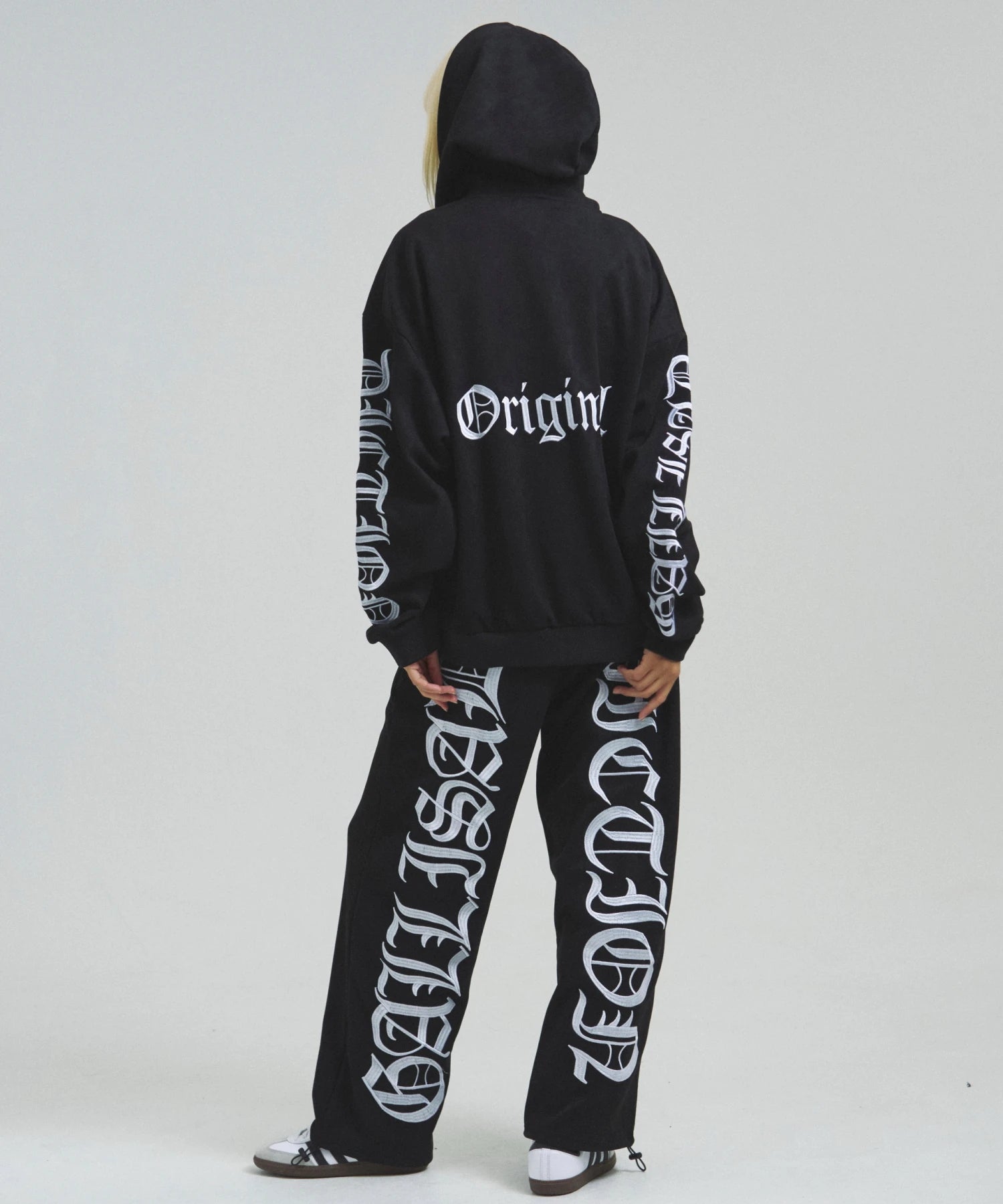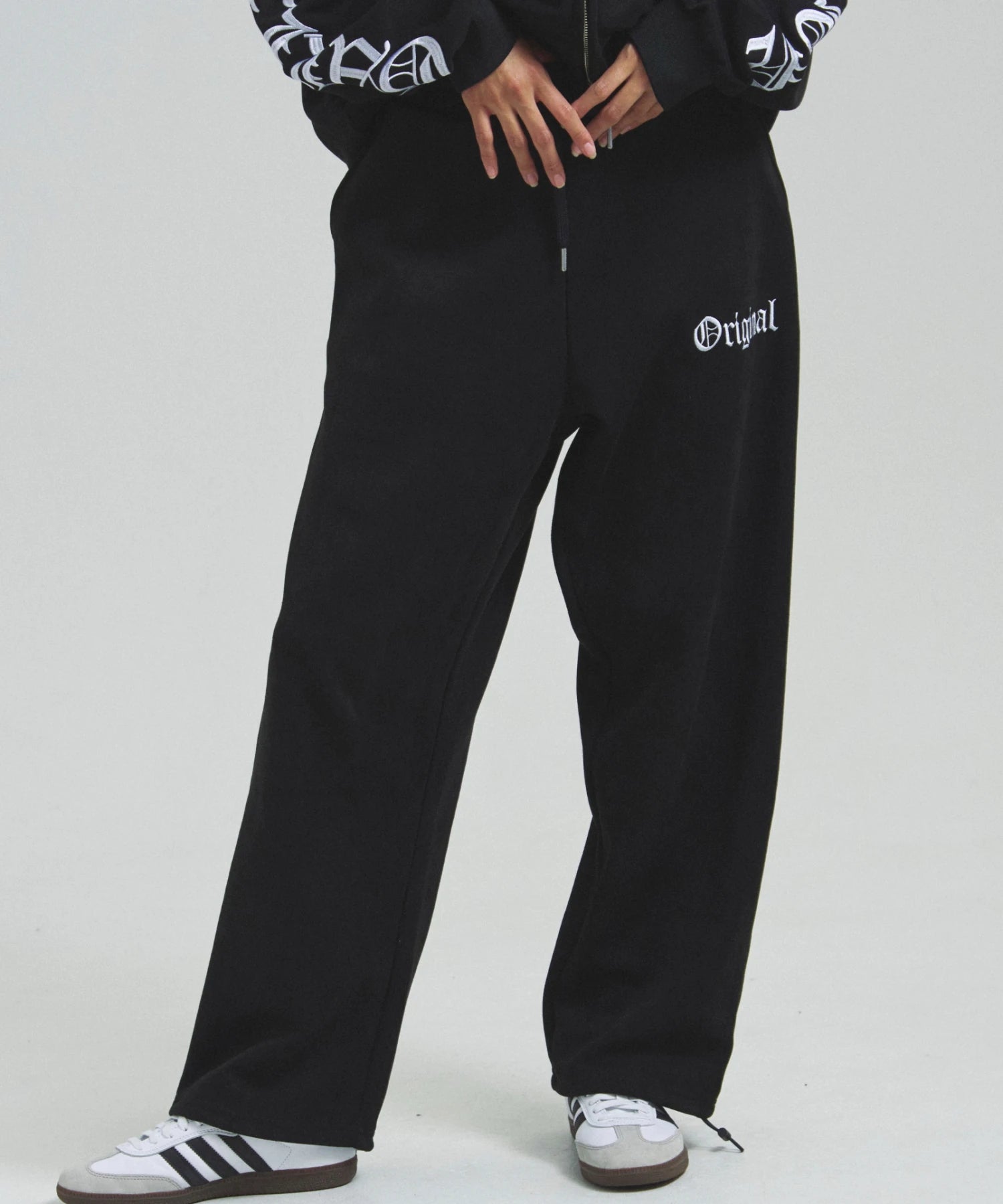 GALLIS ADDICTIONからバックに大きく入ったOLD ENGLISHロゴ刺繍が目を惹くスウェードライクパンツ。ゆったりとしたストレートシルエットで、抜け感のあるストリートスタイルを演出。同シリーズのZIP-HOODIEとセットアップでの着用も可能で、存在感抜群のコーディネートが完成します。