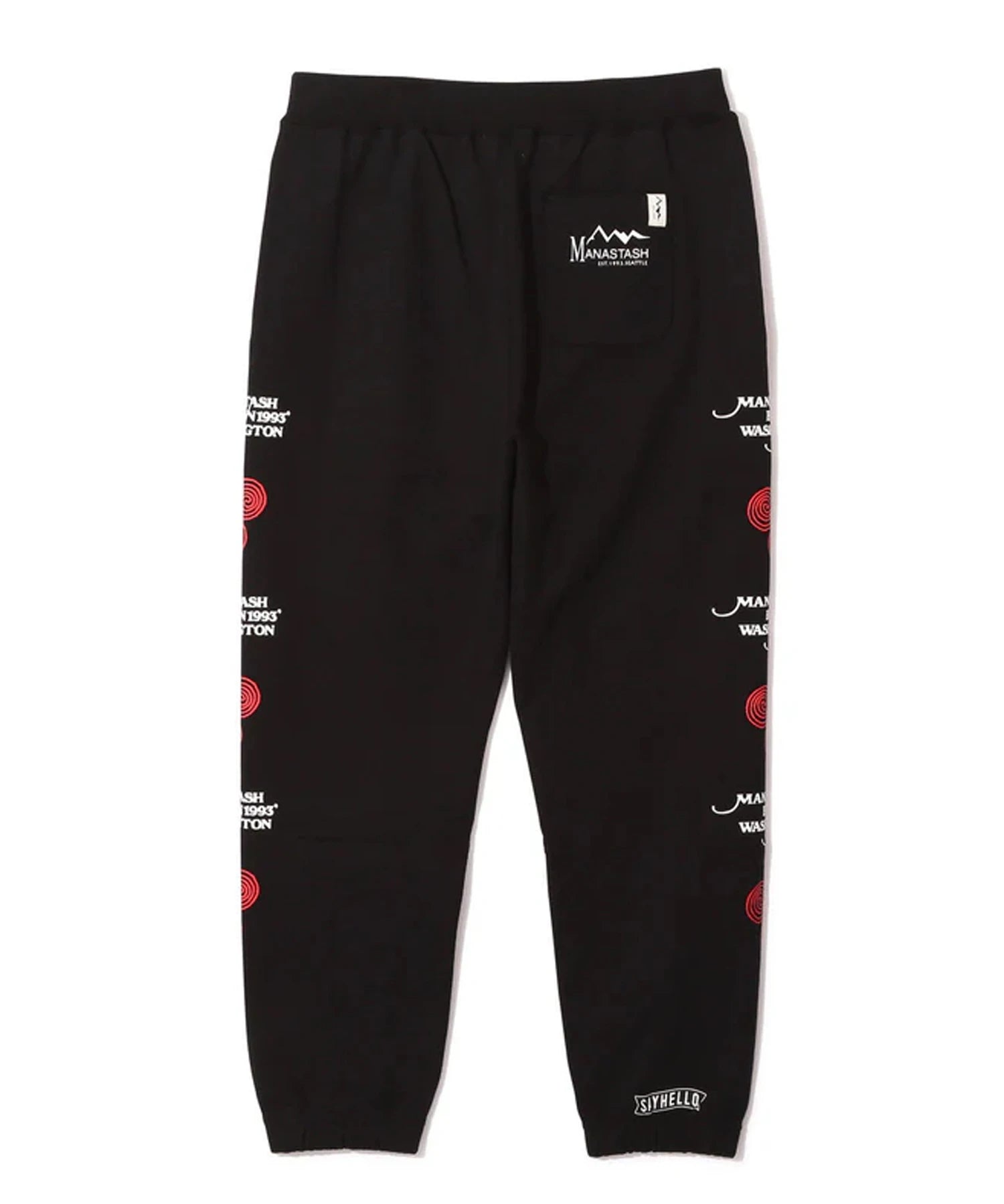 SAYHELLOでお馴染みのグラフィックにMANASTASHの要素を取り入れた特別仕様のスウェットパンツ。まるで80年代のスケートブランドを思わせるようなロゴが両サイドに6発プリントされ、ストリート感あふれる仕上がりになっています。さらに、右裾のバックにはSAYHELLOのBASIC LOGOをさりげなく配置。シンプルながらディテールにこだわり、コーディネートのアクセントとして存在感を放ちます。ストリートとアウトドアのテイストを融合させた、ここでしか手に入らないコラボレーションアイテムです。