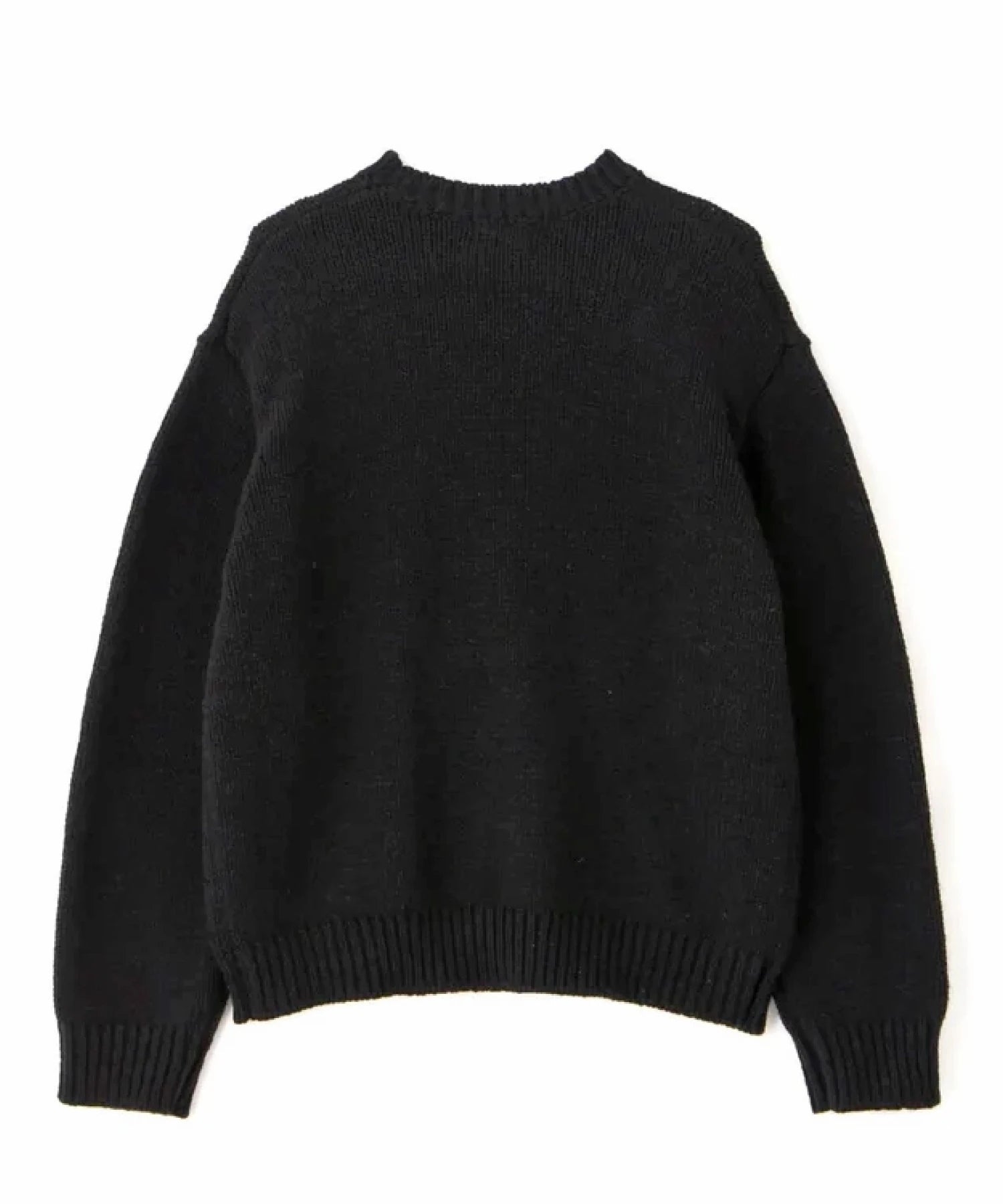 ウール混の糸を使用したローゲージニット。緩い編地を生かして大きめのサイジングにしているため、ゆったりと着用いただけます。