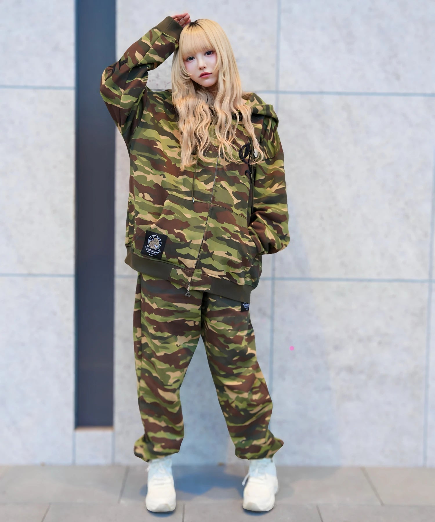 同シリーズのボトムスと合わせたセットアップ着用もおすすめ。