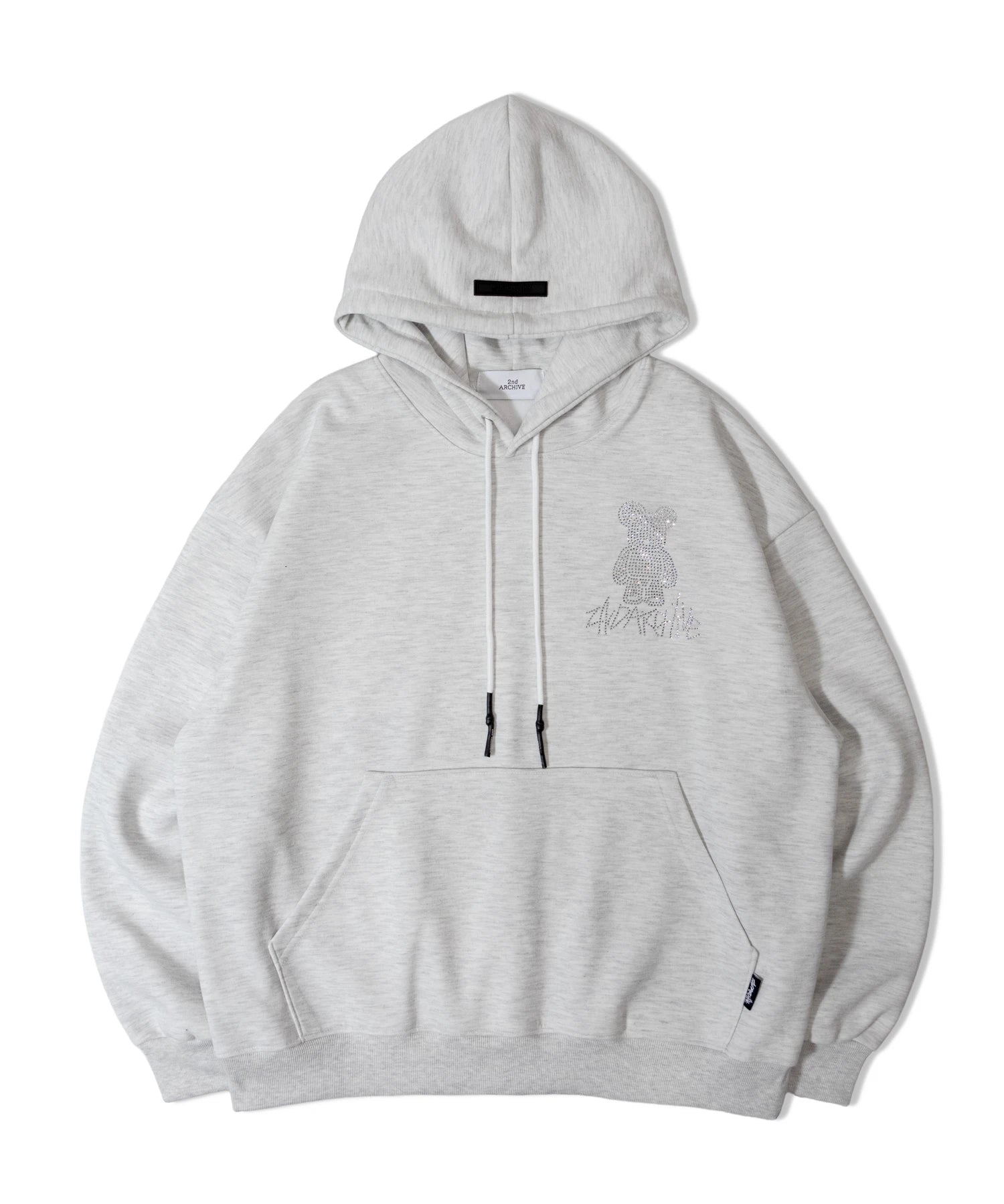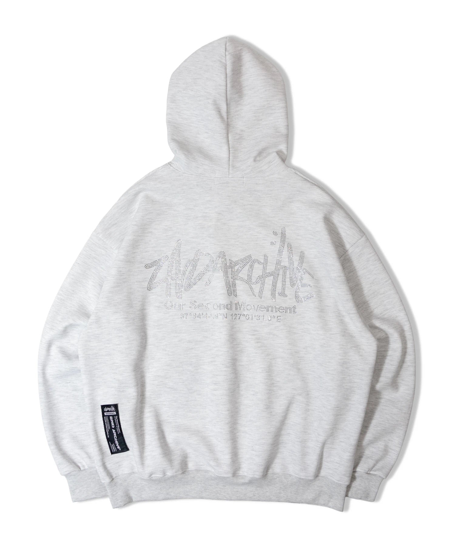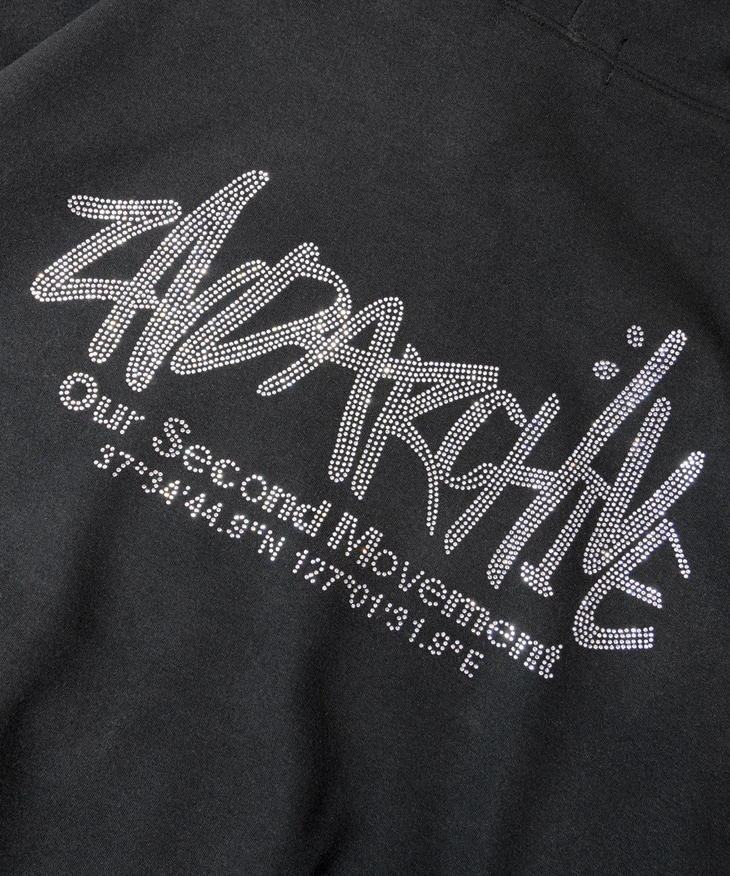 韓国発ストリートブランド〈2ND ARCHIVE〉が手がける、グラフィックと素材にこだわったハイクオリティな一着。大胆なモチーフとラインストーンのアクセントが、ストリートに煌めきを添えるプルオーバーパーカー。ボディには、ポリエステル×コットンのヘビーウェイト天竺を使用。綾織りの表情とスパン糸によるストレッチ性が、快適な着心地と高い耐久性を実現します。肩を落としたドロップショルダーに、ゆったりとしたビッグシルエット。ルーズな着こなしが楽しめるユニセックス仕様