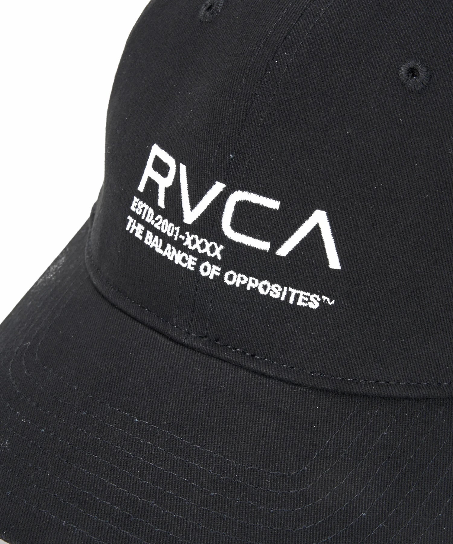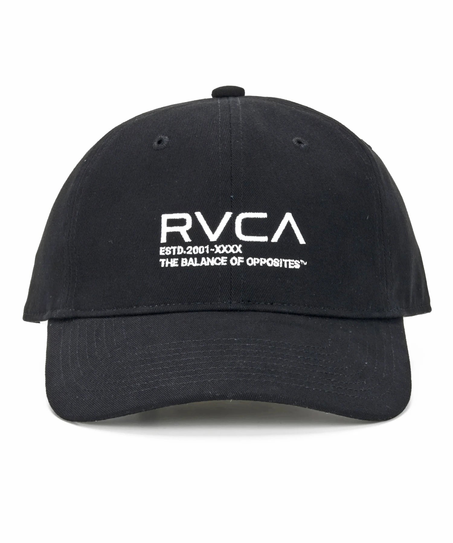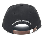 フロントにはRVCAロゴと「THE BALANCE OF OPPOSITES」のメッセージ刺繍が施され、ブランドの世界観を力強く表現しています。頭の形に自然にフィットする丸みのあるフォルムと、あらかじめカーブさせたバイザーが、快適な被り心地と洗練されたシルエットを両立。後頭部にはレザー調のベルトを配し、簡単にサイズ調整が可能です。
