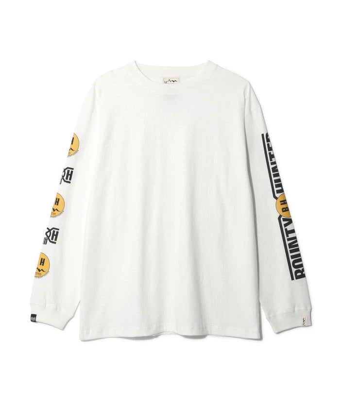 MANASTASH × BOUNTY HUNTER コラボロングスリーブTシャツストリートとカルチャーが交差する、唯一無二のグラフィック。BOUNTY HUNTERとのスペシャルコラボレーションによって誕生した、存在感抜群のロングスリーブTシャツ。スケートやバンドTEEを彷彿とさせるグラフィックは、両袖に大胆に配置された今コレクション限定のコラボロゴが主役。首元の裏側にも両ブランドのロゴをさりげなくあしらい、細部まで抜かりない仕上がりに。素材には、綿空紡績糸を使用。ドライな質感とラフな風合いが、ストリートスタイルに絶妙な抜け感をプラスします。デザインだけでなく、着心地にもこだわった一枚です。