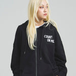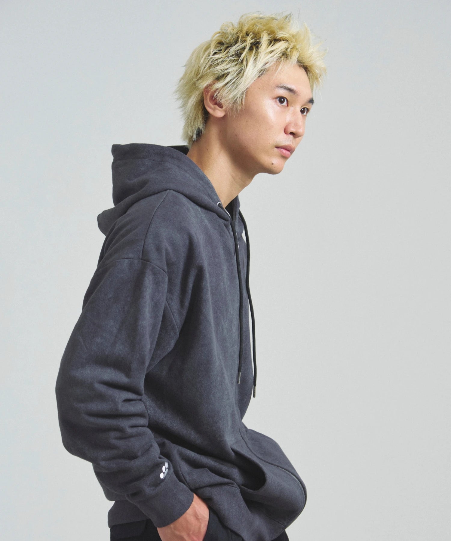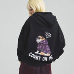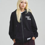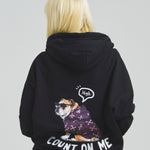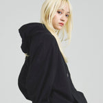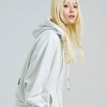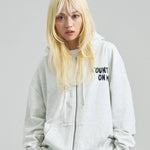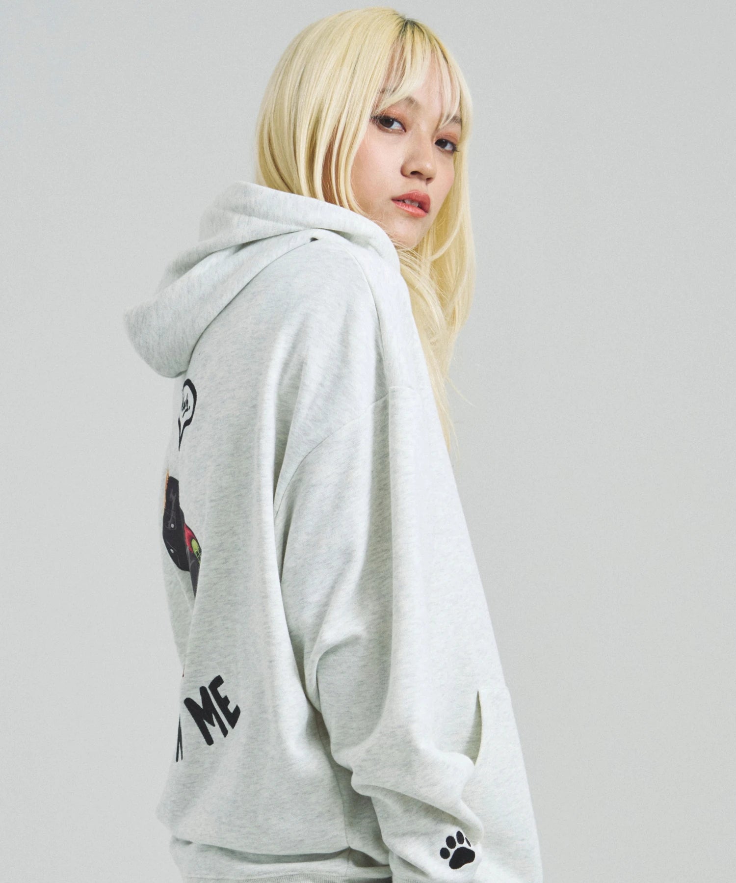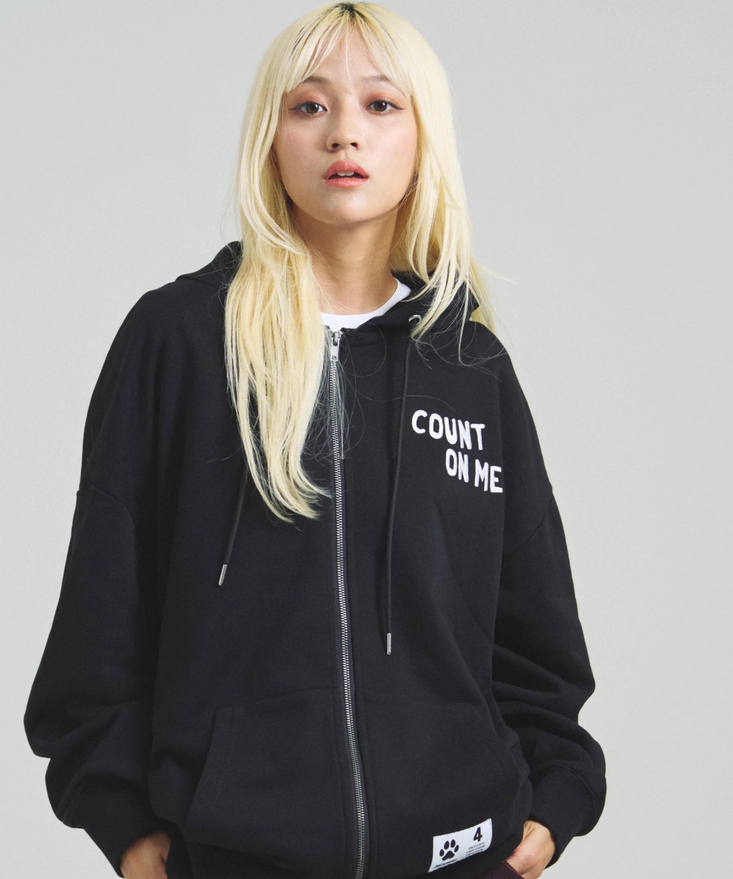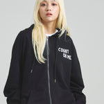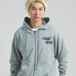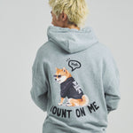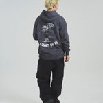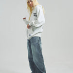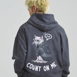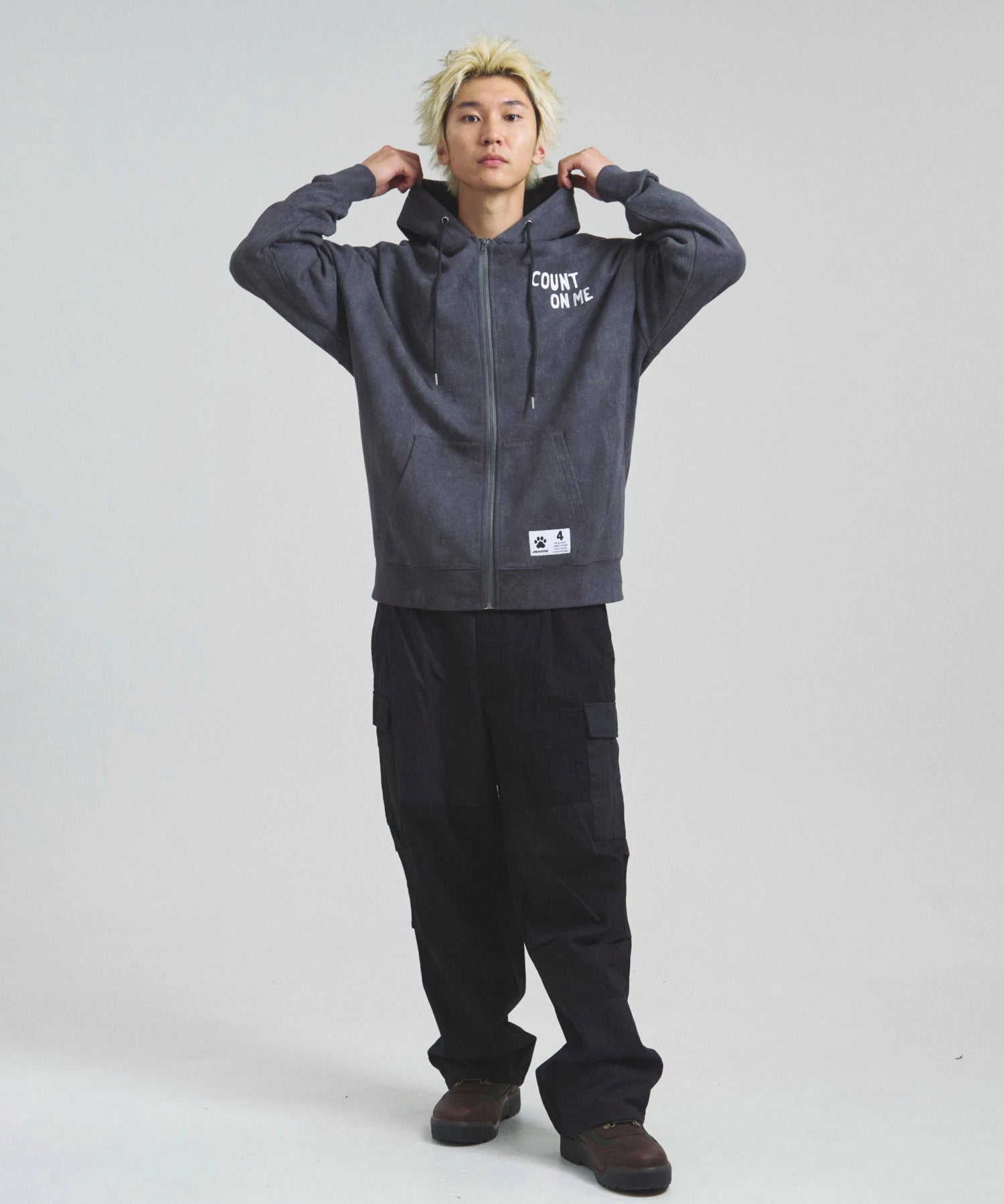 愛らしい犬と猫のグラフィックをあしらったジップパーカー。胸にはシンプルなロゴ刺繍を、背面にはユーモアのある大判グラフィックを施し、存在感抜群の仕上がりになっています。