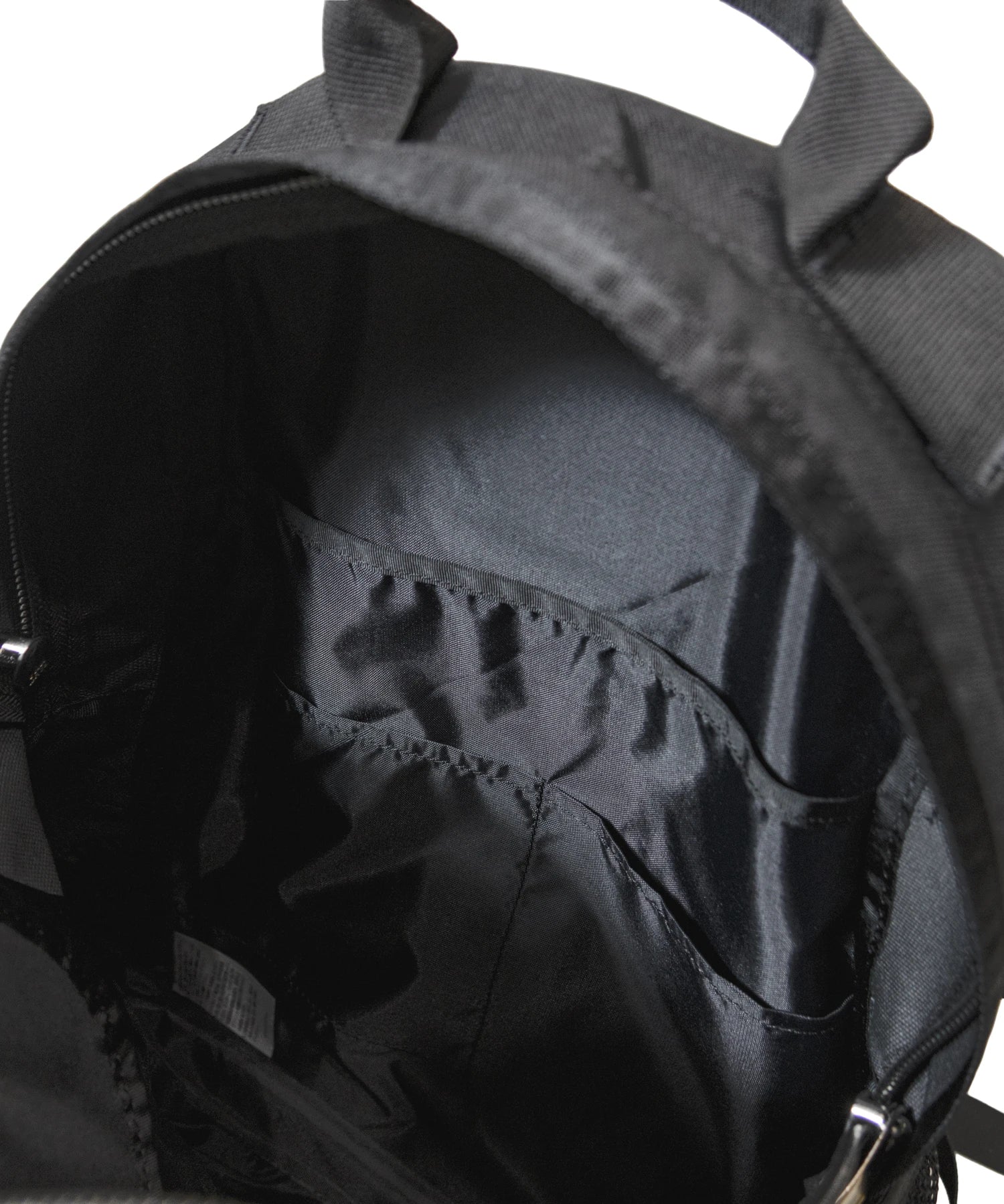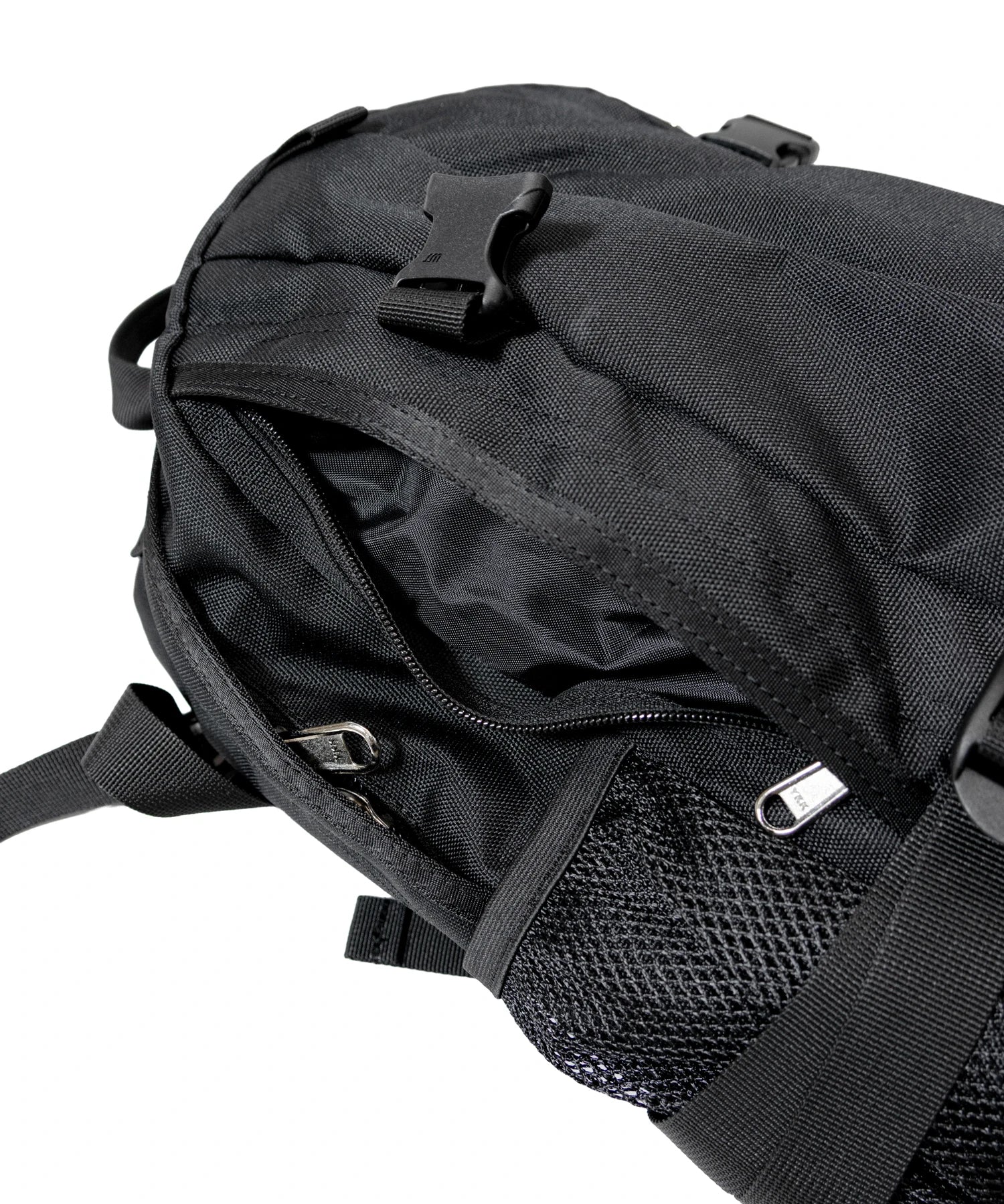 耐摩耗性・耐久性に優れた「CORDURA® POLYESTER」素材を採用。約18Lの程よいサイズ感で、通勤・通学からアウトドアシーンまで幅広く活躍します。立体的なメインコンパートメントは、日常必需品やタブレット端末、軽めの衣類などをすっきり収納可能。フロントポケットは頻繁に取り出す小物類の整理に便利で、内側にはオーガナイザーポケットを装備。両サイドにはドリンクや折り畳み傘を収納できるオープンポケット付き。さらに、荷物量に応じて調整できるサイドコンプレッションベルトを採用し、型崩れを防ぎます。背面とショルダーベルトには肉厚パッドを搭載し、長時間の使用でも快適な背負い心地を実現。ユニセックスで使えるシンプルなデザインなのと、マットな質感がカジュアルからシティユースまでスタイルを問わず馴染みます。