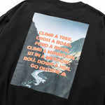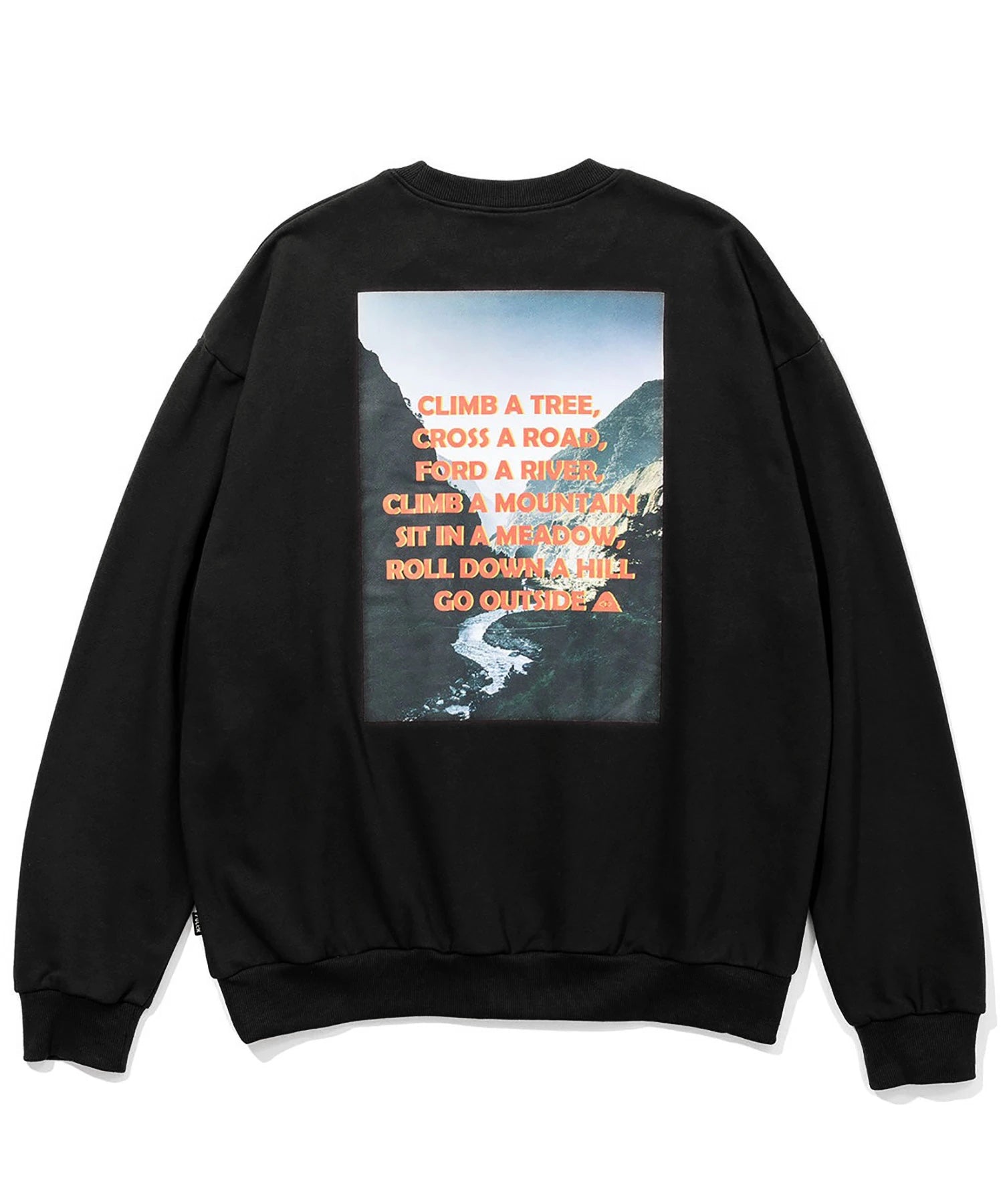 雄大な自然を切り取ったフォトの上に象徴的なメッセージを落とし込んだフレンチテリーボディのクルースウェット。フロントにも刺繍でメッセージが落とし込まれており存在感満点の仕上がりで、お気に入りのパンツと合わせるだけでスタイリングがバッチリ決まります。