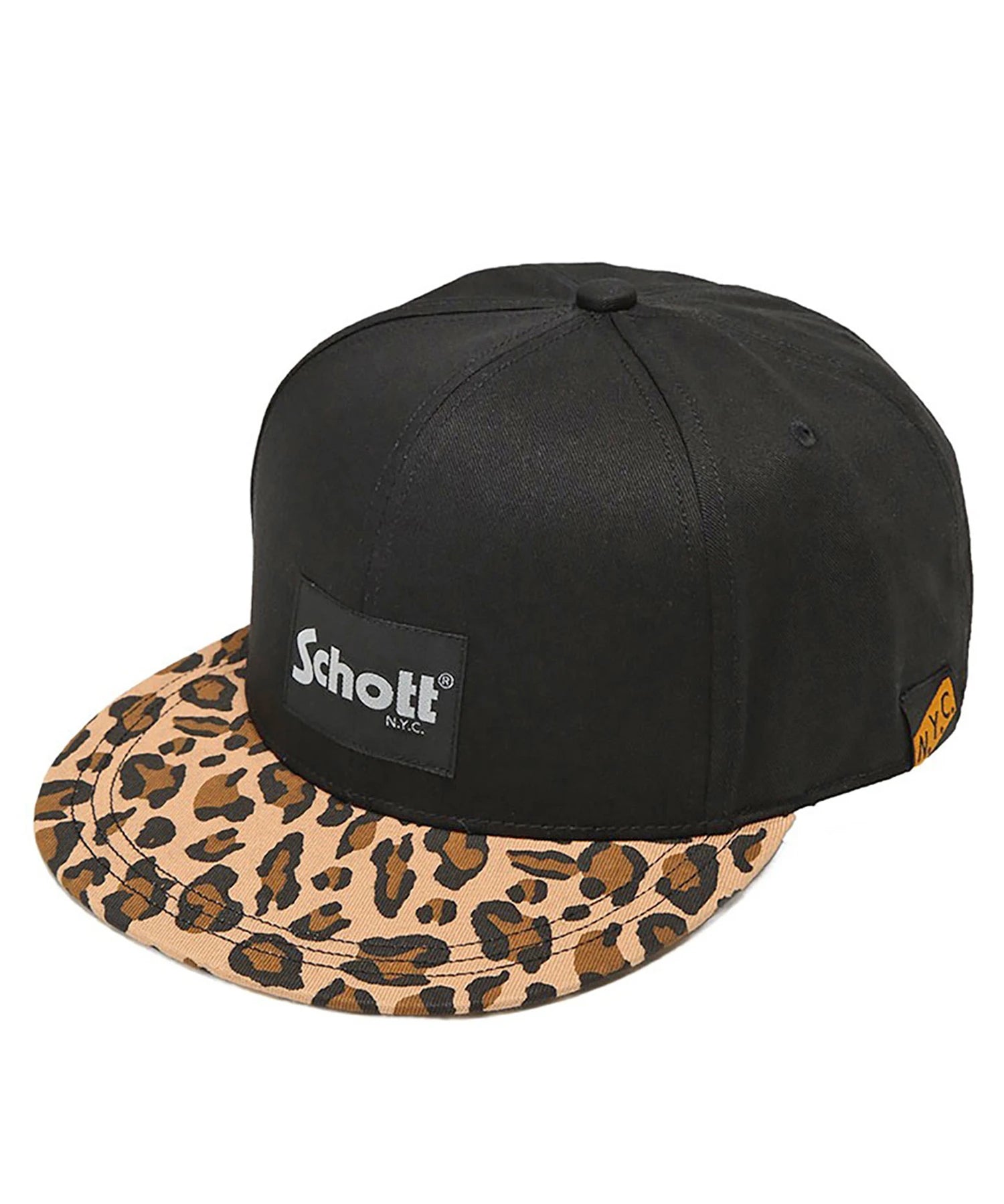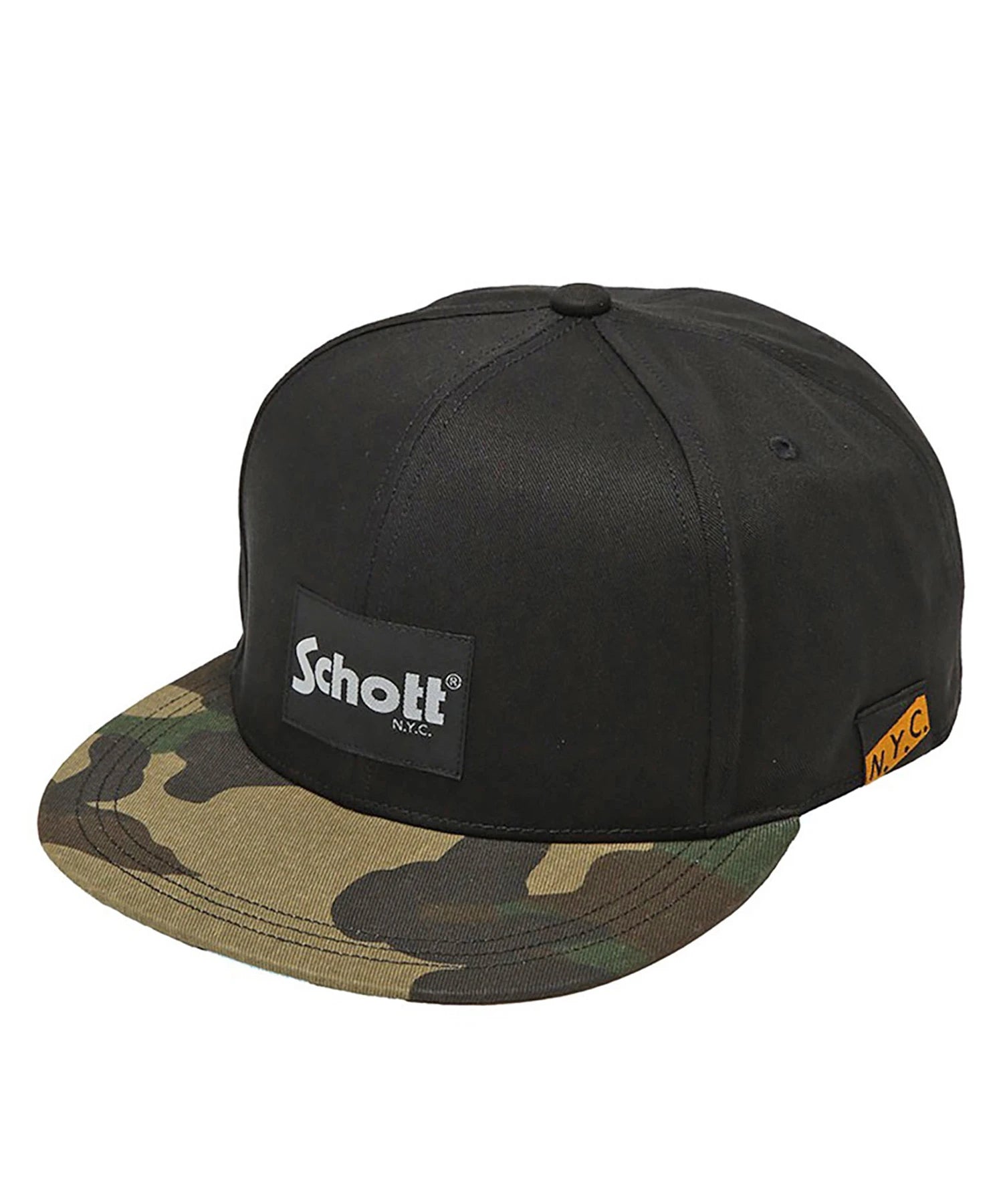 フロントにブランドロゴを配置した、存在感のあるSchottのフラットブリムキャップ。