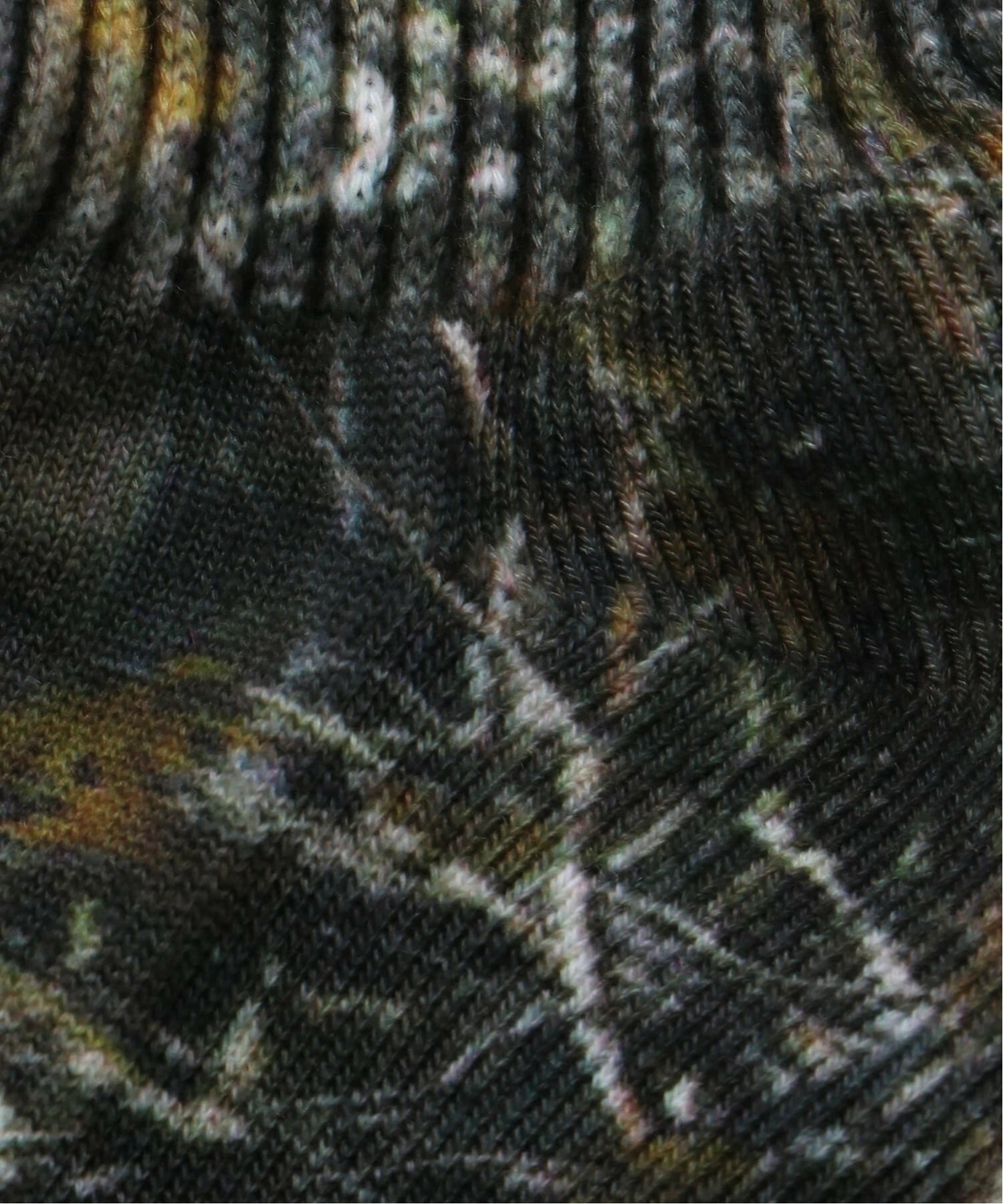 独創的なリアルツリーのグラフィックプリントを落とし込んだ、足元のアクセントとして存在感を放つ一本。ソックスを活かしたスタイリングにも取り入れやすく、足元のレパートリーを広げてくれるアイテムです。