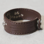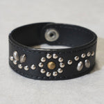 PUレザーにスタッズをあしらった、ワーク&ストリートテイストのスタッズブレスレット。