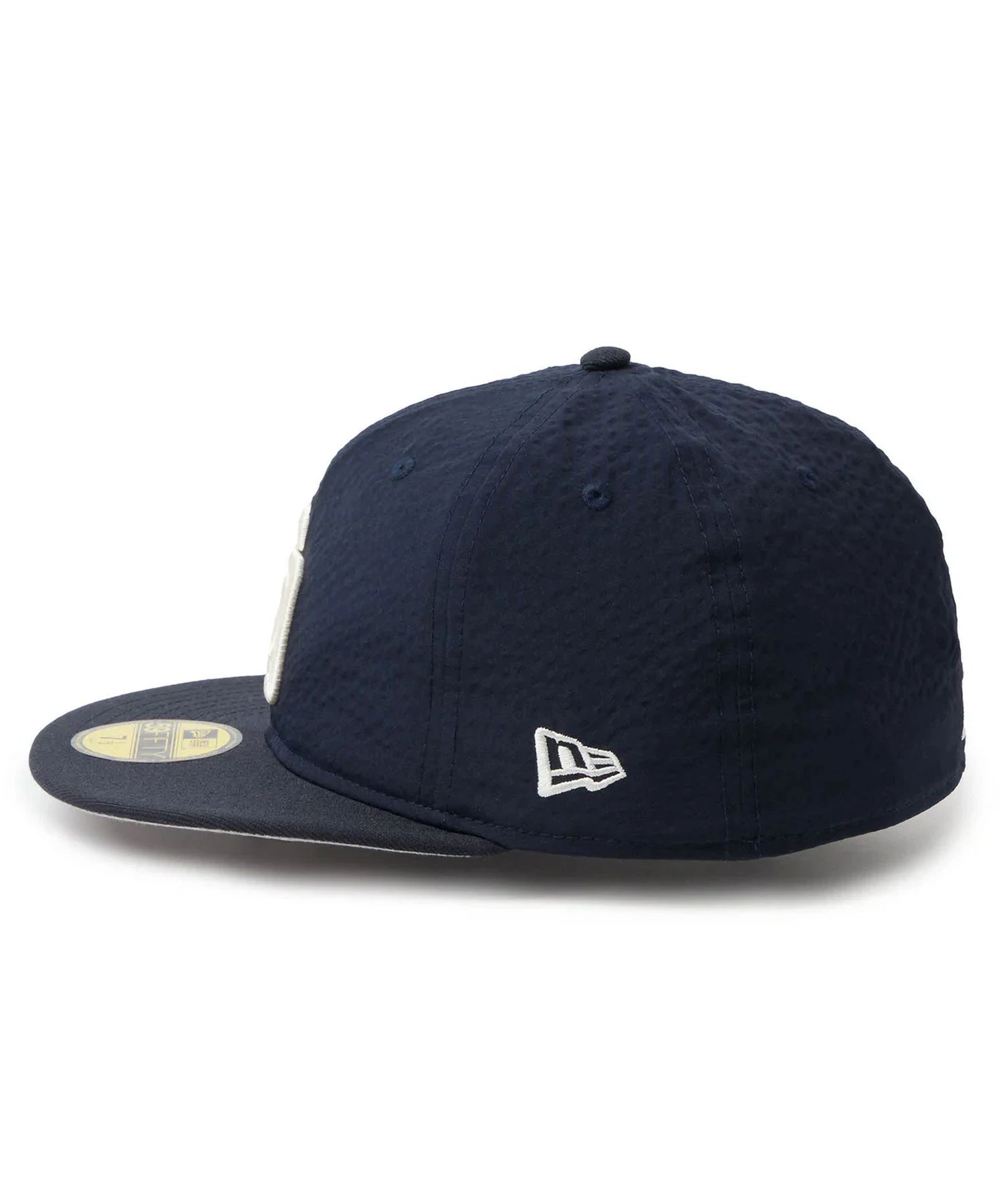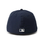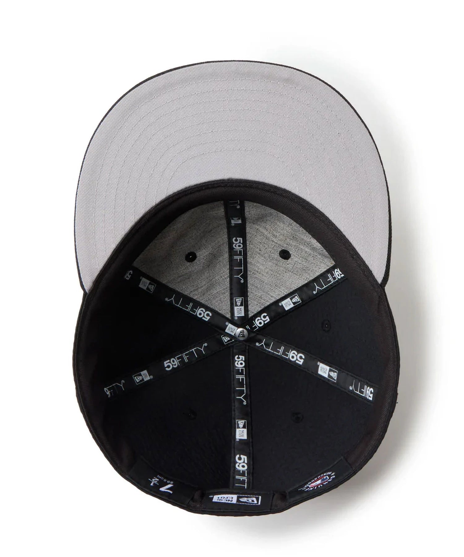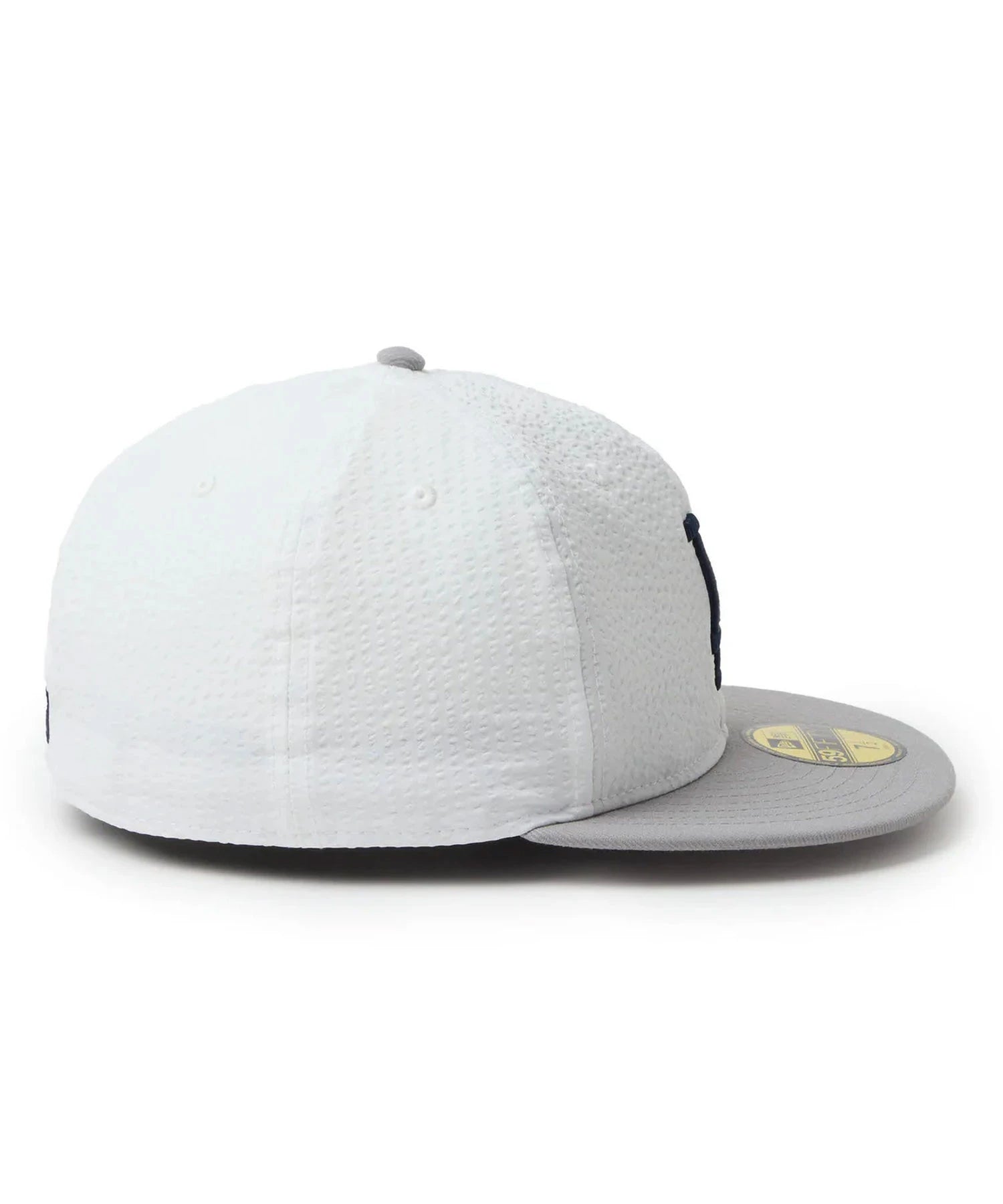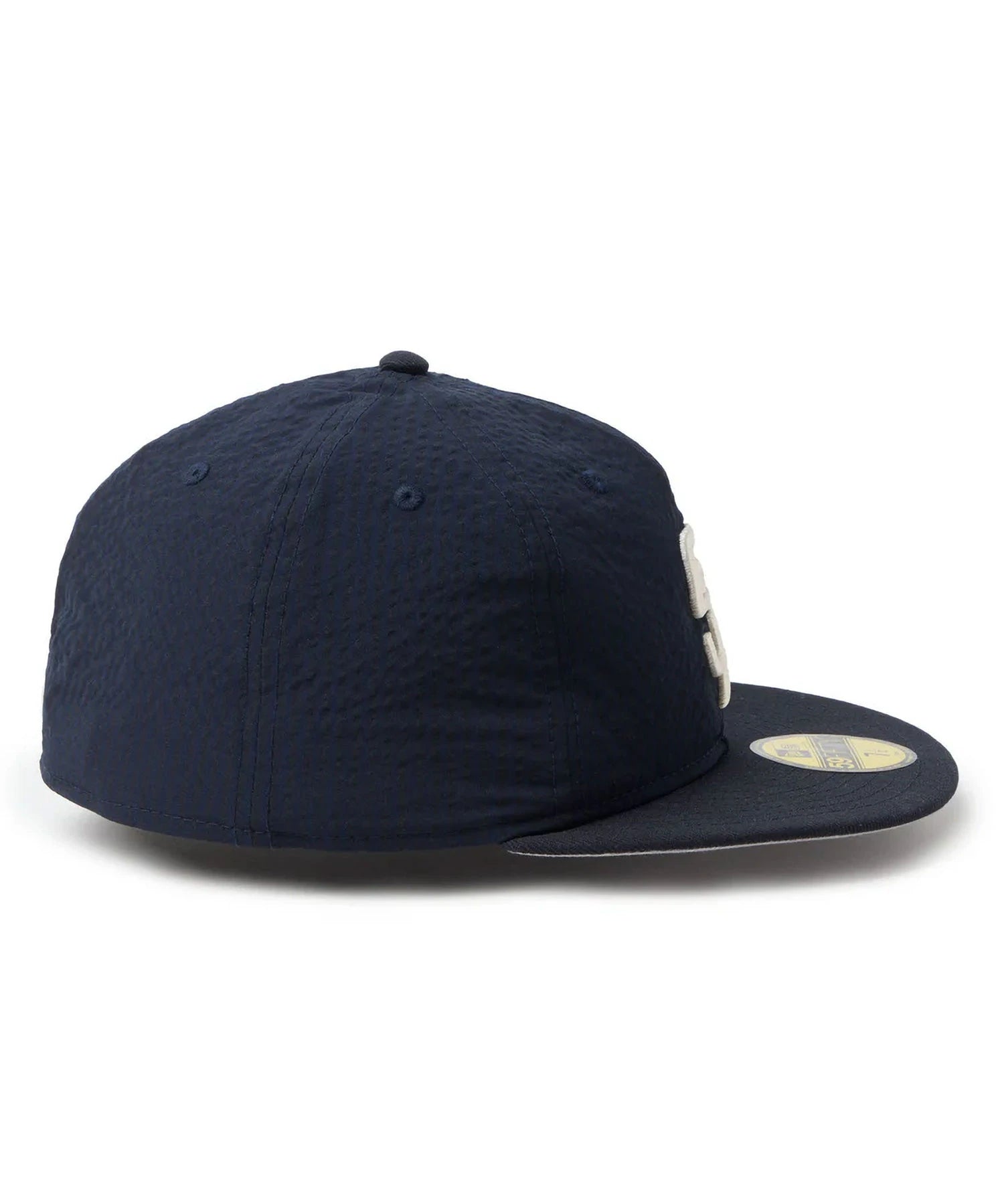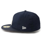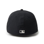 シルエットはフロントパネル内側の芯を取り除いたソフトバックラム仕様の59FIFTY。柔らかい被り心地です。サイズ調整のない仕様で、約1cm刻みのサイズ展開。頭の小さい方から大きな方まで、ジャストサイズで被ることができます。また、アジャスターがないので、リアのシルエットが美しく、頭の形が綺麗に見えます。