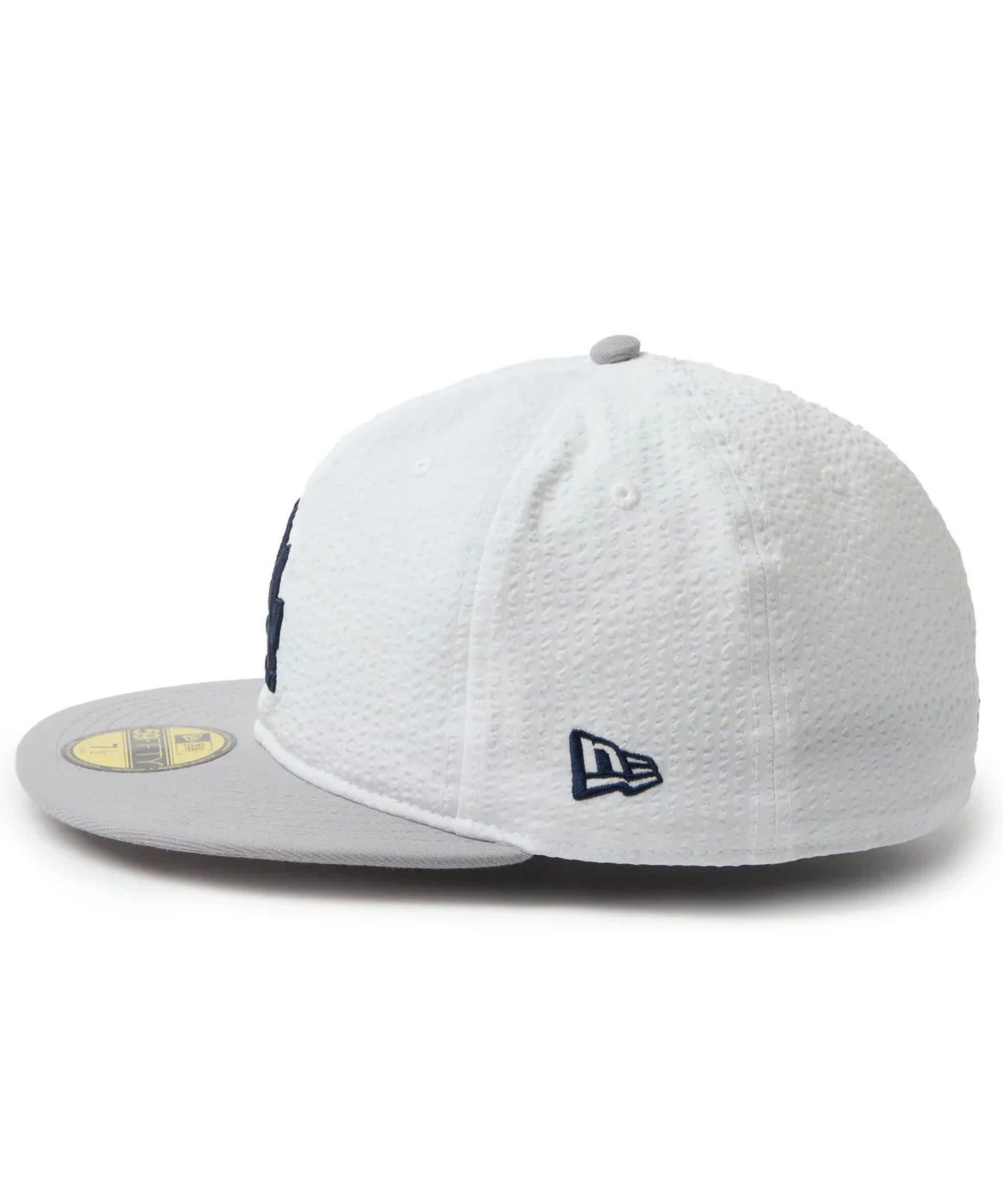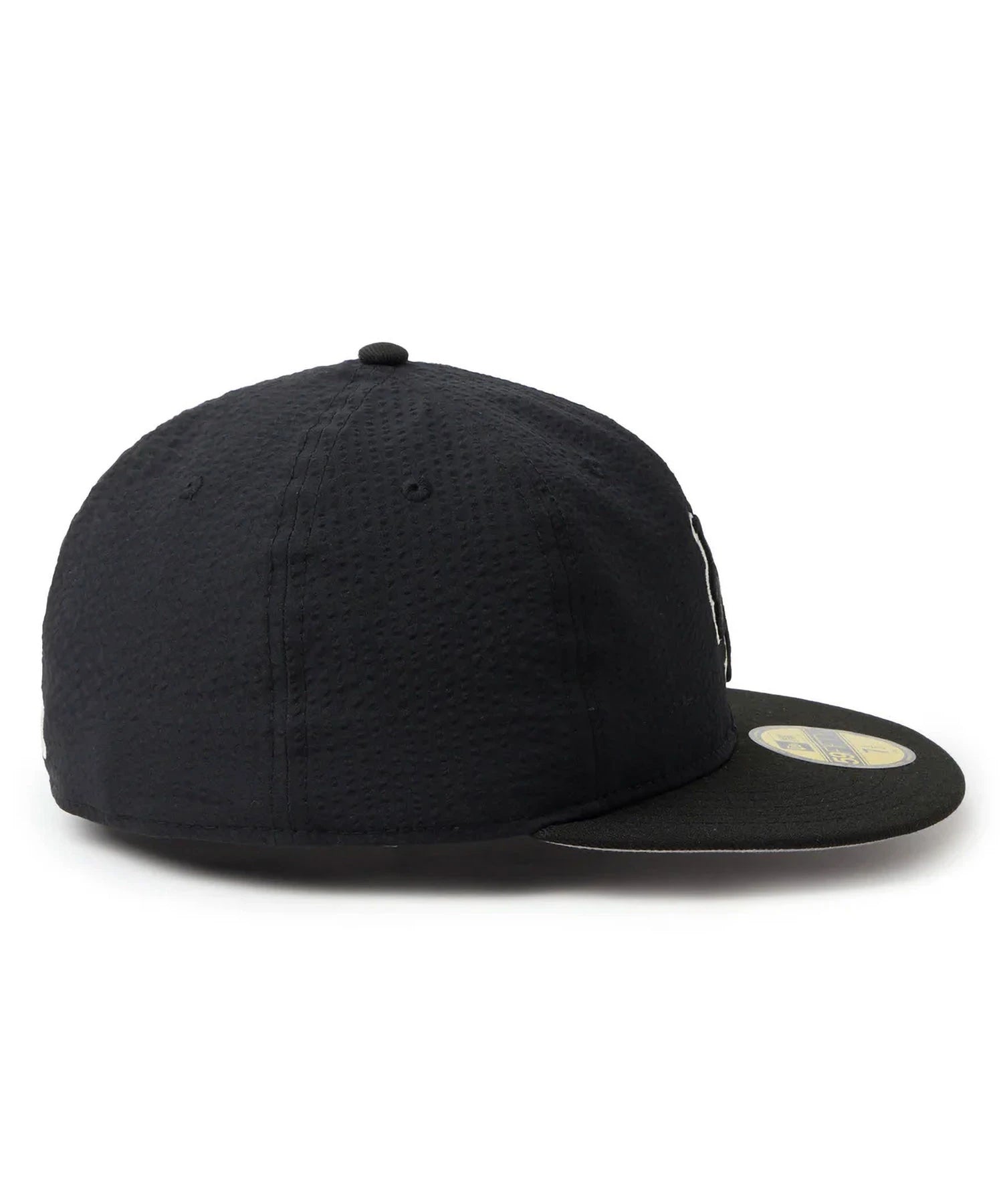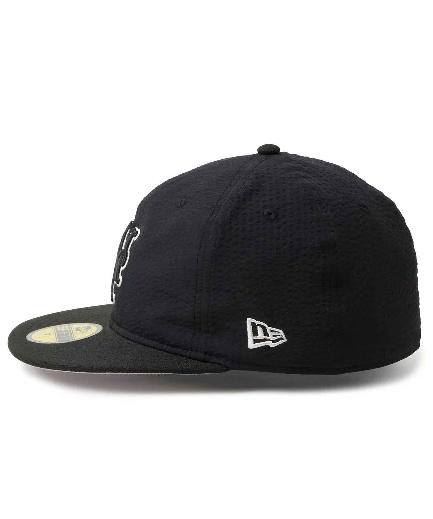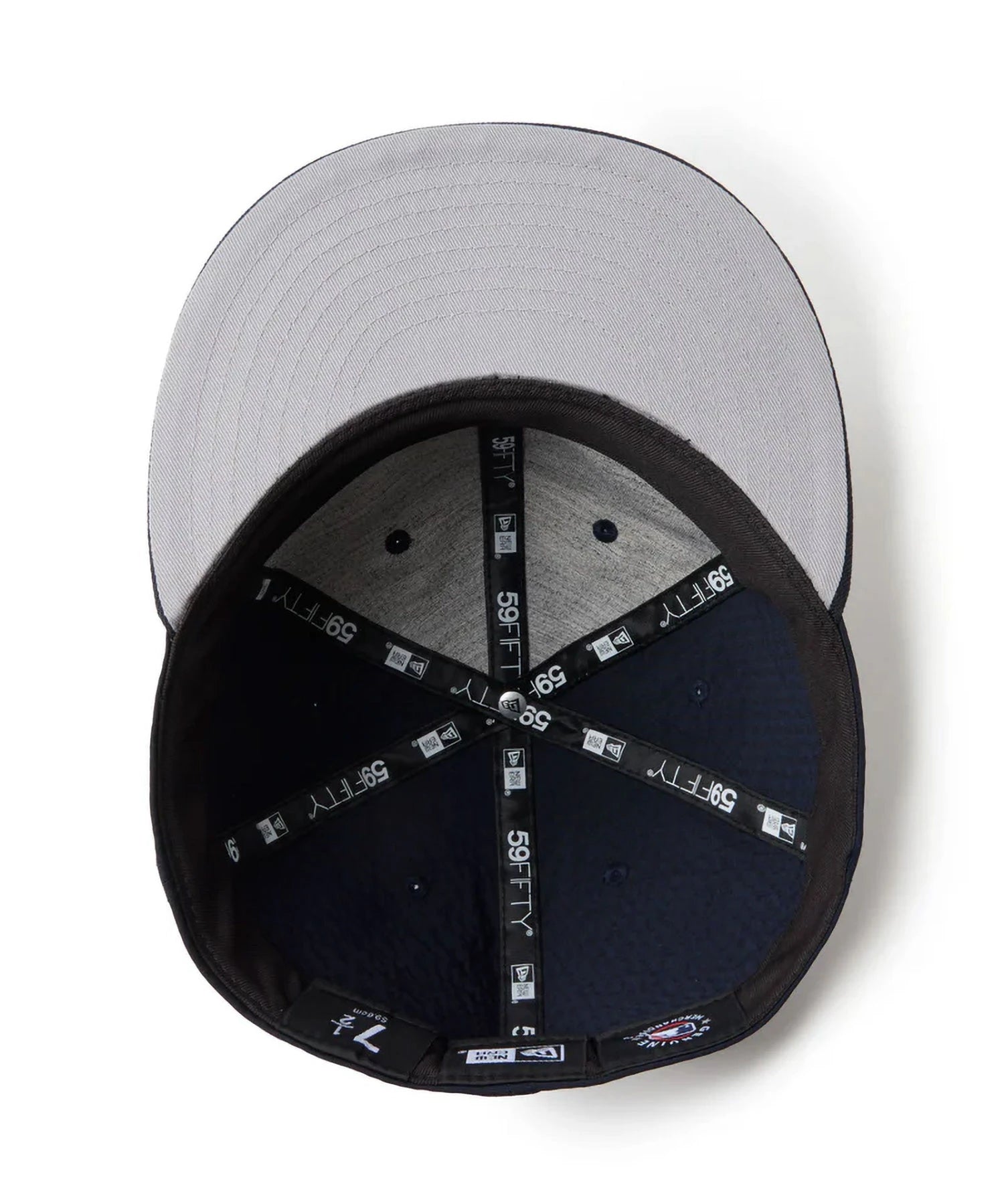 シルエットはフロントパネル内側の芯を取り除いたソフトバックラム仕様の59FIFTY。柔らかい被り心地です。サイズ調整のない仕様で、約1cm刻みのサイズ展開。頭の小さい方から大きな方まで、ジャストサイズで被ることができます。また、アジャスターがないので、リアのシルエットが美しく、頭の形が綺麗に見えます。