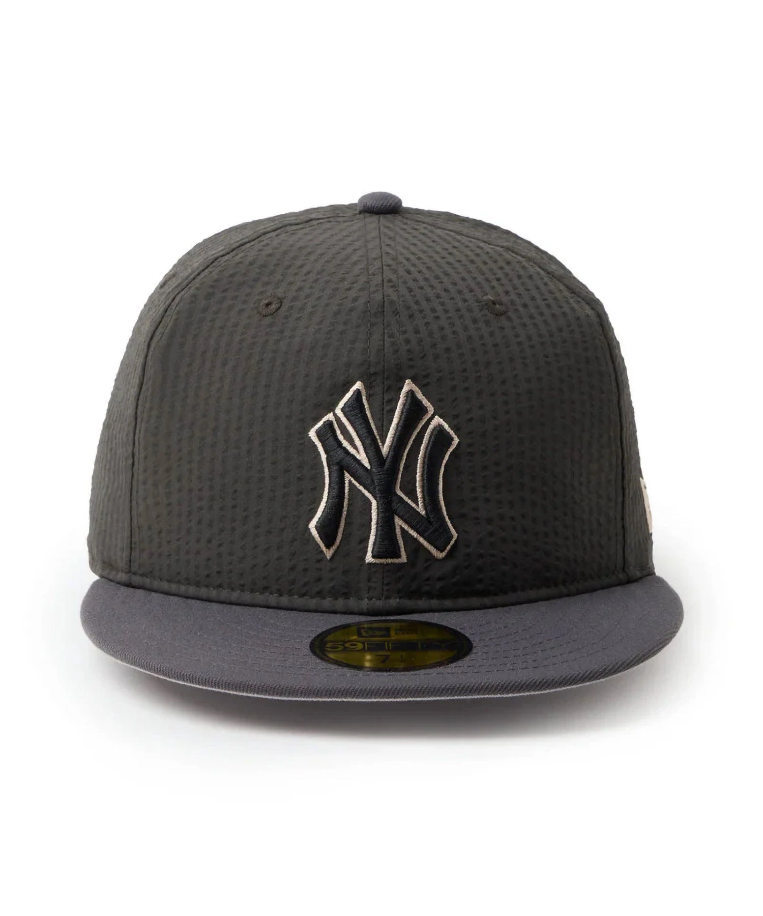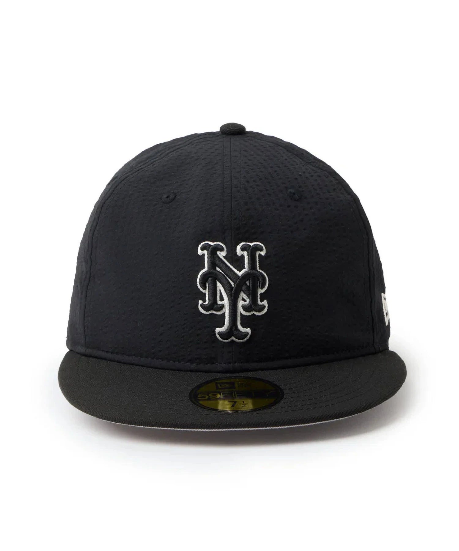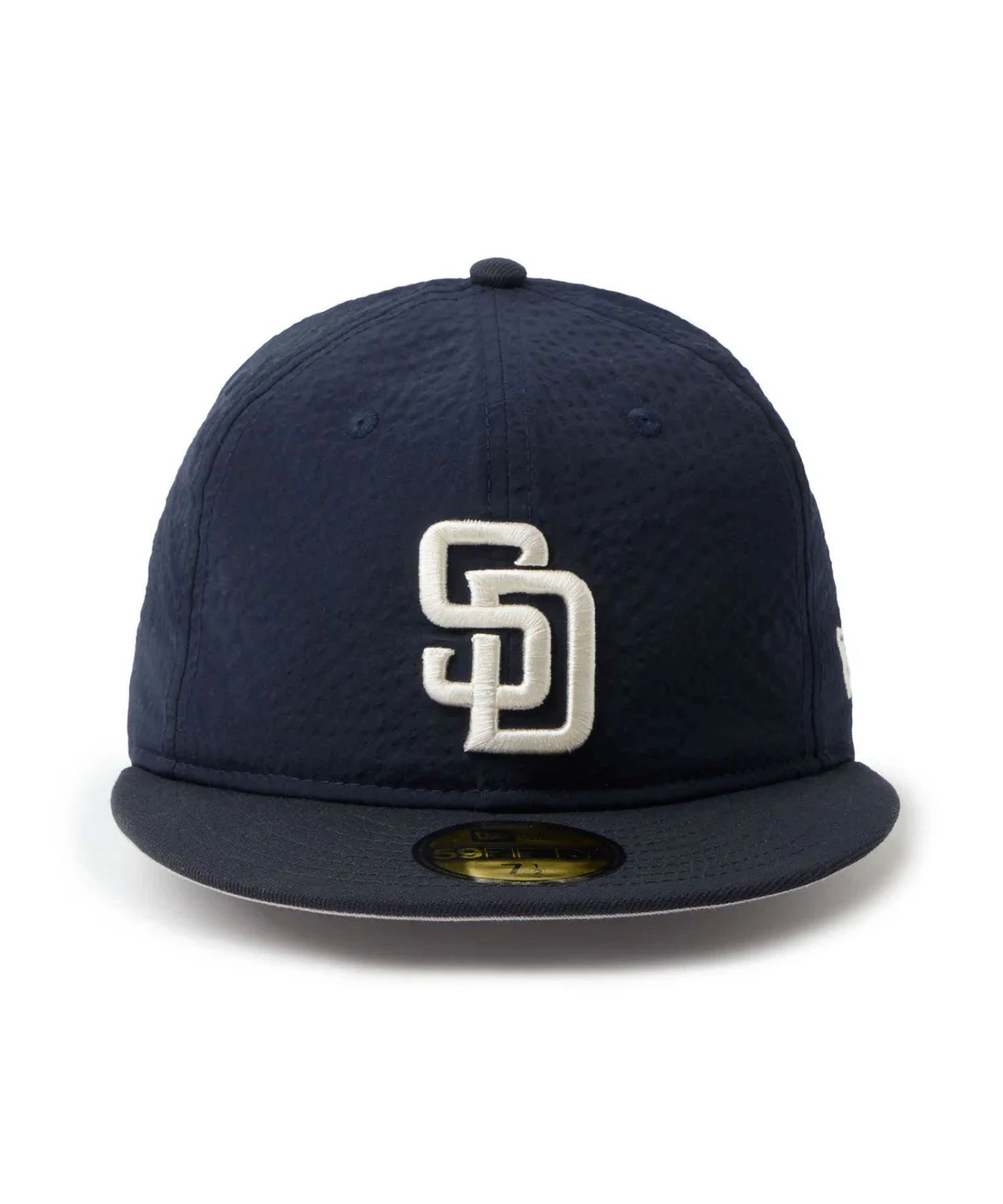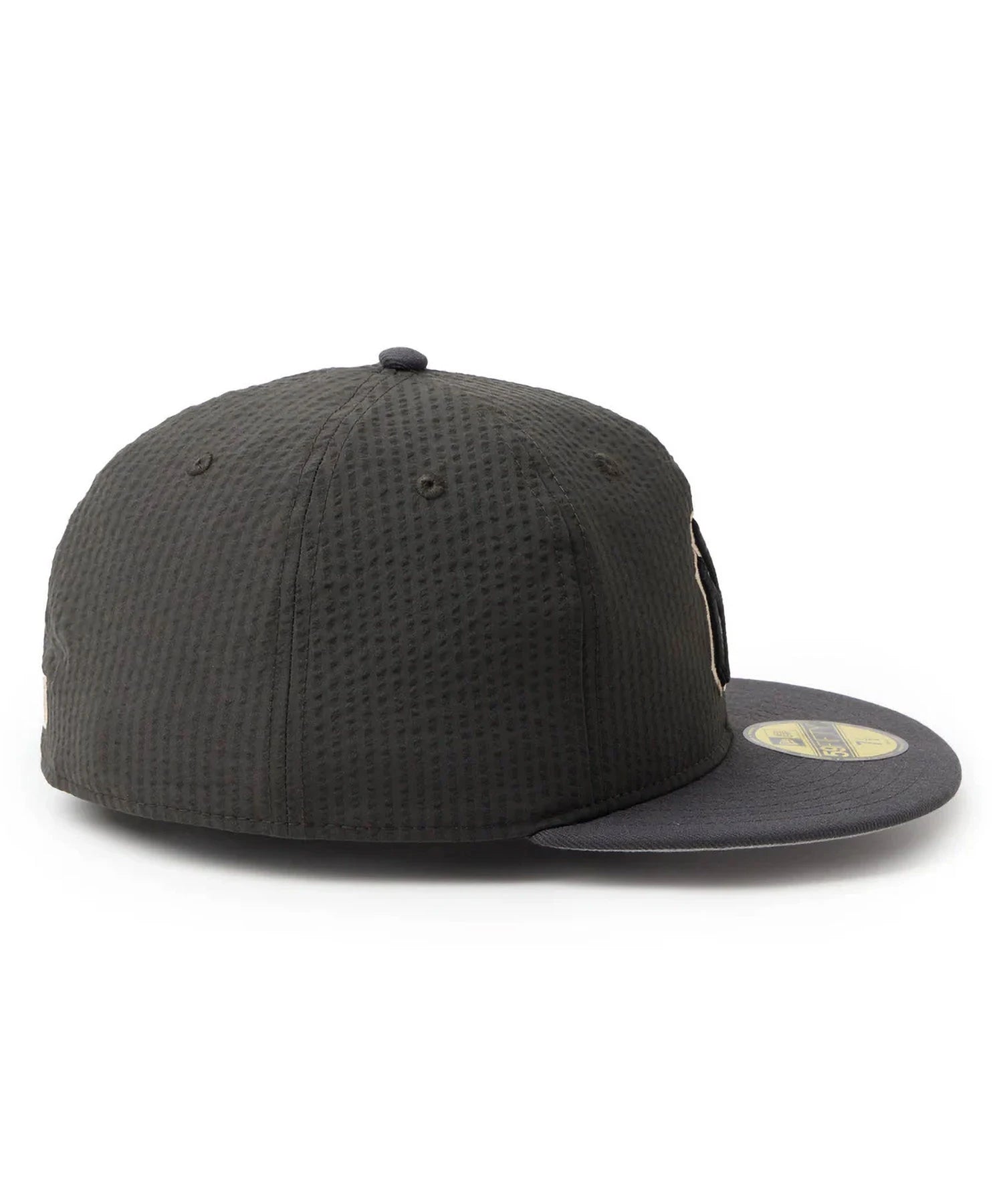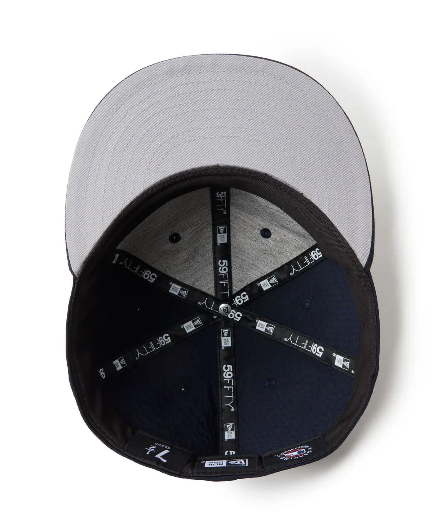 シルエットはフロントパネル内側の芯を取り除いたソフトバックラム仕様の59FIFTY。柔らかい被り心地です。サイズ調整のない仕様で、約1cm刻みのサイズ展開。頭の小さい方から大きな方まで、ジャストサイズで被ることができます。また、アジャスターがないので、リアのシルエットが美しく、頭の形が綺麗に見えます。