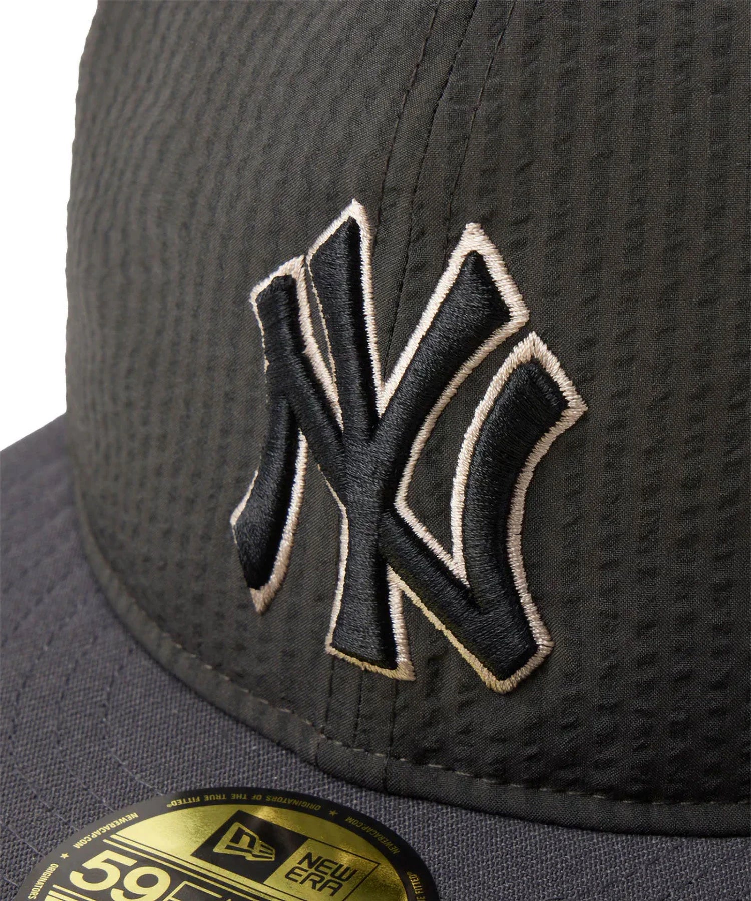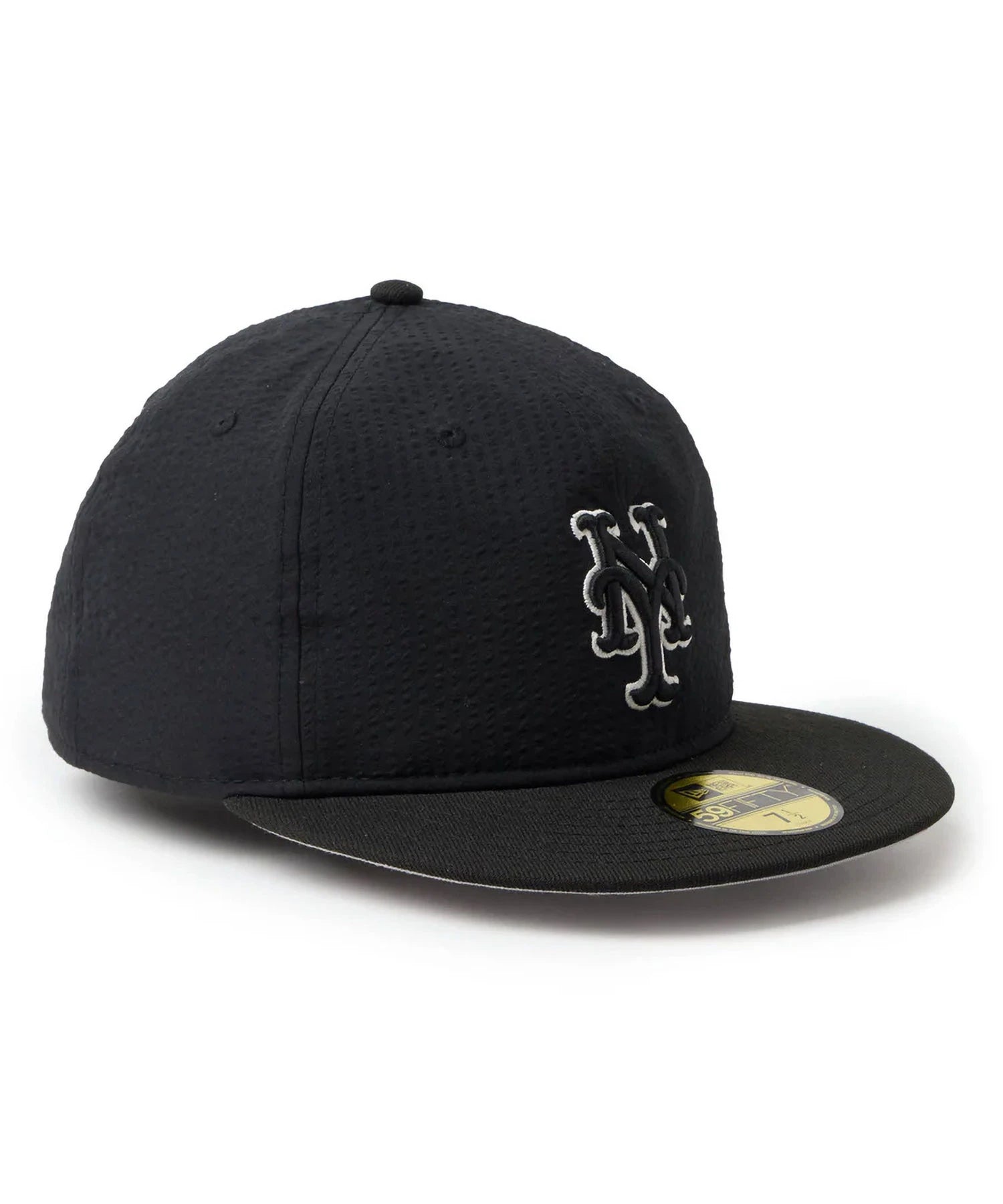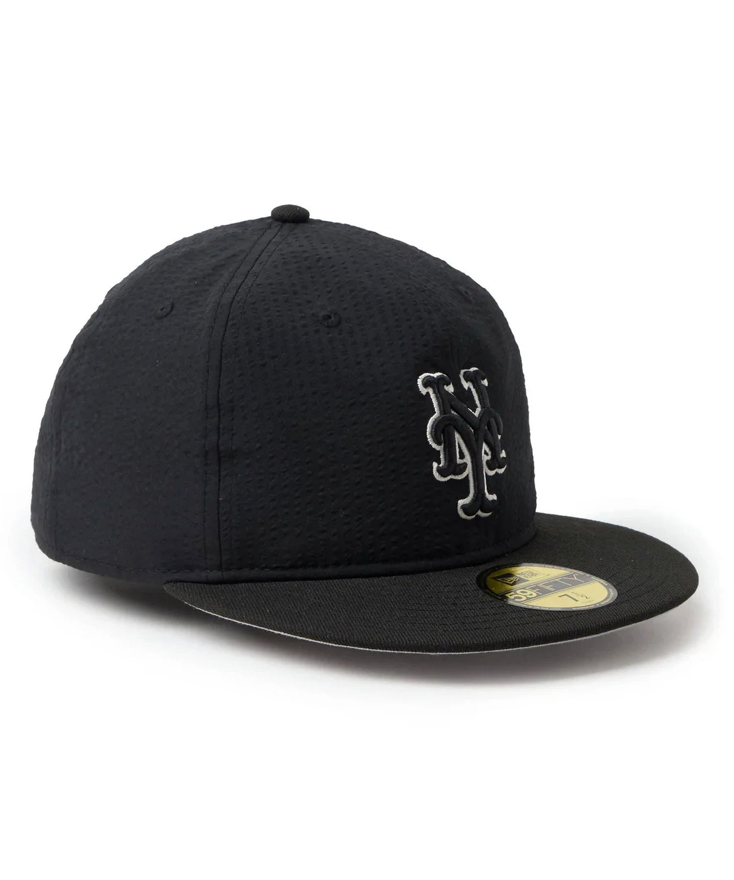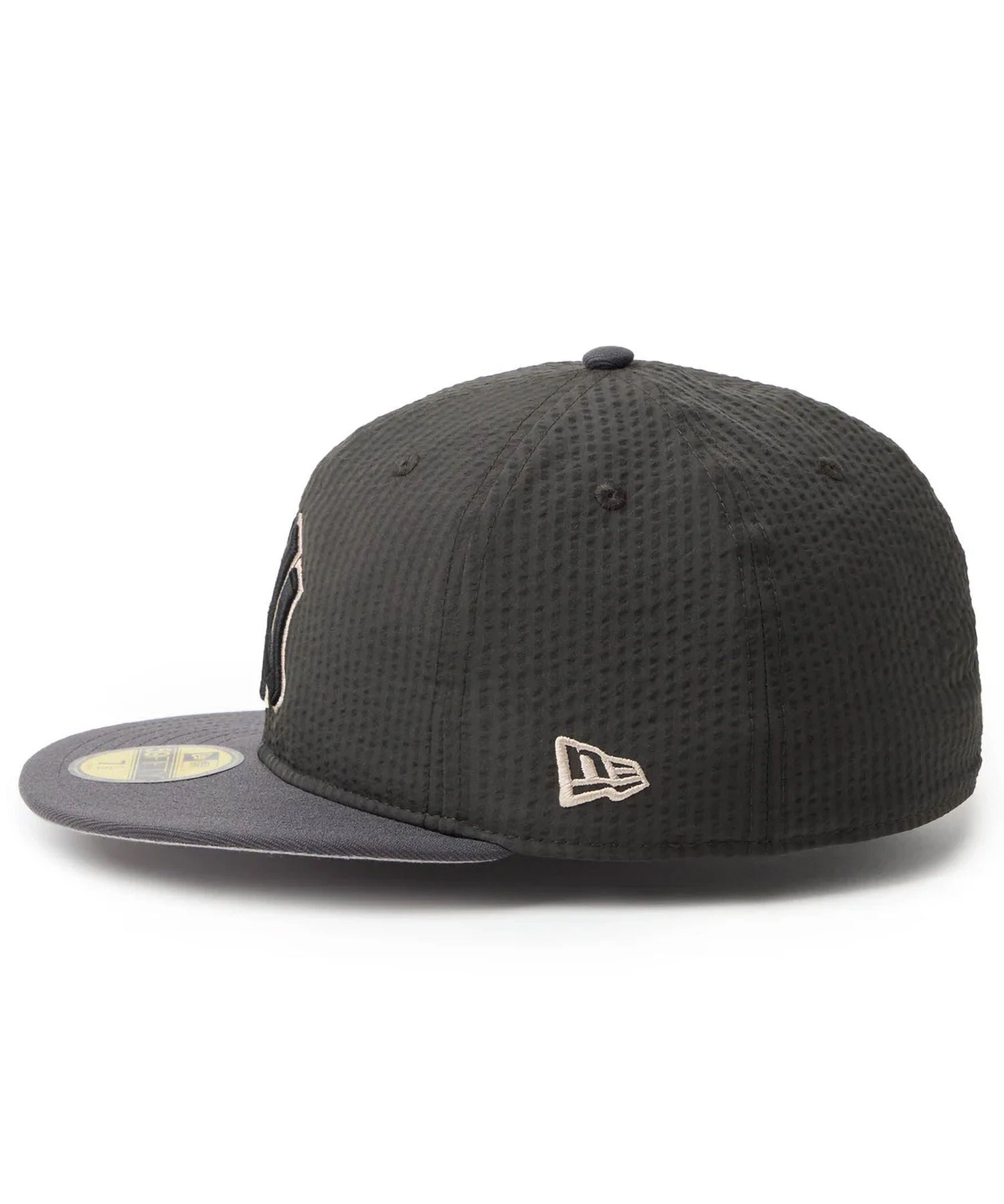 シルエットはフロントパネル内側の芯を取り除いたソフトバックラム仕様の59FIFTY。柔らかい被り心地です。サイズ調整のない仕様で、約1cm刻みのサイズ展開。頭の小さい方から大きな方まで、ジャストサイズで被ることができます。また、アジャスターがないので、リアのシルエットが美しく、頭の形が綺麗に見えます。
