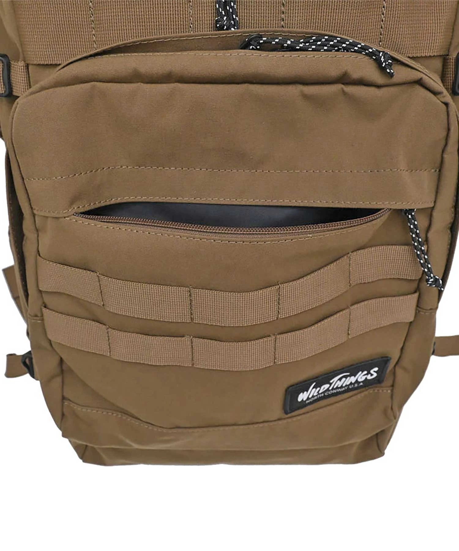 WILD THINGS(ワイルドシングス) のバックパック。シンプルで使いやすいデザインながら、耐久性のある素材と収納力を備え、タウンユースからアウトドアシーンまで幅広く対応します。